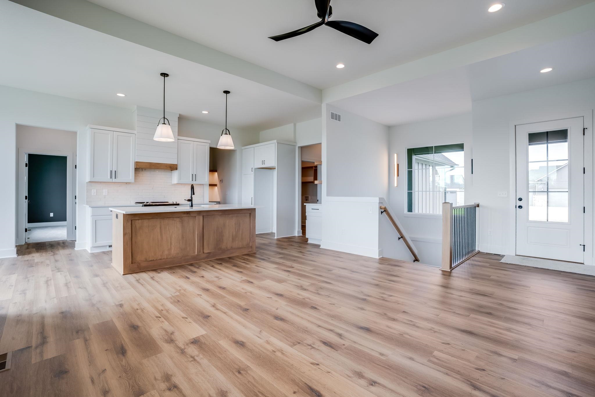 - Description: New Oakley plan by M & M Construction. Split Three bedroom, two full baths on the main level. Great room has beamed ceiling, accent wall featuring an electric fireplace and shelving on one side. Kitchen and dining are open to the great room which is great for entertaining. Features center island, quartz counter tops, abundant walk-in pantry and a lot of cabinets and storage. The lower-level basement is finished with family room, two additional bedrooms, beautiful wet bar and full bath. This home also has a three-car garage, sprinkler system, lawn and landscaping. Information is deemed reliable but not guaranteed and may change without prior notice. Taxes have not been completely spread and are estimated.