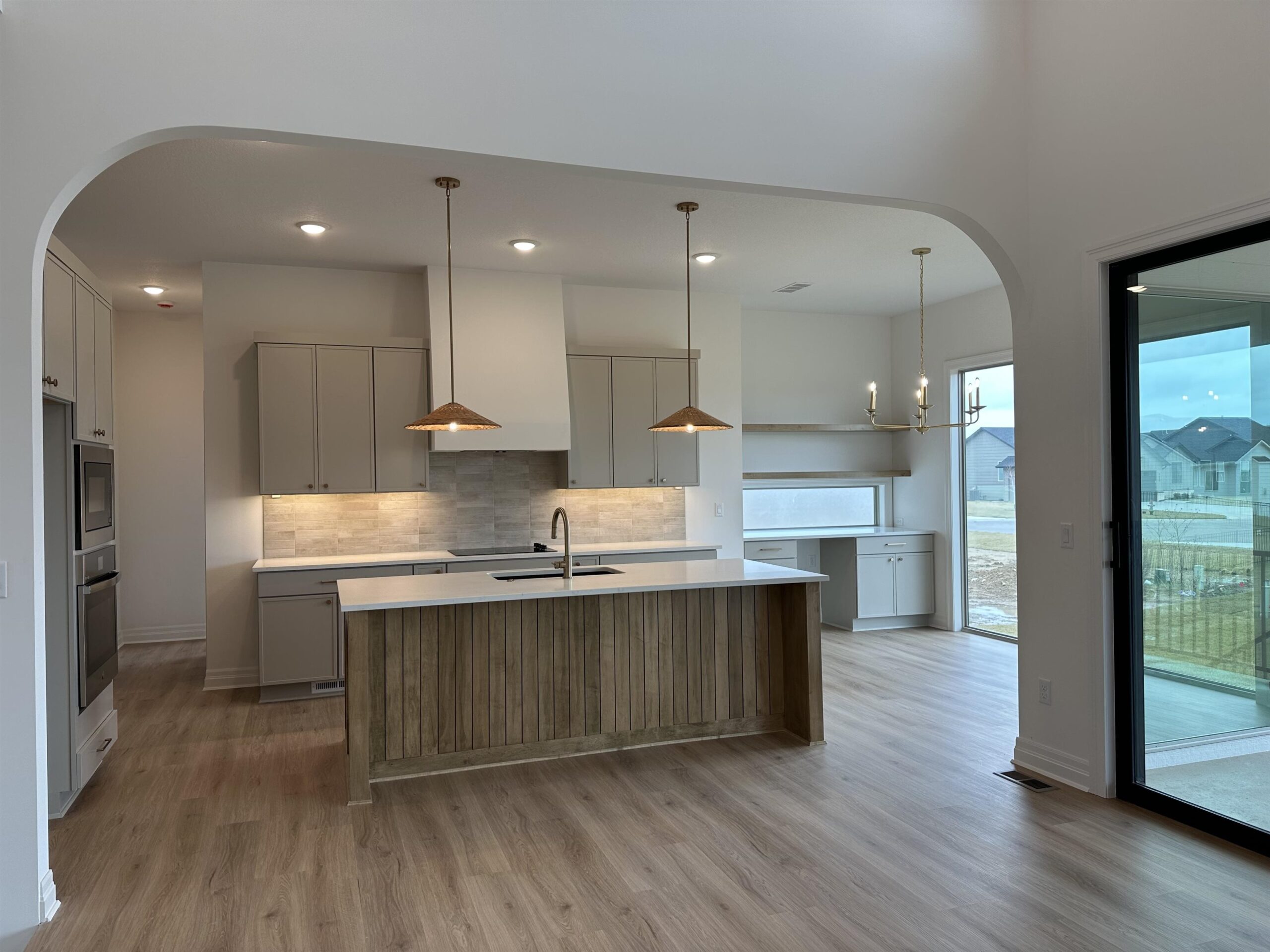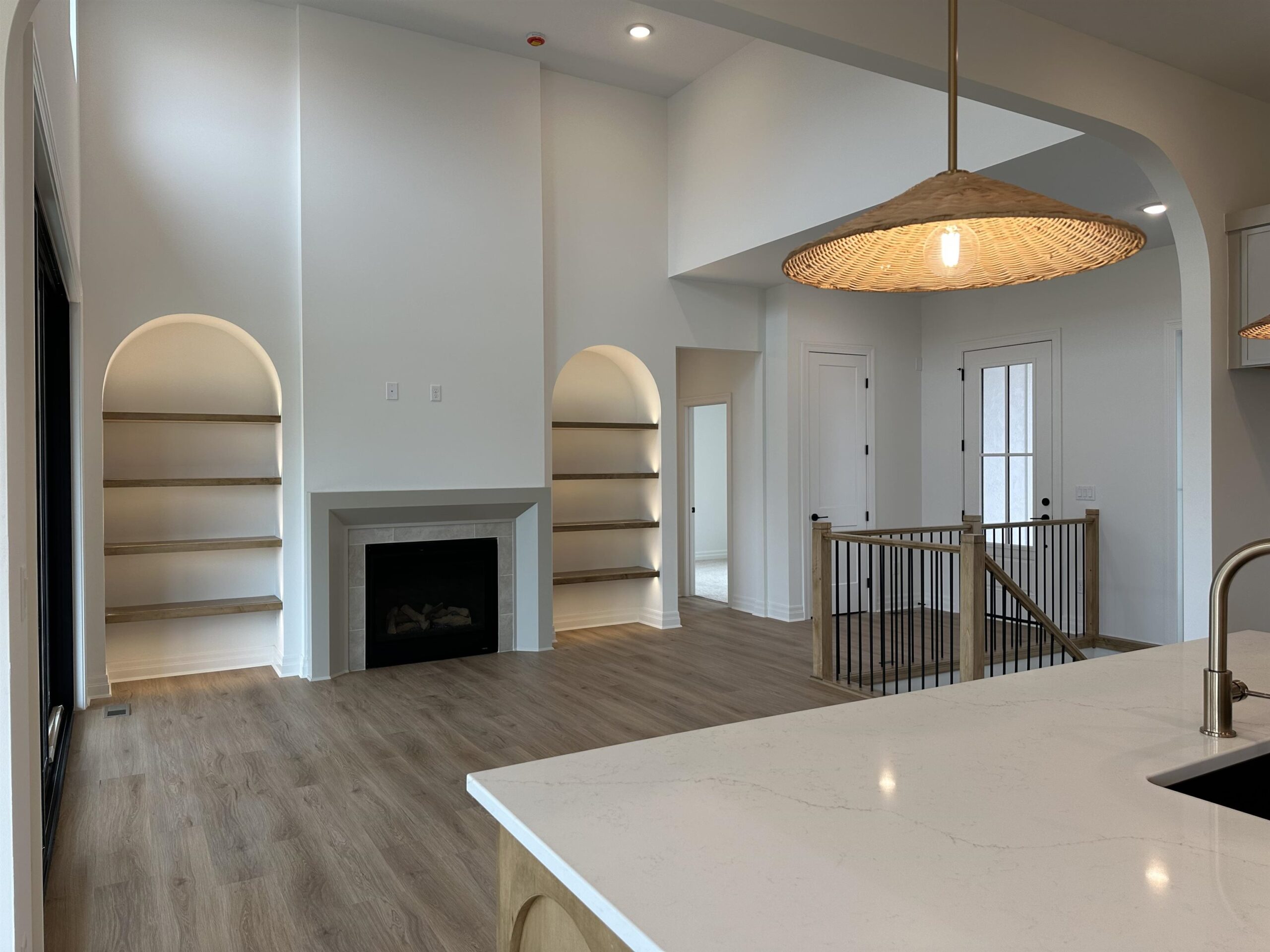- Description: The feat of combining luxury & design is here in the favorite “Amora” plan with 3 bedrooms and 2 baths on the main level, and an additional 2 bedrooms, 1 bath, and family room with wet bar finished in the basement, all by Paul Gray Homes. This home is located in a culdesac in Henwick! 15’ great room ceiling with clerestory windows above the huge covered concrete deck surrounded by custom iron railings. Great room features a custom wall with electric fireplace showcased by lit floating shelves. Built in coffee/wine bar in the dining has a fogged window backsplash for natural light. Panty runs across the entire length of the kitchen, and is a dream! You’ll love the larger windows to the floor, and great room wall opens to the outside. Private master suite featuring custom shower and slipper tub. Laundry is just across the hall from the large master closet, and has a long built in folding shelf. Information deemed reliable but not guaranteed and may change without notice. Taxes estimated and are shown on vacant lot. Specials may not be entirely spread yet on this lot and are shown as estimate. There is a $250 mailbox fee collected at closing