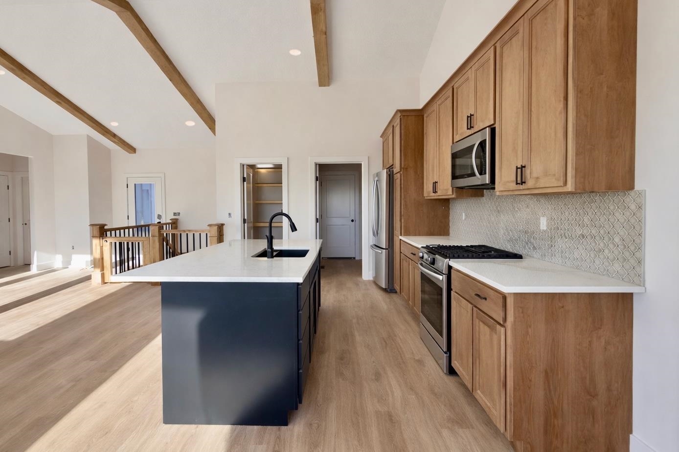 - Description: Introducing the Archie Plan by C&A Homes — a new and expanded version of one of their most popular floor plans! Situated on a spacious lot with a large backyard, this stunning home offers timeless curb appeal with a striking front elevation featuring stone accents and sleek black Anderson windows throughout. Inside, you’ll find a bright and inviting living room with vaulted, beamed ceilings, a beautiful stone fireplace, and built-in shelving. The well-appointed kitchen is designed for both style and function, offering quartz countertops, abundant cabinet space, and a walk-in pantry. The spacious dining area is filled with natural light from large picture windows and opens to a covered composite deck, perfect for relaxing or entertaining. The luxurious Primary Suite features a spacious bedroom with trayed beamed ceilings, a private bath with tile shower, large dual vanity, and a walk-in closet. Two additional bedrooms and a full hall bath complete the main floor. The fully finished basement continues to impress with a large family room featuring oversized picture windows and a wet bar, along with two additional spacious bedrooms, a full bathroom, and ample storage space. This thoughtfully designed home combines comfort, style, and functionality in every detail. Finished interior pictures are from a home that was previously built in the neighborhood and exact finishes will vary. Some information may be estimated and is not guaranteed. Please verify schools with USD 262.