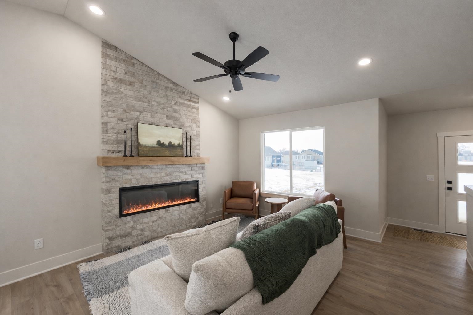 - Features: Ceiling Fan(s)ElectricLiving RoomOneSmoke DetectorsVaulted Ceiling(s)