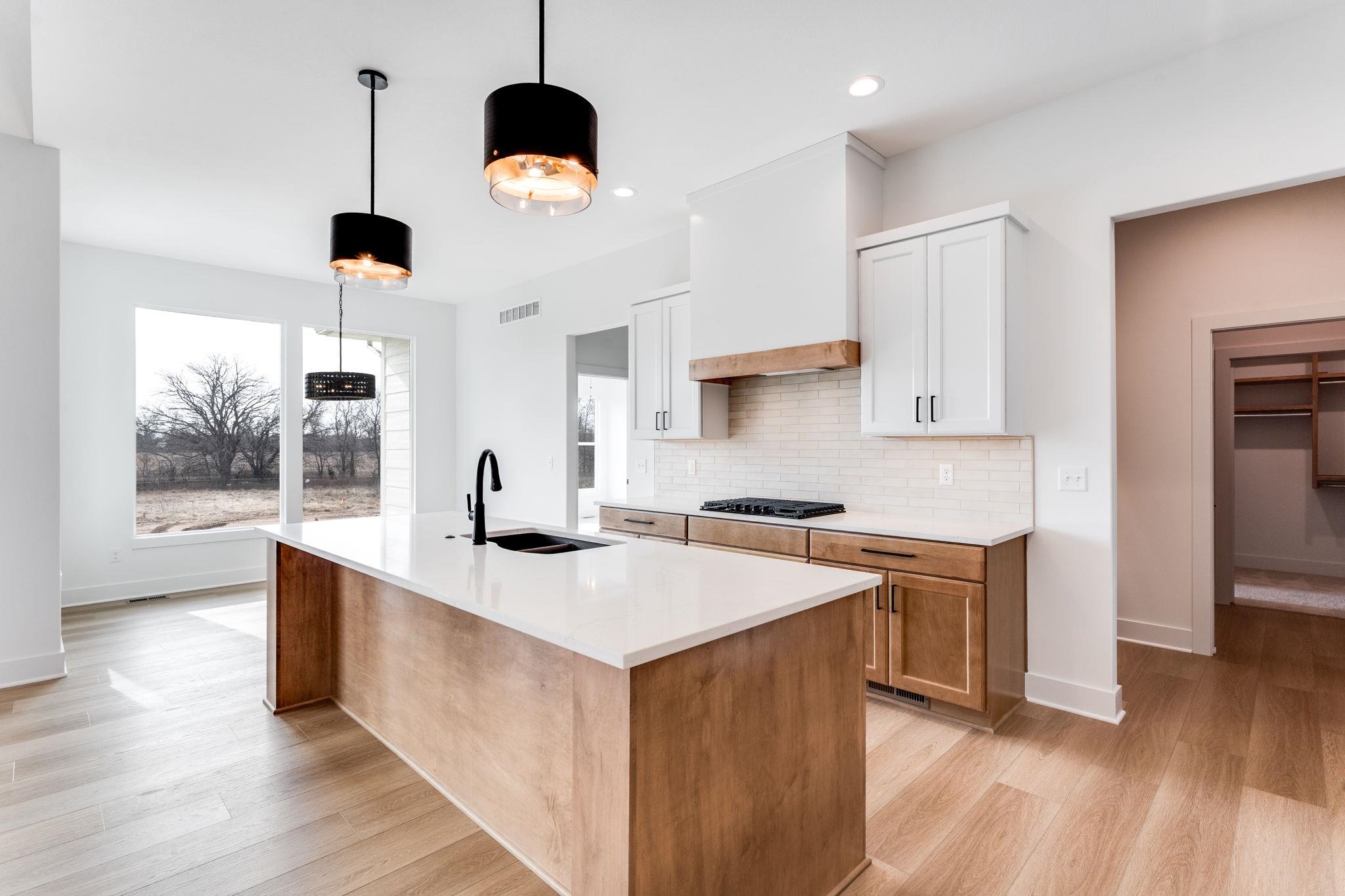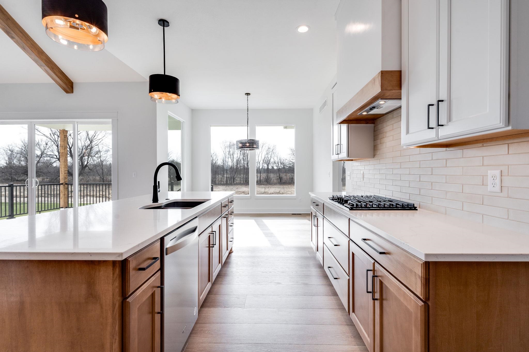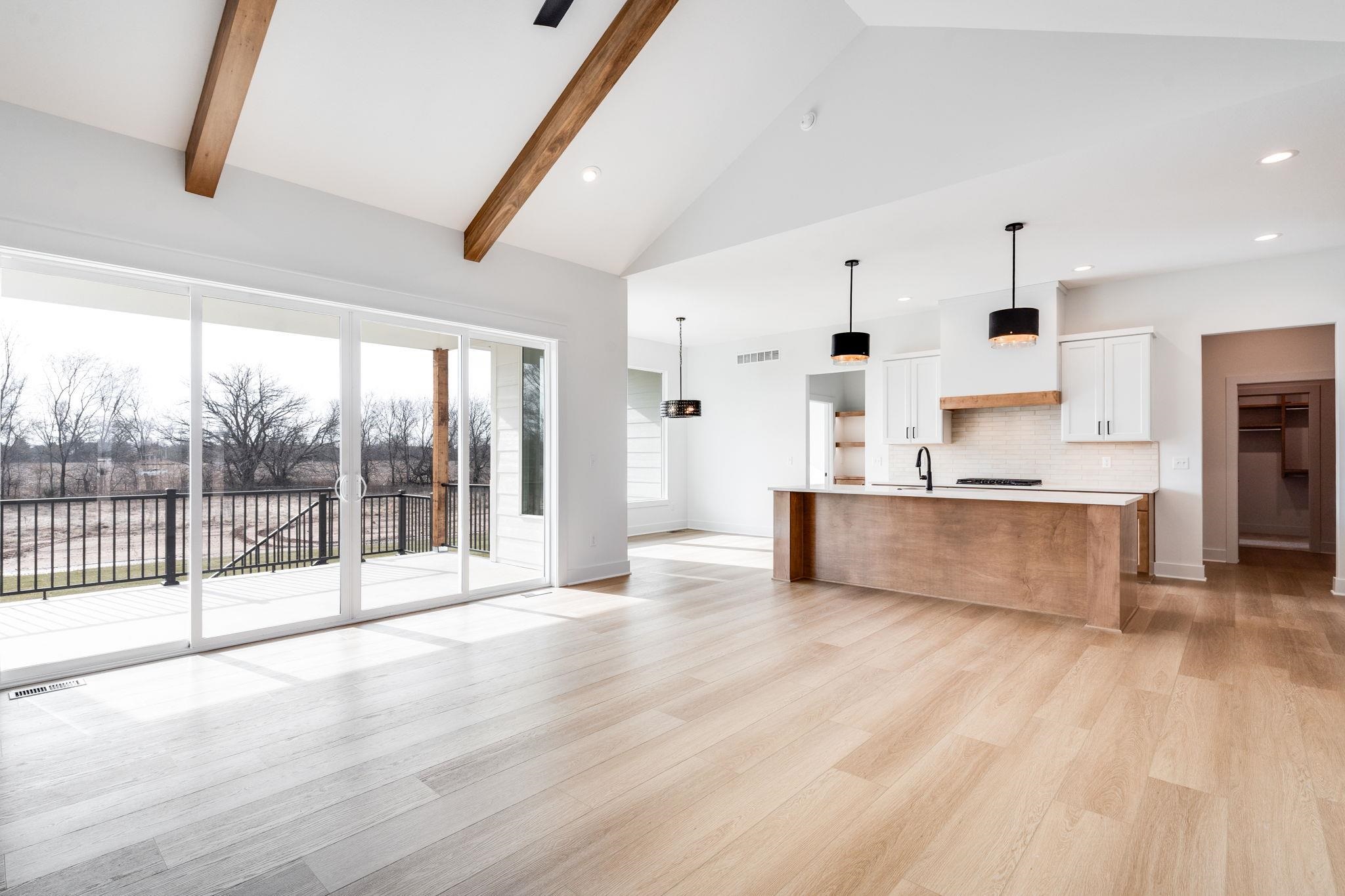 - Description: The “Kenzie” plan is back! Located on a lot that is actually larger than shown and backs to huge trees, its a very private lot. This home will be completely finished and move in ready. You’ll love the noteworthy tower front porch entry and large windows. Open floor plan offers beamed ceilings, large kitchen with floating shelves, side wine/coffee bar, and large pantry. Focal point slider opens out to raised covered concrete patio. Lots of storage in this home. Master retreat is a spa with wet room featuring large walk in shower and soaker tub, and spacious closet connects to laundry. This split bedroom plan houses 2 additional bedrooms on the other side of the home. Downstairs in finished basement you have an extremely large family/rec room with a wet bar that has a front seating island, and lots of room to spread out in comfort in the family/rec room! Bedrooms 4 and 5 are on one side with an additional bath that has sink separate from tub/shower, perfect for everyone getting ready at the same time. So much space and open living spaces, come tour today! This home is currently under construction! Includes well, sprinkler, sod, & landscaping. Information deemed reliable but not guaranteed and may change without notice. Room sizes may be estimated. Taxes are shown on vacant lot.Specials may not be entirely spread yet and are shown as estimates. There is a $250 mailbox key collected at closing. Home is currently under construction.