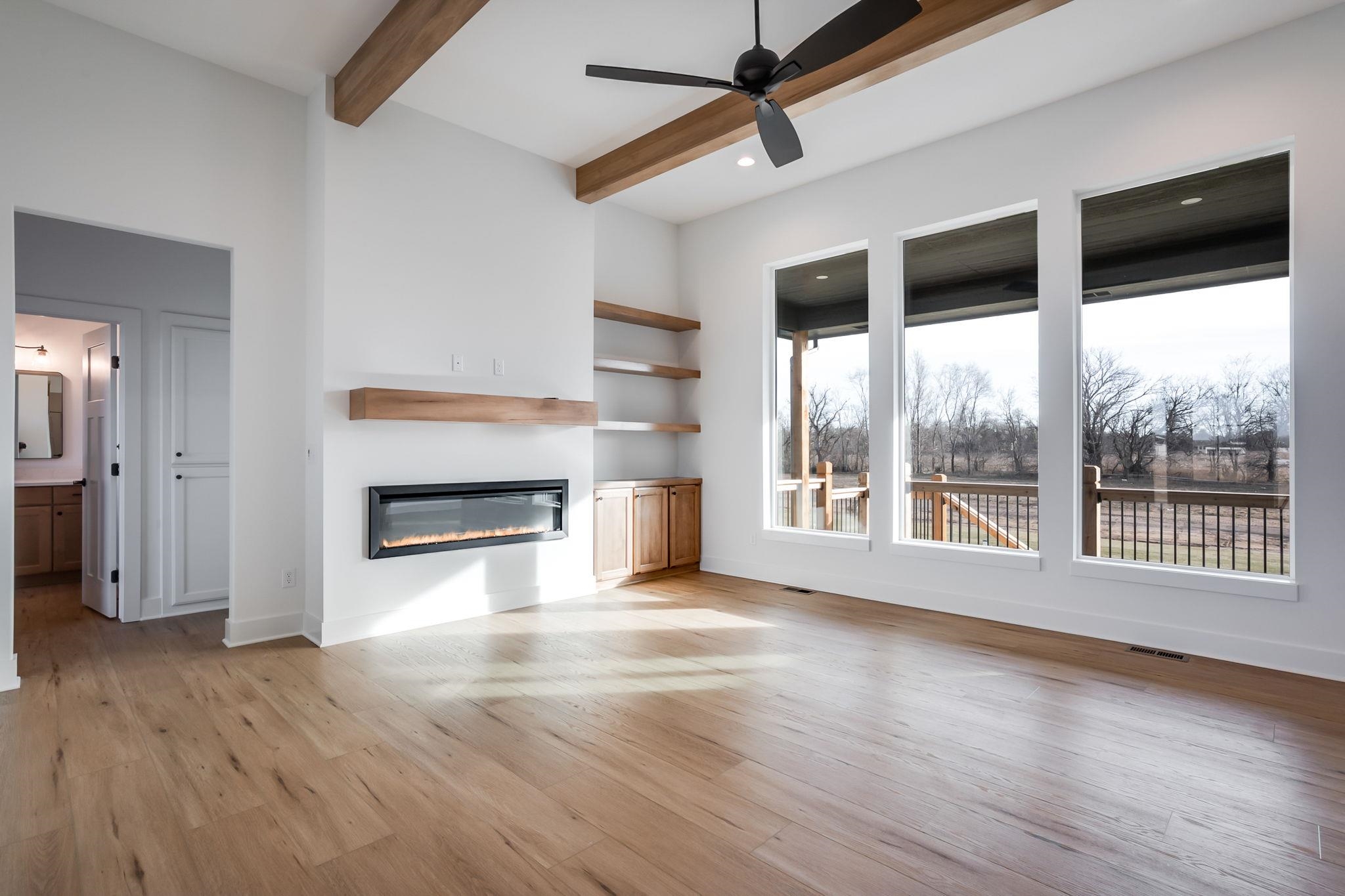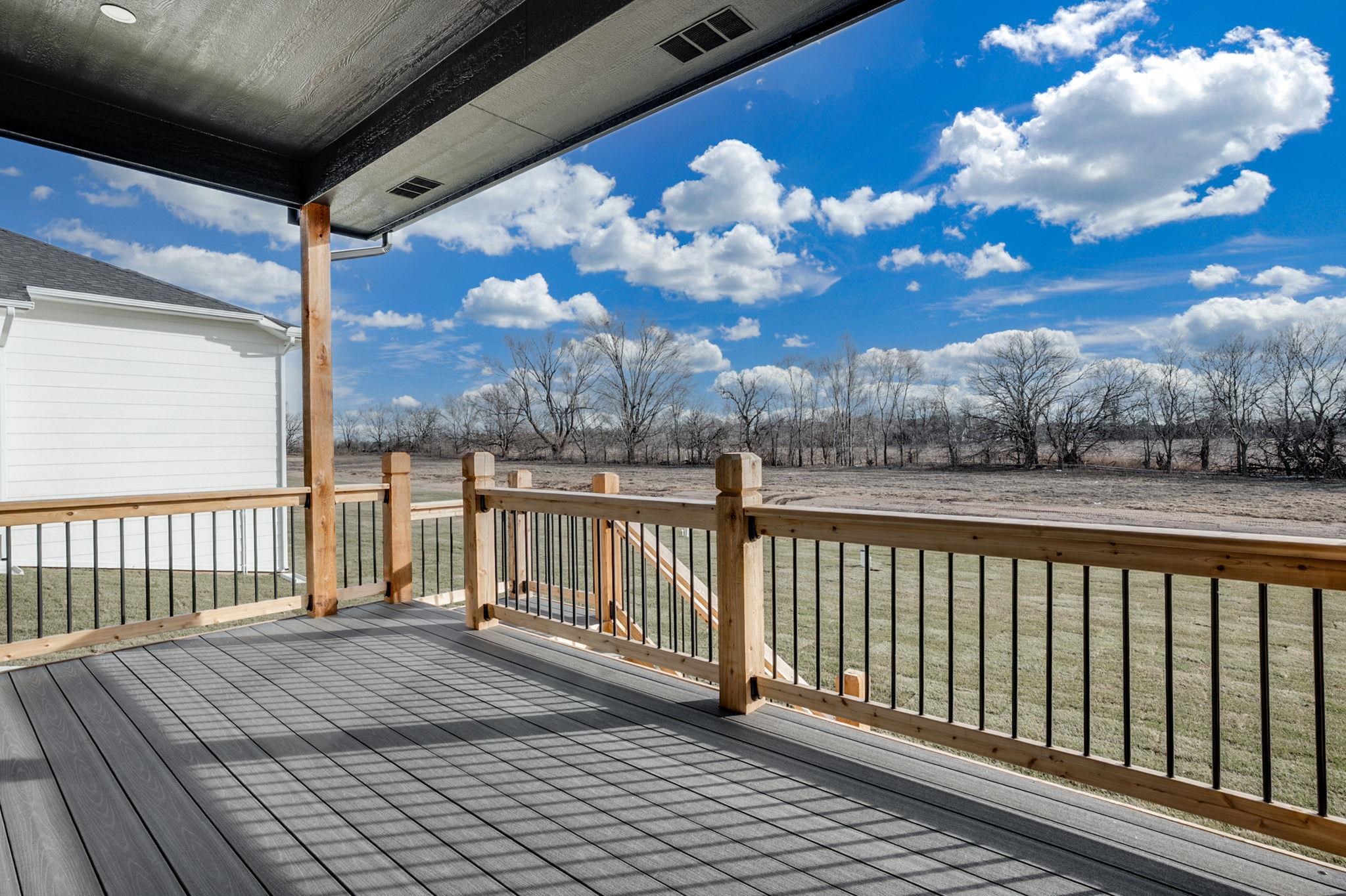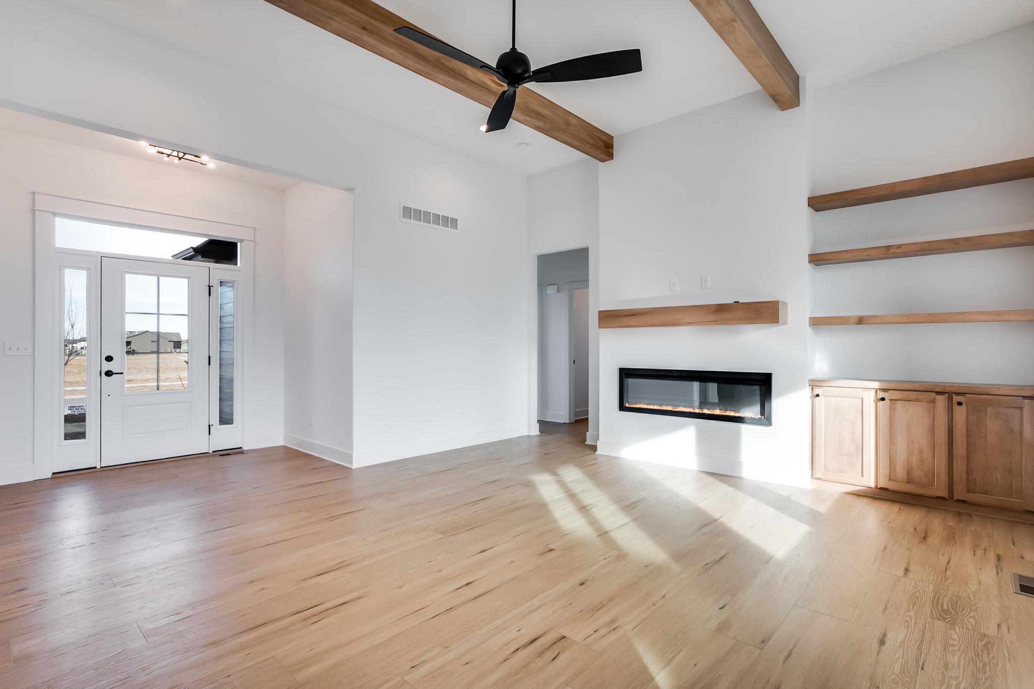 - Description: Style, function, and thoughtful design come together in the beautiful Brooks plan by M&M Construction. The living room impresses with its over 11-foot ceiling accented by maple wood beams and an electric fireplace as the focal point. The kitchen offers quartz countertops, a bright walk-in pantry with a window, built-in microwave, and plenty of shelving. A convenient drop zone with bench and shelves is tucked behind the kitchen, right by the stairs to the finished basement. The master suite connects to a separate laundry room with a folding table and built-in dresser in the closet. Enjoy a spa-like master bath featuring a separate tub and shower and tile flooring. LVP runs throughout the main living areas for a clean, easy to care for cohesive look. Downstairs, the finished basement includes a walk-up wet bar—perfect for entertaining. Outside, relax on the huge 18’x10’ covered composite deck overlooking a large lot that backs to mature trees. 8-foot garage doors complete this smart, stylish home designed for modern living. Information deemed reliable but not guaranteed and may change without notice. Room sizes may be estimated. Taxes are shown on vacant lot.Specials may not be entirely spread yet and are shown as estimates. There is a $250 mailbox key collected at closing.