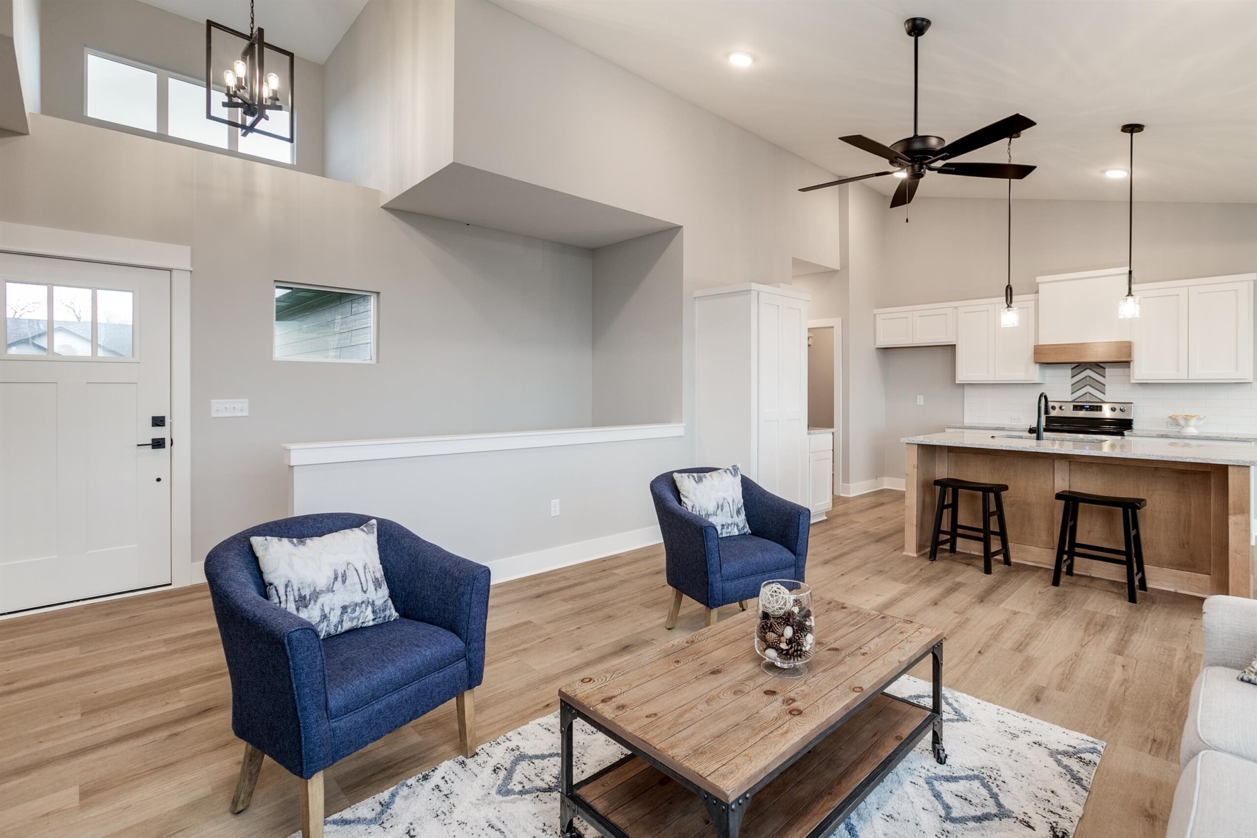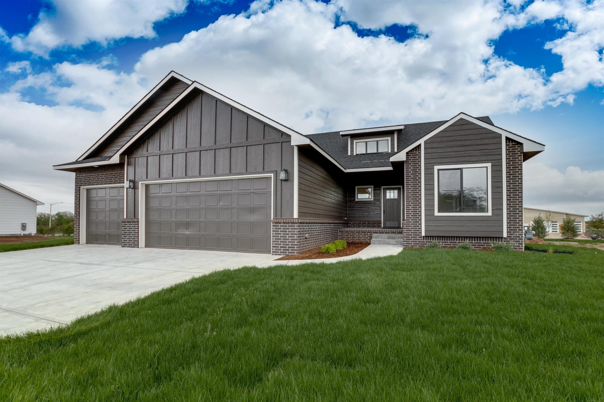 - Description: This beautiful Elliana floor plan by JK Blue Living is sure to impress. Enjoy this open concept 3 bed 2 bath home with just under 1,500 sq. ft. on the main. Large windows throughout offer lots of natural light in and the lighter finishes make the home feel open and spacious. The primary bedroom features an en suite bathroom with beautiful tile work in the shower and above the dual sink vanity, spacious walk in closet that is connected to main floor laundry room. Basement is framed for a future 2 bed,1bath and family room. Basement can be finished in about 30-45 days for around $20,000. Home backs to a tree row that will grow to add additional privacy. Irrigation well, sod and sprinkler system included. In highly sought after Goddard School District. Taxes and Specials estimated. All information deemed reliable but not guaranteed and is subject to change without notice.
