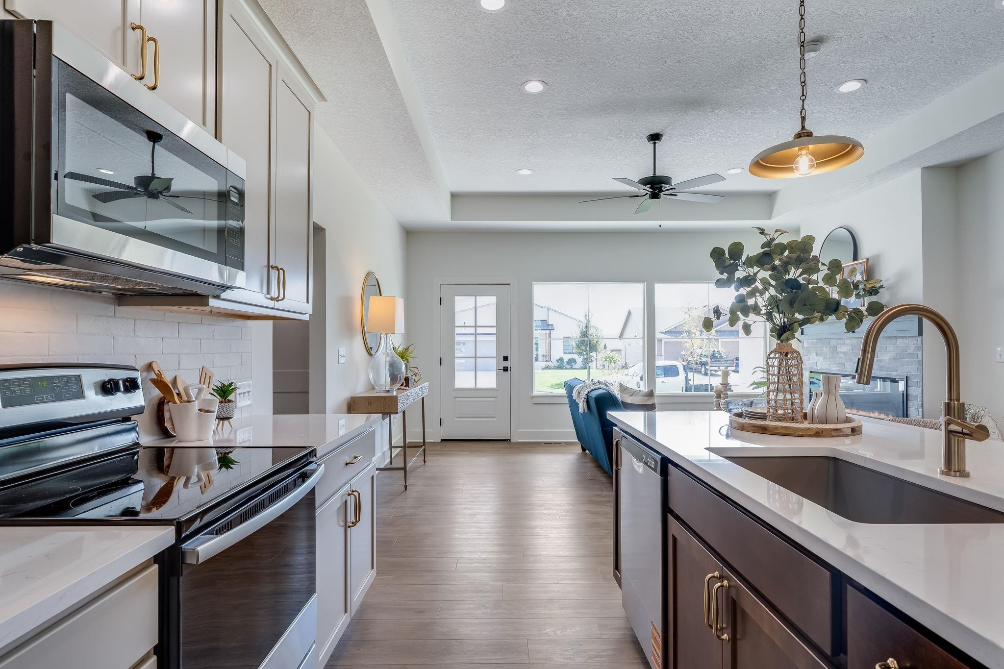 - Description: Parade of Homes Special! Until October 10, 2025, take $10,000 off the price of this home! Welcome to the beautiful new model by TW Custom Homes featuring 5 bedrooms and 3 bathrooms. The heart of this home includes a bright, open living area with tray ceiling, dining area and kitchen. The stunning primary suite is a true retreat featuring a beautiful tray ceiling. Laundry room is just next to primary bedroom with closable door to keep things tidy and tucked away. The fully finished basement provides additional space that includes the large family room, 2 bed/1bath and storage. Step outside this mid-level walk out on to a massive concrete patio that is covered which makes it perfect for gatherings, grilling or simply enjoying the outdoors in any weather. Irrigation well, sod and sprinkler system included. This home backs to a tree row for additional privacy and is down a cul-de-sac street for added safety. Taxes and specials estimate. All information is deemed reliable but not guaranteed and subject to change without notice.