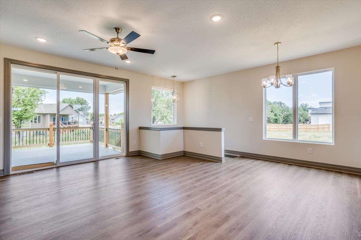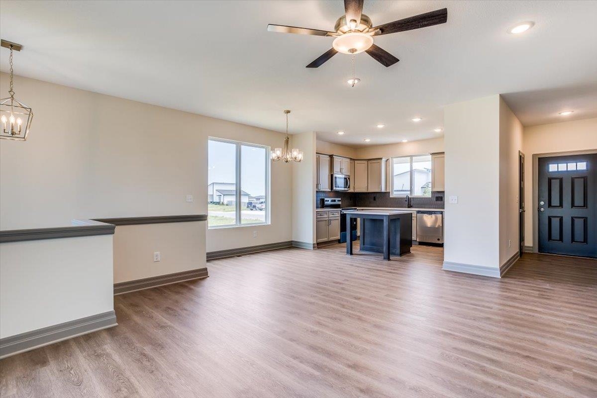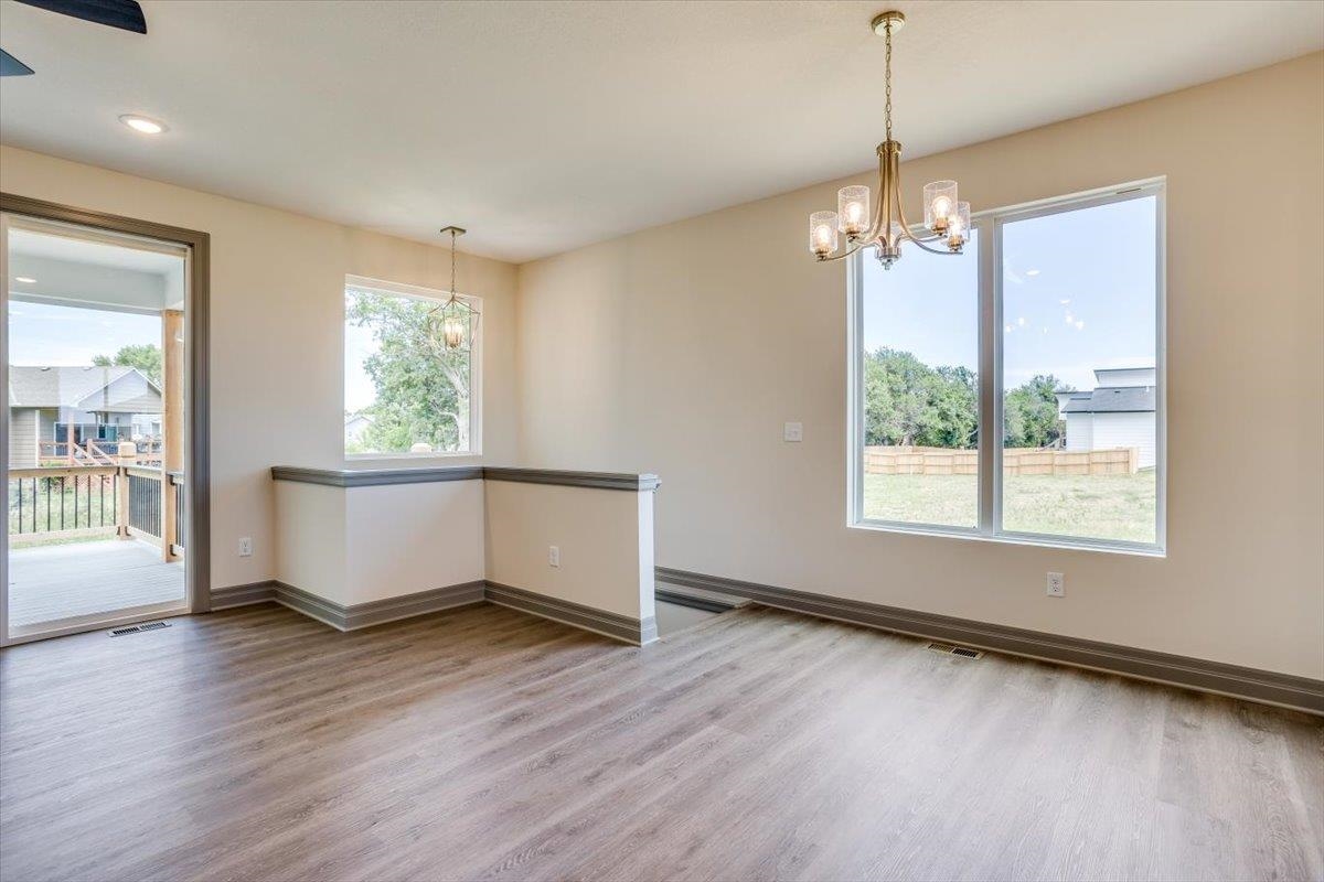 - Description: Step into comfort and style with this inviting 3 bedroom, 2 bath home by RJ Castle Custom Homes. Complete with a luxurious primary bedroom featuring a walk in closet and en suite bathroom. The kitchen is equipped with plenty of cabinet space, perfect for storage and meal preparation. An often overlooked but loved feature is the window over the kitchen sink, this gives you the ability to look outside while doing dishes or cooking. Enjoy outdoor living on the spacious covered deck, which is ideal for relaxation or entertaining guests. This home backs to a tree row! Potential for future expansion exists with an unfinished basement. The basement is also available for customization with contract for an additional cost and can be finished prior to close! Nestled in the newly expanding subdivision of Southern Ridge and highly sought after Goddard School District. Amenities in the neighborhood include a large pool, sports court, walking paths and fishing ponds. Close to a major highway which makes for easy and quick access to shopping and dining options. This information is deemed reliable but not guaranteed and subject to change without notice. Specials and taxes are estimated.