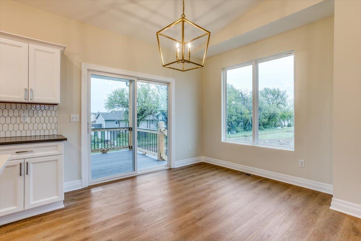 - Description: Discover this charming 3 bed, 2 bath home by RJ Castle Custom Homes with just under 1300 sq. ft. on the main. Nestled in the desirable and expanding subdivision of Southern Ridge. Boasting a covered deck ideal for outdoor gatherings, the interior features vaulted ceilings that enhance the spacious feel of the living area. The master bedroom offers privacy with an en suite bathroom and a convenient walk in closet. Potential for future expansion exists with the unfinished basement. The basement is also available for customization with contract for an additional cost and can be finished prior to close! In the highly desirable Goddard School District, this home combines comfort, functionality, and luxury! Near major highway with easy access to shopping and dining. Southern Ridge amenities include a pool, sports court, walking paths, and fishing ponds. Taxes and specials are estimated. This information is deemed reliable but not guaranteed and subject to change without notice.