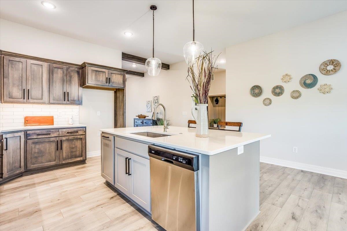 - Description: This beautiful Cobblestone on one of a kind lake lot is now for sale! Sitting on a large lot with view down the lake in your dining, living room and large screened porch. Designed with beautiful warm finishes and large living spaces that are perfect for everyday living. Kitchen with large island, custom cabinets, quart countertops and a walk-in pantry. Lots of natural light in the living room with fireplace, beamed ceiling and coffee/wine bar with extra storage. Spacious master suite with accent wall, custom tile shower and large walk-in closet. Enjoy outdoor living on large screened porch. The laundry room doubles as a safe room. Oversized 3 car garage with ample storage! Estimated taxes and specials. All information deemed reliable but not guaranteed. Available for purchase with a closing as early as June 15, 2025.