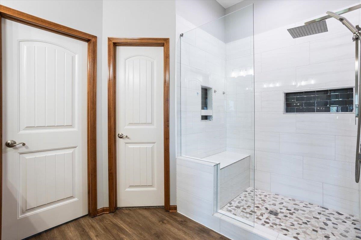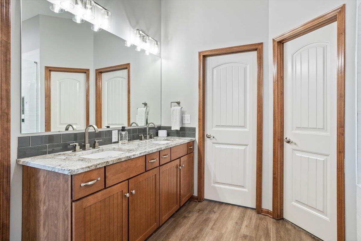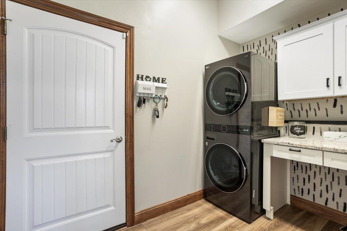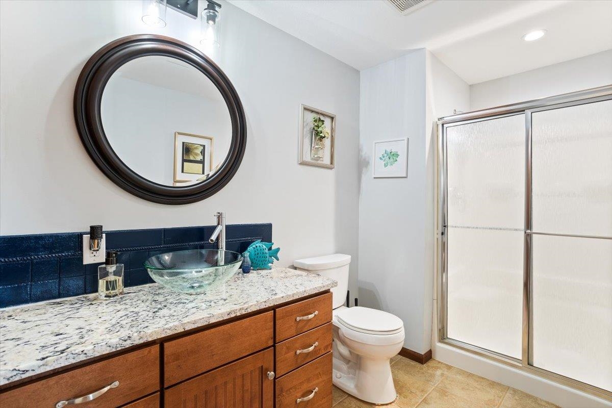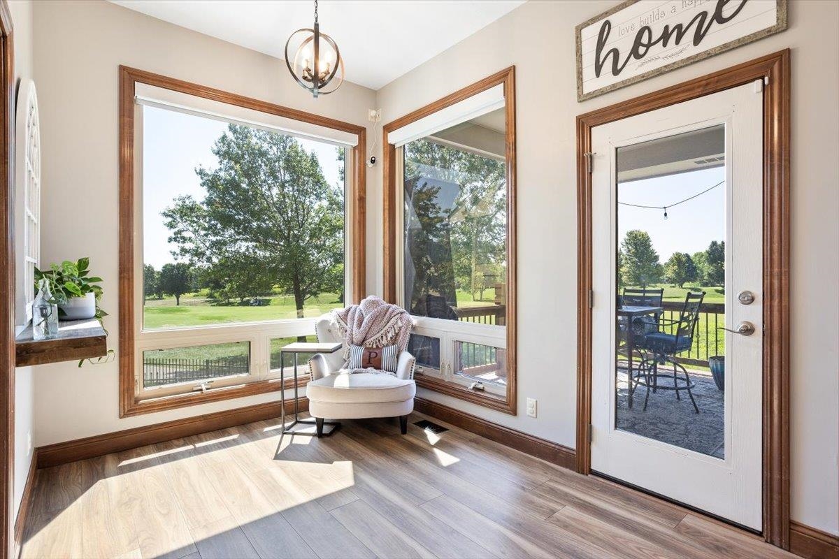 - Description: Nestled among mature trees on the Auburn Hills serene golf course, this stunning 5-bedroom, 3-bath, 3-car garage home boasts an extra side yard lot all enclosed by an iron fence. Inside, the house has been meticulously updated with luxury vinyl flooring throughout the entry, living room, kitchen, dining room, laundry room, and office nook. Large tinted windows span the back of the house, offering breathtaking views, while auto Rolli brand blackout blinds in the kitchen and living room provide privacy and comfort. The spacious kitchen features a new granite topped large island with ample storage on both front and back, a refrigerator, and a dishwasher, both less than a year old, along with a range and microwave. The living room is anchored by a cozy fireplace surrounded by built-ins, with a TV above that stays! The recently renovated laundry room includes extra storage and a granite folding area, with a stacked washer and dryer that are also less than a year old and stay with the home. The front-to-back split bedroom plan includes a large primary suite at the back of the house with his and hers closets and a newly redone full tile walk-in shower, granite vanity, and an additional make up vanity with linen storage. Bedrooms 2 and 3 offer just done custom closet organization with built-in drawers and shelving. A large deck runs across the back of the house, perfect for outdoor entertaining and enjoying the views. Concrete has recently been added around the entire home for enhanced convenience, seamlessly flowing into the expansive concrete patio at the back. The basement features a spacious family room with a wet bar and full-size fridge that stays, a play area under the stairs, two additional bedrooms, and a bathroom with a newly installed vessel bowl sink with granite. There is also a large store room in the basement. You’ll appreciate the convenience of easy access to the backyard through the walk out in the basement area. The home also includes a comprehensive security system with audio surveillance cameras inside and out, a nest thermostat, and a high-impact roof. Located in the desirable Auburn Hills subdivision in the Goddard school system, this home combines luxury, comfort, and security in a beautiful setting. Information deemed reliable but not guaranteed and may change without notice.