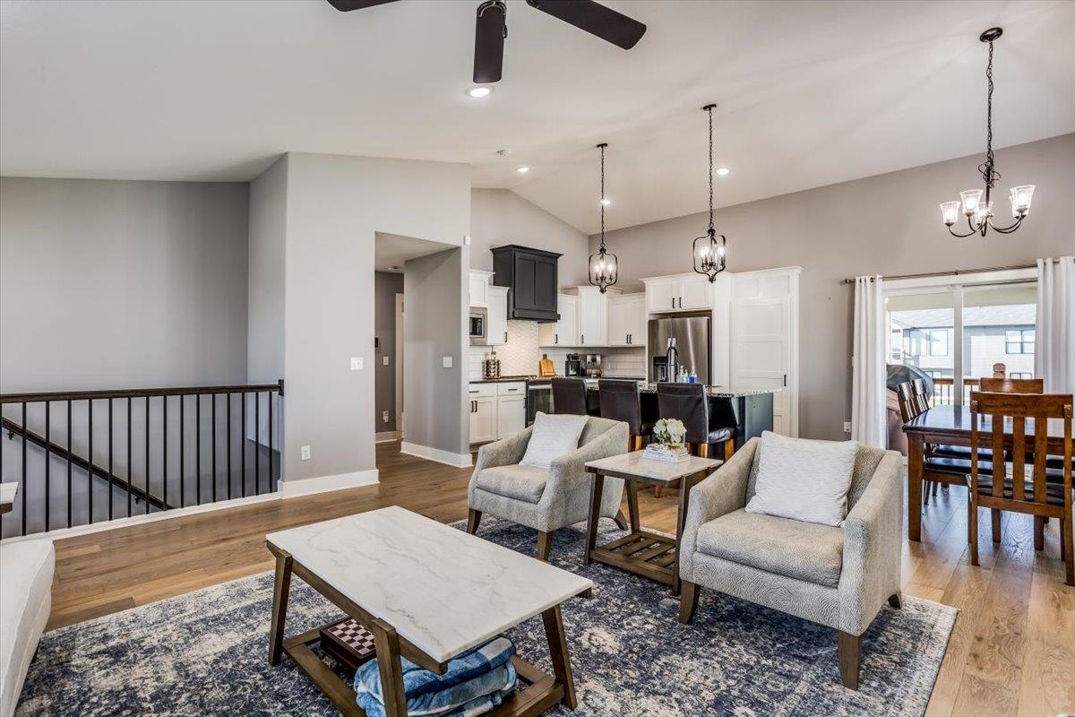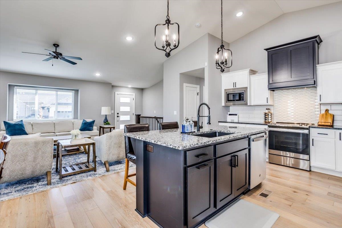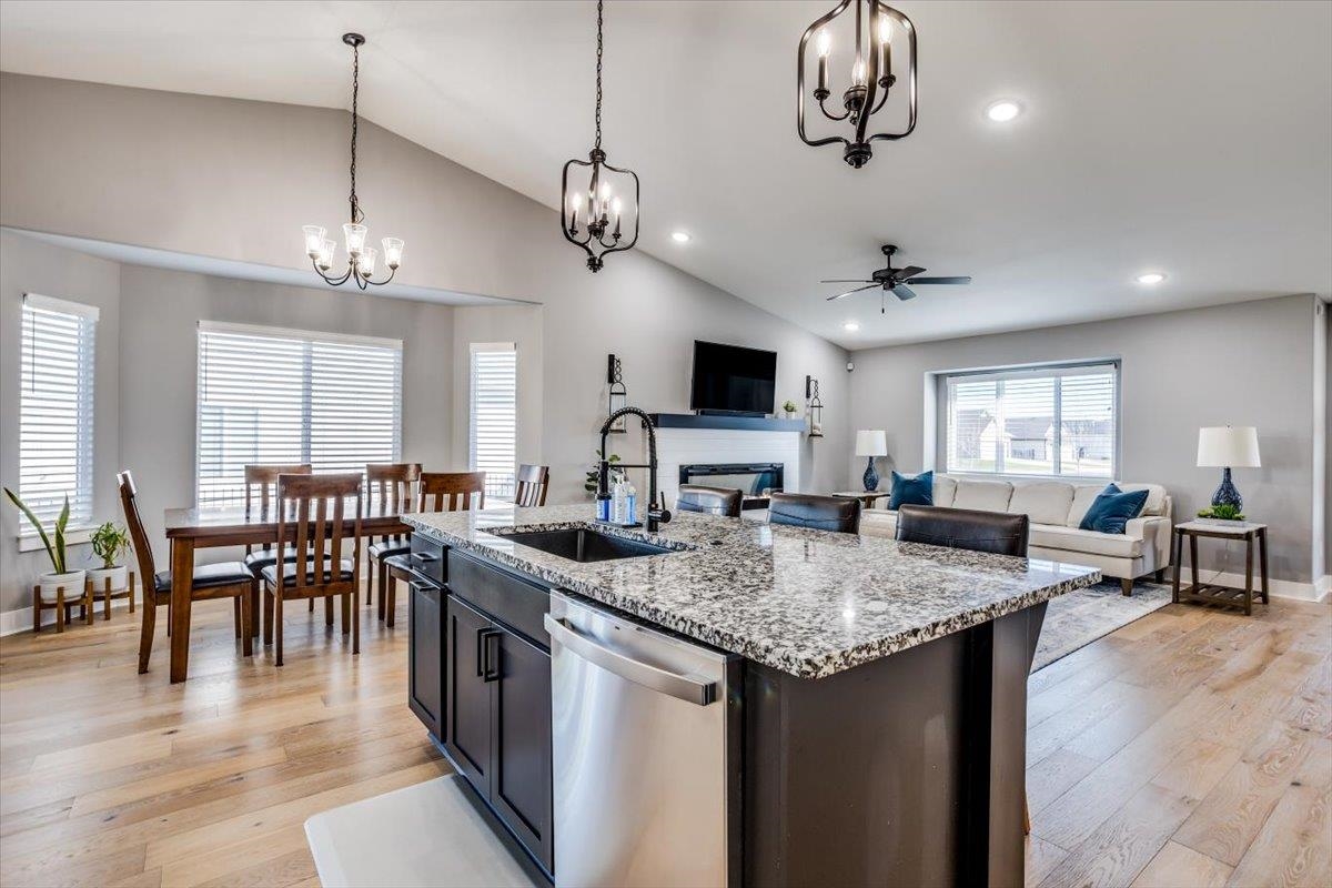 - Description: Welcome home to this beautiful ranch located in the highly sought after Talia community. Features include 4 bedrooms, 3 bathrooms over 2, 500 livable square feet, and an open floor plan with a spacious kitchen making it easy to entertain guests. The covered deck is the perfect retreat after a long day. The generous master suite includes a large walk-in full tile shower with dual shower heads, dual sinks, and a walk-in closet. The chef’s kitchen boasts quartz countertops, a large island, ample countertop and cabinet space, and a hidden walk-in pantry. The lower level basement area features two additional bedrooms, one full bathroom, a spacious living area, and a full wet bar. This home offers a walk-out pit basement. The homeowners are leaving the refrigerator and washer and dryer making this a move-in ready home. Additional features include an oversized three-car tandem garage that is sheet rocked and insulated, whole home humidifier, tinted windows, window treatments, and an epoxy floor in the storage area. Don't miss your chance to call this beauty home. Schedule your private tour today!