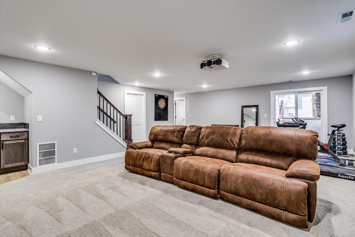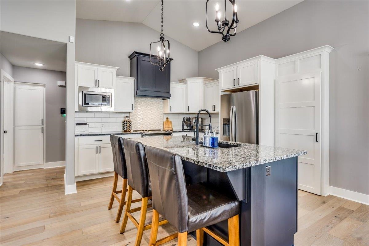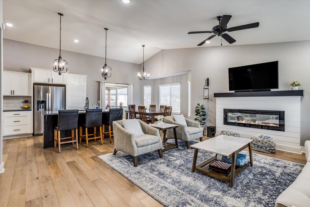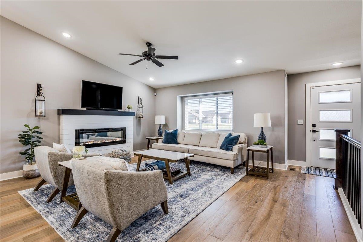 - Description: Welcome home to this beautiful ranch located in the highly sought after Talia community. Features include 4 bedrooms, 3 bathrooms over 2, 500 livable square feet, and an open floor plan with a spacious kitchen making it easy to entertain guests. The covered deck is the perfect retreat after a long day. The generous master suite includes a large walk-in full tile shower with dual shower heads, dual sinks, and a walk-in closet. The chef’s kitchen boasts quartz countertops, a large island, ample countertop and cabinet space, and a hidden walk-in pantry. The lower level basement area features two additional bedrooms, one full bathroom, a spacious living area, and a full wet bar. This home offers a walk-out pit basement. The homeowners are leaving the refrigerator and washer and dryer making this a move-in ready home. Additional features include an oversized three-car tandem garage that is sheet rocked and insulated, whole home humidifier, tinted windows, window treatments, and an epoxy floor in the storage area. Don't miss your chance to call this beauty home. Schedule your private tour today!