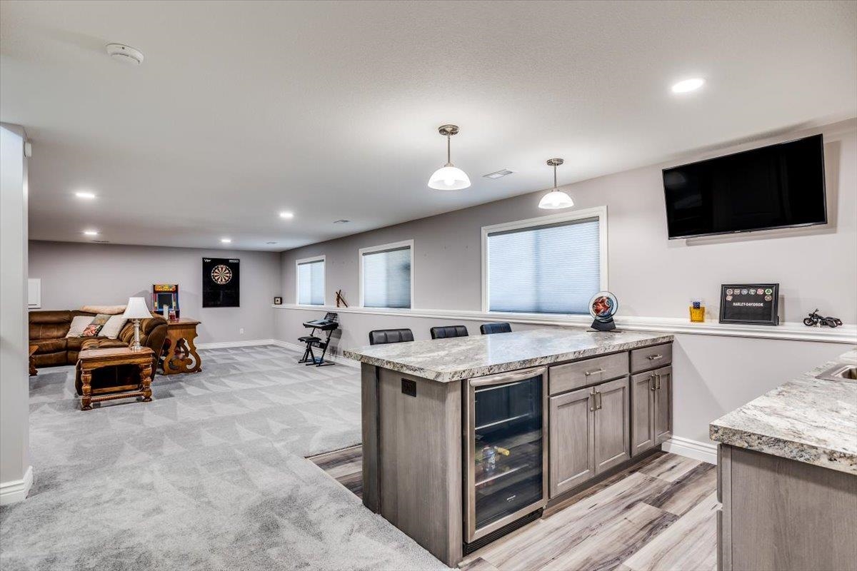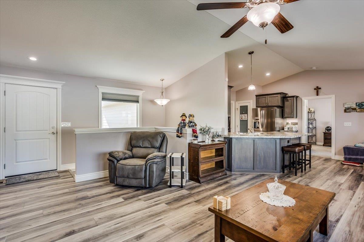 - Description: Welcome to this move-in-ready home that was built in 2020, boasting custom details, numerous upgrades, and a thoughtful layout. With 4 bedrooms—3 on the upper level and 1 in the basement—this home offers ample space for family and guests. The large master suite provides a private retreat, and the additional upstairs bedrooms, including one with a charming window seat, make for versatile living spaces. The kitchen is a chef’s dream, featuring a gas stove and vent goes to outside, a peninsula island with generous storage, a refrigerator that stays with the home, and a larger walk in pantry. The main level includes a separate laundry room, complete with washer and dryer that stay with the home, and a practical drop zone off the garage for easy organization. Downstairs, you’ll find a spacious family/rec room with an impressive wet bar, mini bar fridge that stays, and lots of room to spread out and entertain if you wish. You’ll love the large storage room too! Enjoy the peace of mind provided by the included security system and cameras that stay with the home. Outdoor living is enhanced with a screened-in deck and a fully fenced yard, perfect for relaxation. The oversized, fully insulated 3-car garage comes equipped with a mini split system for heating and cooling, plus included cabinets and a workbench, making it a versatile workspace. The home also features an upgraded, high-efficiency HVAC system (96% efficiency, 16 SEER, 2-stage variable) and is generator ready. There is a water softener that stays as well. Roof is class 4 for additional savings. A shed with shelves and a workbench in the backyard offers extra storage and functionality. Notice all the additional concrete around the house which you will appreciate! Located in the desirable Goddard School District, this home has been meticulously cared for and offers quality, comfort, and move in ready convenience at every turn! Buyer responsible to verify schools and any other information deemed important to buyer. Information deemed reliable but not guaranteed and may change without notice.