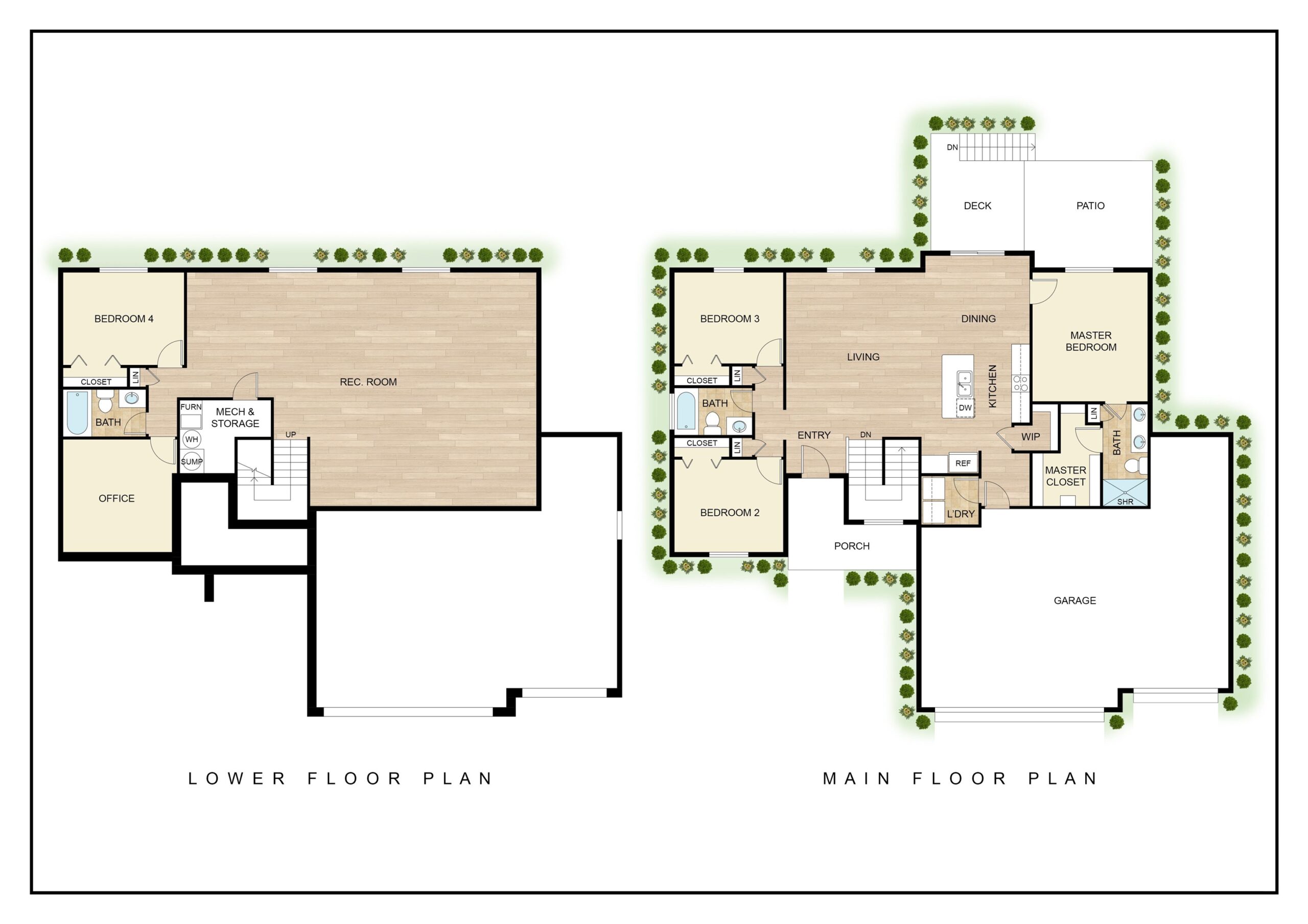 - Description: Klausmeyer Construction presents the Delainey U-Shaped floor plan featuring a total of 4 bedrooms, 3 baths and 3 car garge with area for workshop or larger trucks, trailers or boats, The main floor includes LVP flooring great room, dining, kitchen, entry, 3 bedrooms, 2 baths, main floor laundry. The lview out ower level includes rec room, bath and 4th bedroom. Kitchen counter tops are quartz. At this incredible price the sprinker system and landscaping is not included.