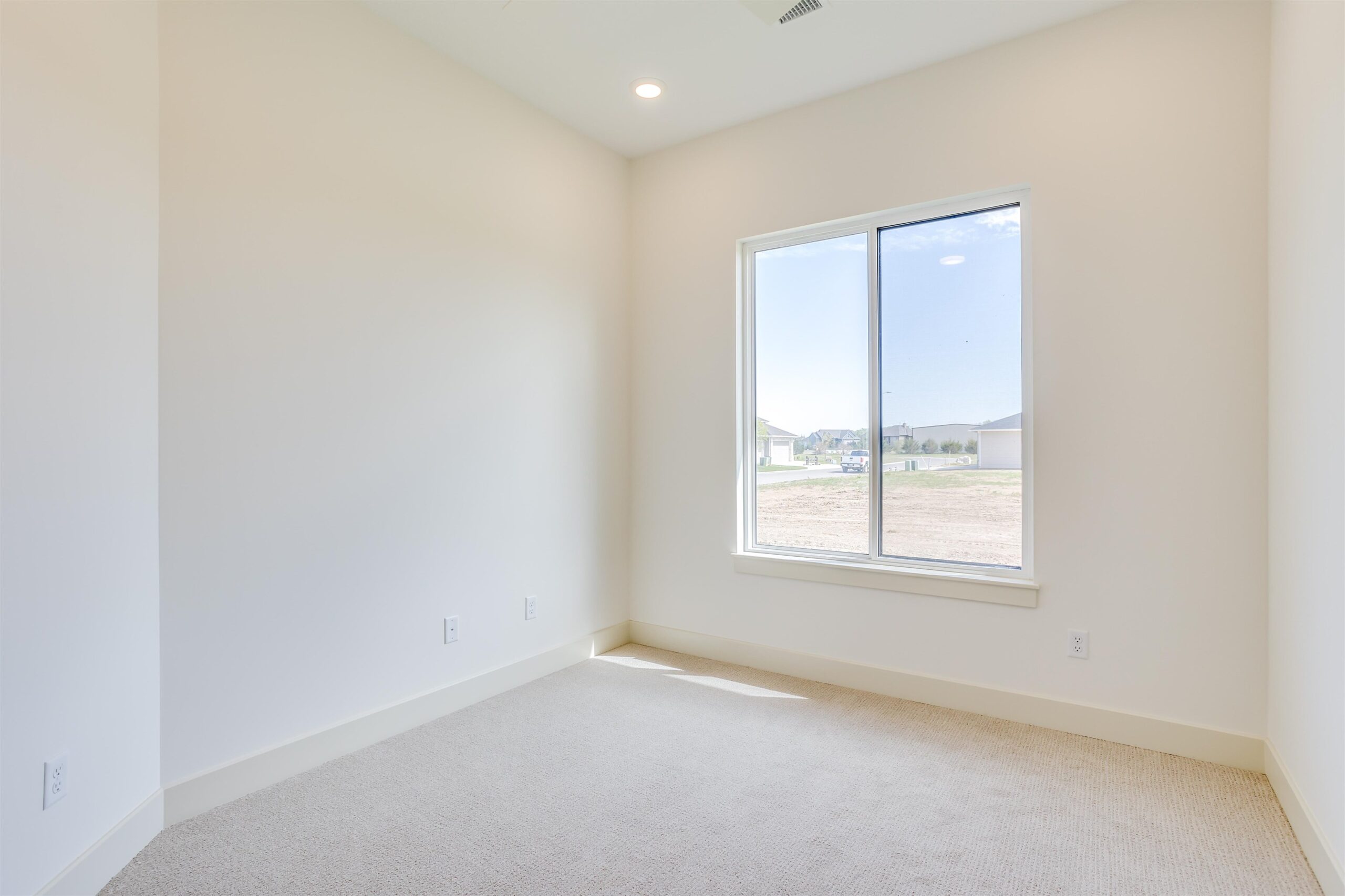 - Description: New zero entry home by Robl Building Co. You enter this home with a large covered porch, entry foyer with curved walls to the great room. The great room features a stone fireplace, built-in cabinets, luxury vinyl flooring and large windows overlooking the screened porch. This plan is open to the kitchen and dining. The kitchen features a center island, walk-in pantry, abundant counter space and cabinets. The primary bedroom has a decorative wood paneled wall, and the bath has a custom tile shower, water closet, large walk-in closet, and double vanities. The primary bedroom connects to the laundry room as does the other bedroom and office. Price includes a concrete safe room, large oversized three car garage, water well, sprinkler, lawn and landscaping. Don't miss out on this beautiful home. MOVE IN READY! Information deemed reliable but not guaranteed and may be changed without prior notice. Taxes estimated.