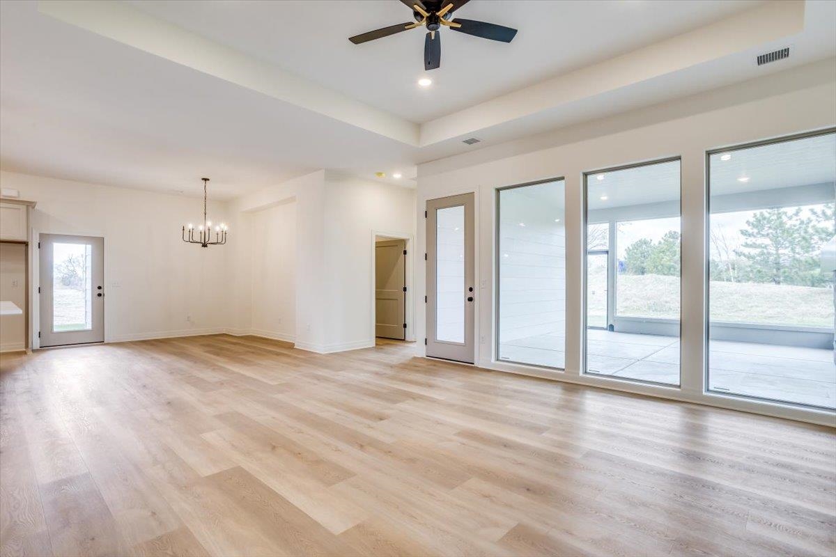 - Description: New zero entry home by Robl Building Co. This three bedroom two and a half bath home features an entry foyer, large entry closet, great room with large tray ceiling and linear electric fireplace with stone veneer. The great room is open to the kitchen and dining room. It also leads to the large screened patio with gas fireplace. The kitchen features a large prep island, quartz counter tops, abundant cabinets, walk in pantry and off the kitchen and dining area is a grilling covered patio. The owner's retreat is adjacent to the laundry area for the convenience of the homeowner and the huge owner's closet serves also as the safe room.. The attached bath has custom tile shower, double vanities, tile flooring and water closet. Additional features are an oversized three car garage with opener, lawn, landscaping, sprinkler and well. Located on a quiet cul de sac in the Sandcrest area which features a clubhouse, outdoor entertainment area with firepit, boating lake, two pools, pickleball court and playground. Call listing agent for showing information. Home is completed and MOVE IN READY! Information including taxes is deemed reliable but not guaranteed and may be changed without prior notice.