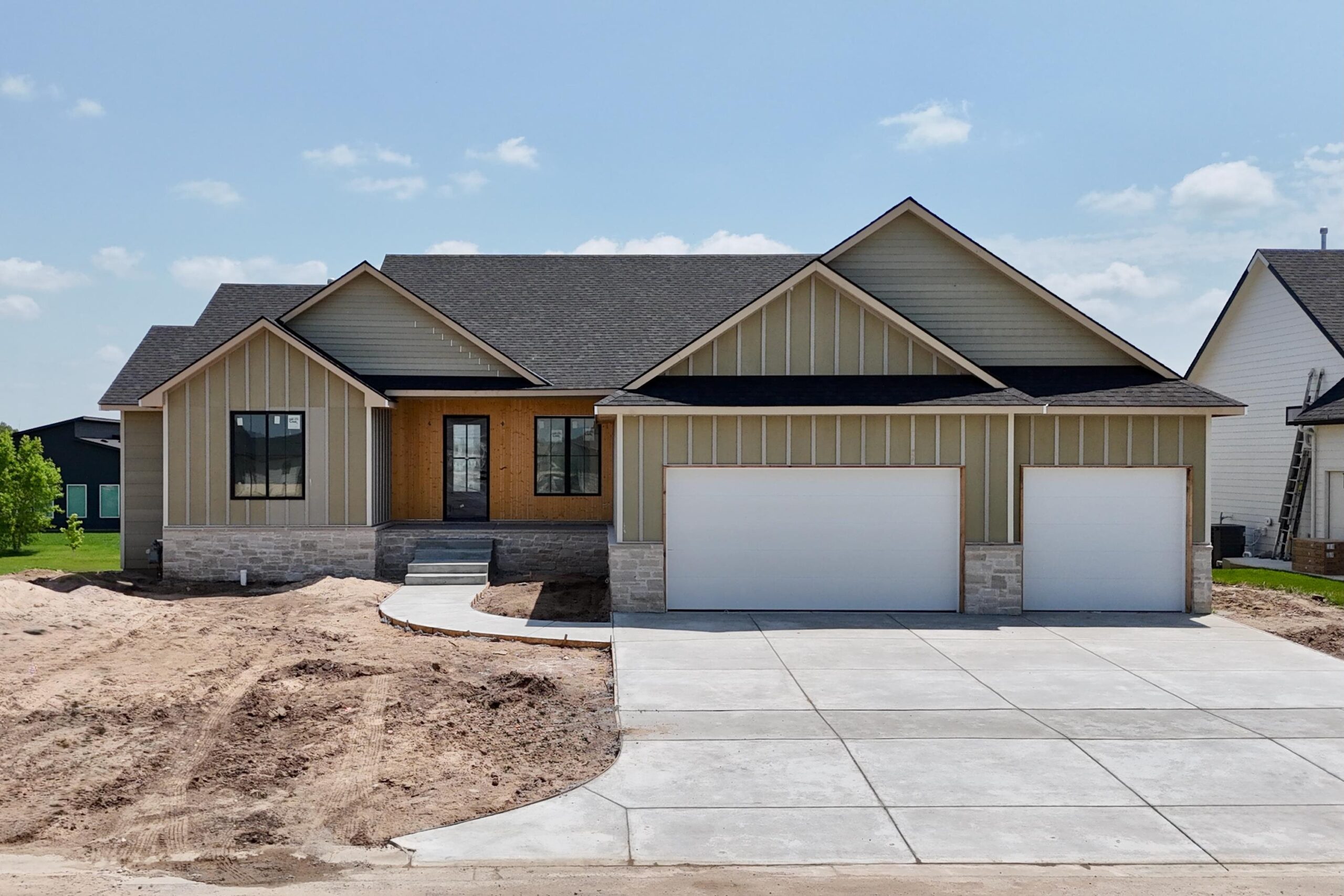 - Description: Step into timeless design and modern luxury in one of Wichita’s most sought-after neighborhoods – Sandcrest. The Driftwood Plan by Buckert Contracting delivers an extraordinary living experience with a striking front elevation featuring natural wood accents and clean architectural lines. Inside, the main floor boasts a spacious, light-filled living room with grand picture windows, vaulted flat ceilings adorned with wood beams, a cozy gas fireplace, and custom built-in cabinets with floating shelves. The heart of the home—an expansive kitchen—offers a massive island, custom range hood, walk-in pantry, and ample cabinetry, all perfectly suited for entertaining and everyday living. Enjoy gathering in the large dining room, which flows seamlessly to a covered deck with stairs to a ground-level patio—perfect for outdoor living and entertaining. Retreat to the luxurious primary suite featuring a spacious bedroom, spa-style bath with dual vanities, soaker tub, fully tiled shower with rain head, and an enormous walk-in closet with direct access to the laundry room. Two additional main floor bedrooms each include walk-in closets and share a stylish Jack & Jill bath, with a separate guest half bath for convenience. The fully finished walk-out lower level expands your living space with a generous family room, an elegant wet bar, and walk-out access to a covered sunken patio with steps up to the backyard. The basement also includes two large bedrooms, a full bath, and abundant storage. All of this is set in Sandcrest, a resort-style community featuring a 45-acre spring-fed boating lake, lakefront clubhouse, two lakeside pools with beach access, playground, soccer field, pickleball court, and more! This home is currently under construction and pricing is subject to change without notice. Some information may be estimated and is not guaranteed. Please verify schools with USD 266.