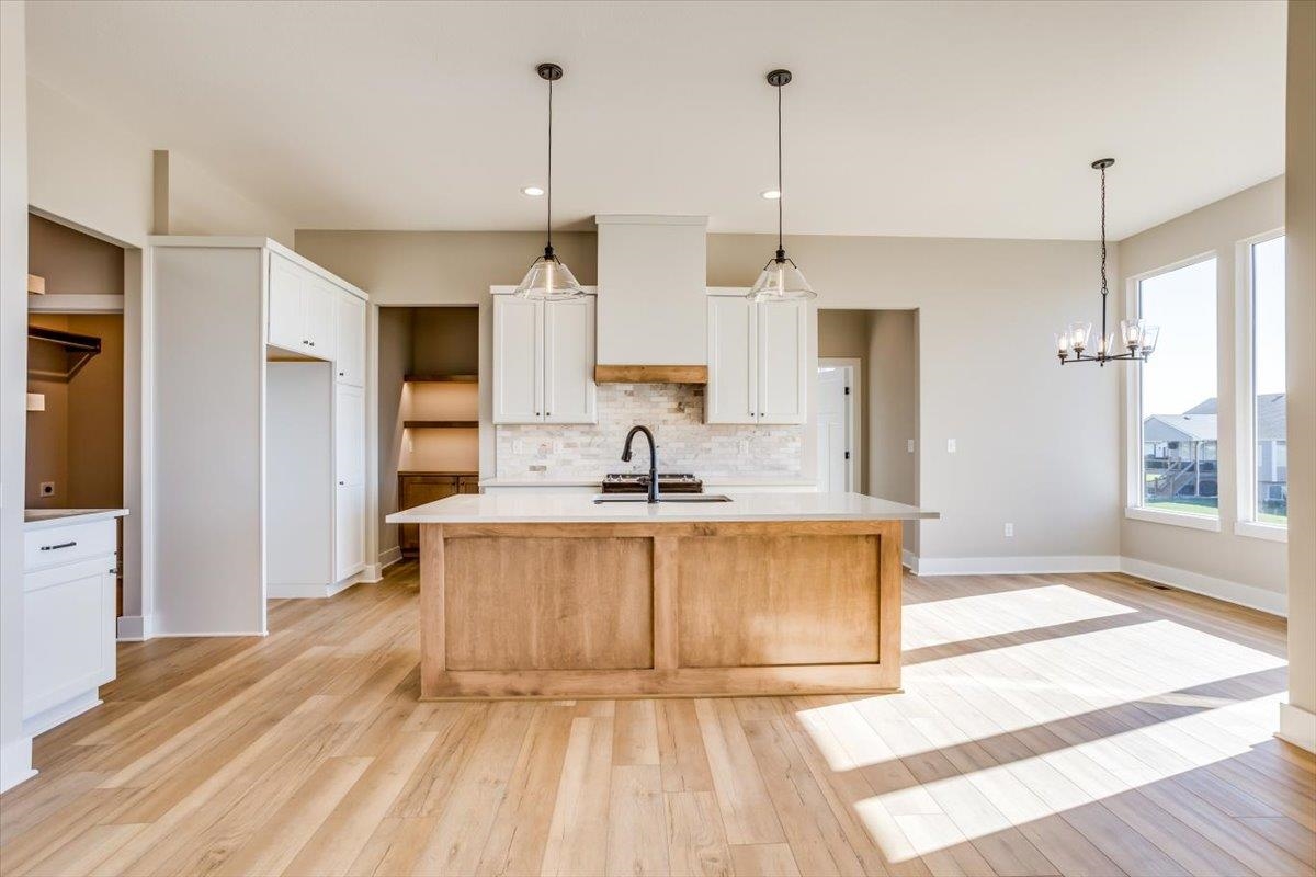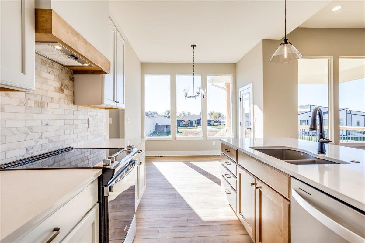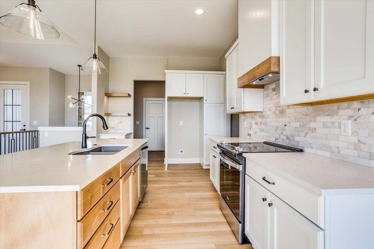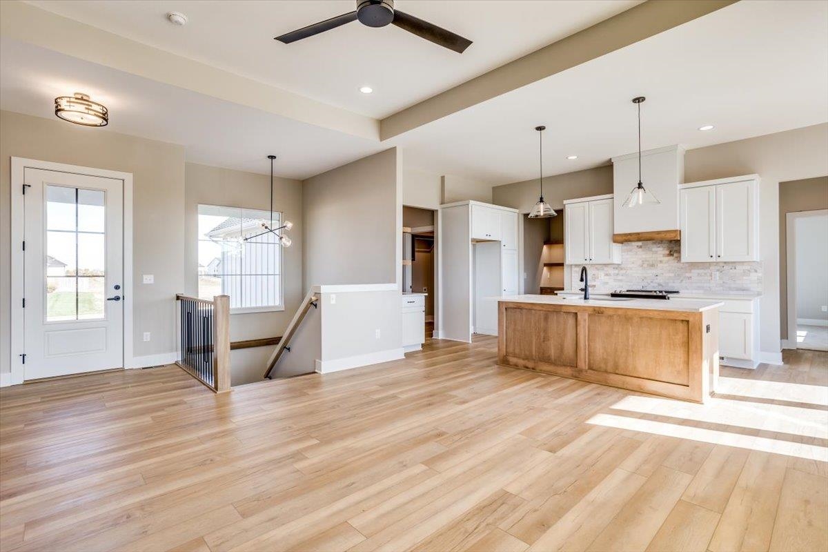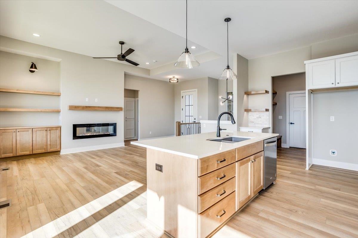 - Description: Brand new floor plan by M&M Custom Construction. The main floor boasts 3 bedrooms. 2 bathrooms, and 1, 546 square feet. This open floor plan features a large kitchen with an island, tons of countertop space, ample cabinet storage, a spacious dining area, and opens up to the covered deck. The master suite includes a walk-in shower with seating, dual sinks, and a large closet. The lower level basement area is framed and ready to be finished which will include two additional bedrooms, a full bathroom, spacious family room, and room for a future wet bar. This home is located on a cul-de-sac and is within walking distance to all the neighborhood amenities. Price includes sprinklers, well, sod, and landscaping.