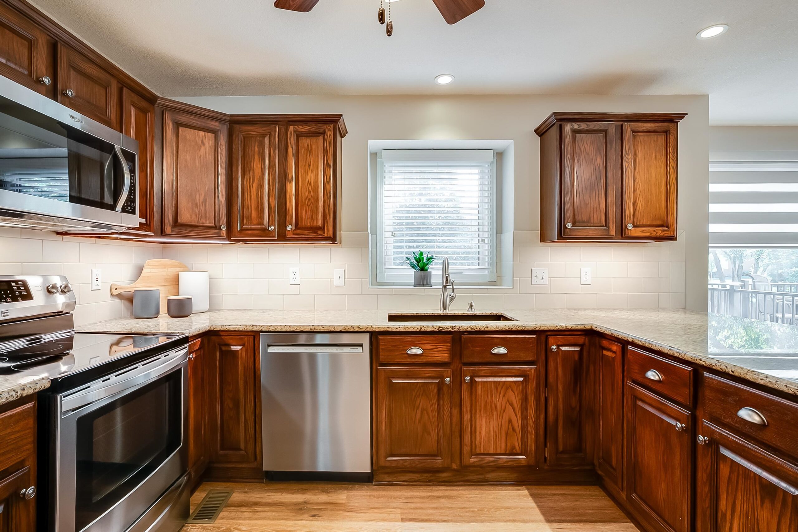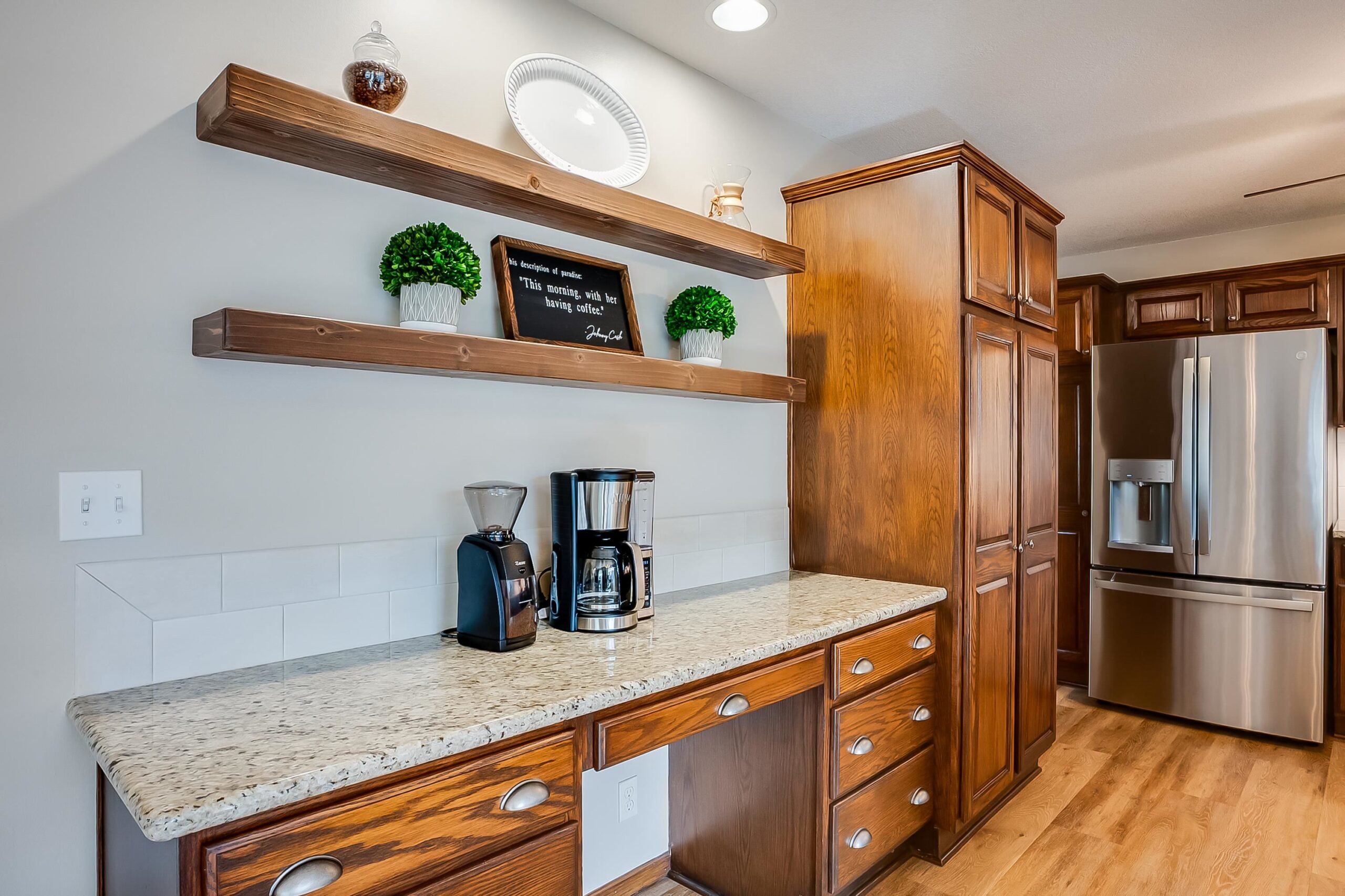 - Description: Beautifully Maintained, Move-In Ready Home in Maize South Schools! Welcome home to this stunning property that blends timeless charm with modern updates. From the moment you arrive, the classic front elevation, lush landscaping, and mature trees set the tone for what awaits inside. Step into a spacious living room with soaring vaulted ceilings, abundant natural light, and recently updated LVP flooring that flows throughout the main level. The large kitchen features sleek granite countertops, plenty of cabinet space, and a sunny breakfast nook, while a separate dining area provides the perfect spot for gatherings. The main floor also boasts a cozy family room with a gas fireplace and walkout access to a low-maintenance composite deck with aluminum railing—ideal for entertaining or relaxing outdoors. A convenient half bath and a well-designed laundry room with built-in cabinetry complete this level. Upstairs, you’ll find a versatile loft space perfect for a home office or playroom, plus a luxurious master suite with a spacious bedroom, walk-in closet, and spa-like bath featuring dual granite vanities, a corner jacuzzi tub, and a separate onyx shower. Two additional bedrooms and a full bath complete the upper level. The fully finished walkout basement offers even more living space with a large family room, wet bar (with room for a full-size fridge), a huge bedroom, and a full bath. Recently updated LVP flooring adds a fresh, modern touch throughout. Enjoy a fully fenced backyard with direct access to the oversized 3rd-car garage bay. This home comes complete with custom blinds, kitchen refrigerator, washer, and dryer—all included for your convenience. Located in the highly sought-after Maize South School District, this home truly has it all. With countless updates and thoughtful details throughout, it’s the perfect blend of comfort, style, and function. Don’t miss the chance to make this move-in ready gem yours—schedule a showing today! Some information may be estimated and is not guaranteed. Please verify schools with USD 266.