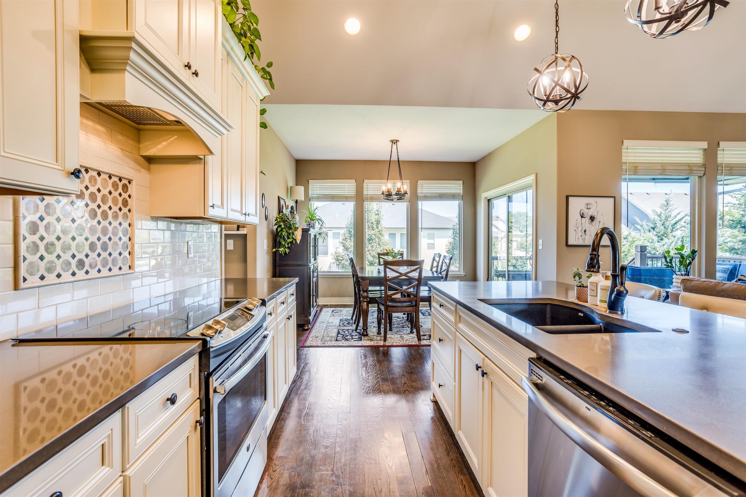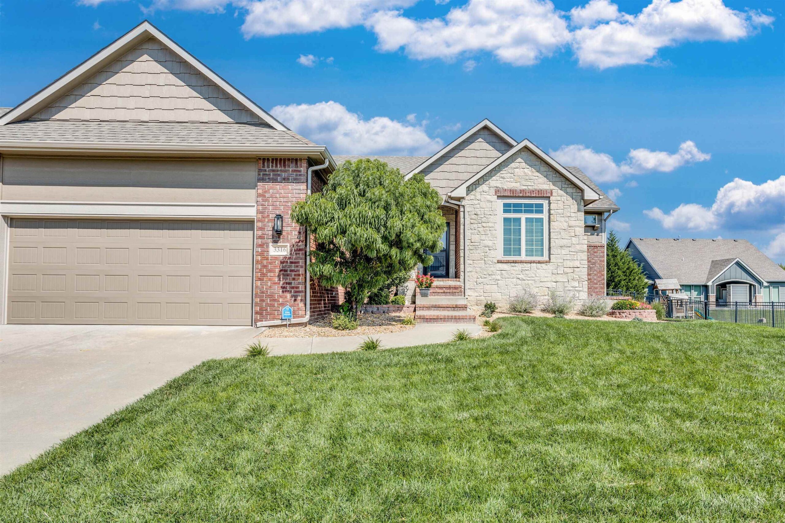 - Description: Welcome to your dream home in the highly sought-after neighborhood of Fontana, located int the city of Wichita and within the esteemed Maize school district. This meticulously maintained residence features 5 spacious bedrooms and 3 full bathrooms, offering ample space for family and guests. As you enter, you'll be captivated by the living room's vaulted ceilings and large picture windows that flood the space with natural light. The cozy gas fireplace, adorned with a stunning stone surround and mantle, creates the perfect atmosphere for relaxation. The heart of the home is the expansive kitchen, complete with a large island, elegant quartz countertops, and a walk-in pantry with an e-station—ideal for meal prep and organizing. Retreat to the luxurious master suite, which boasts a private bath featuring a soothing soaker tub, a beautiful tile wall shower, and a generous walk-in closet with convenient access to the laundry room. Step outside to enjoy the covered deck, perfect for outdoor gatherings, and take advantage of the fully finished walk-out lower level that includes a large family room with a wet bar—ideal for entertaining. This level also offers two spacious bedrooms and a well-appointed hall bath, along with plenty of storage space for all your needs. The covered, screened-in patio provides a serene spot to unwind, while steps lead you up to a fenced backyard, perfect for children or pets to play freely. This home truly combines comfort, style, and functionality in a prime location—don’t miss your chance to make it yours! Some information may be estimated and is not guranteed. Please verify schools with USD 266.