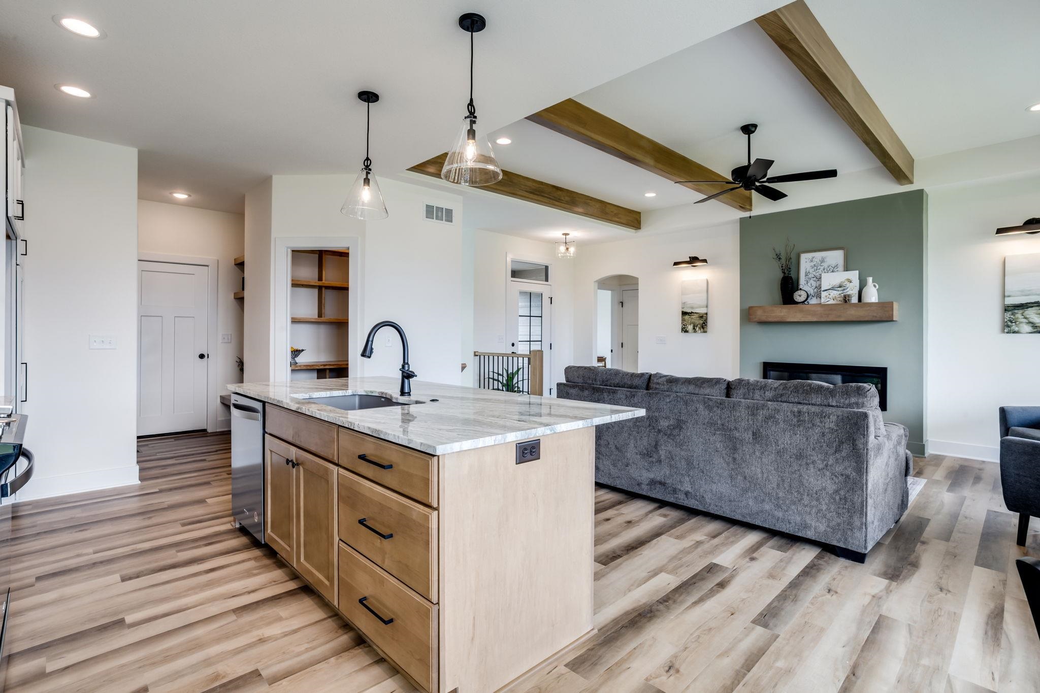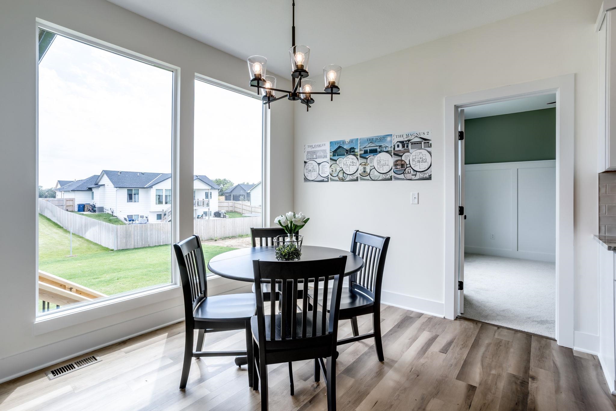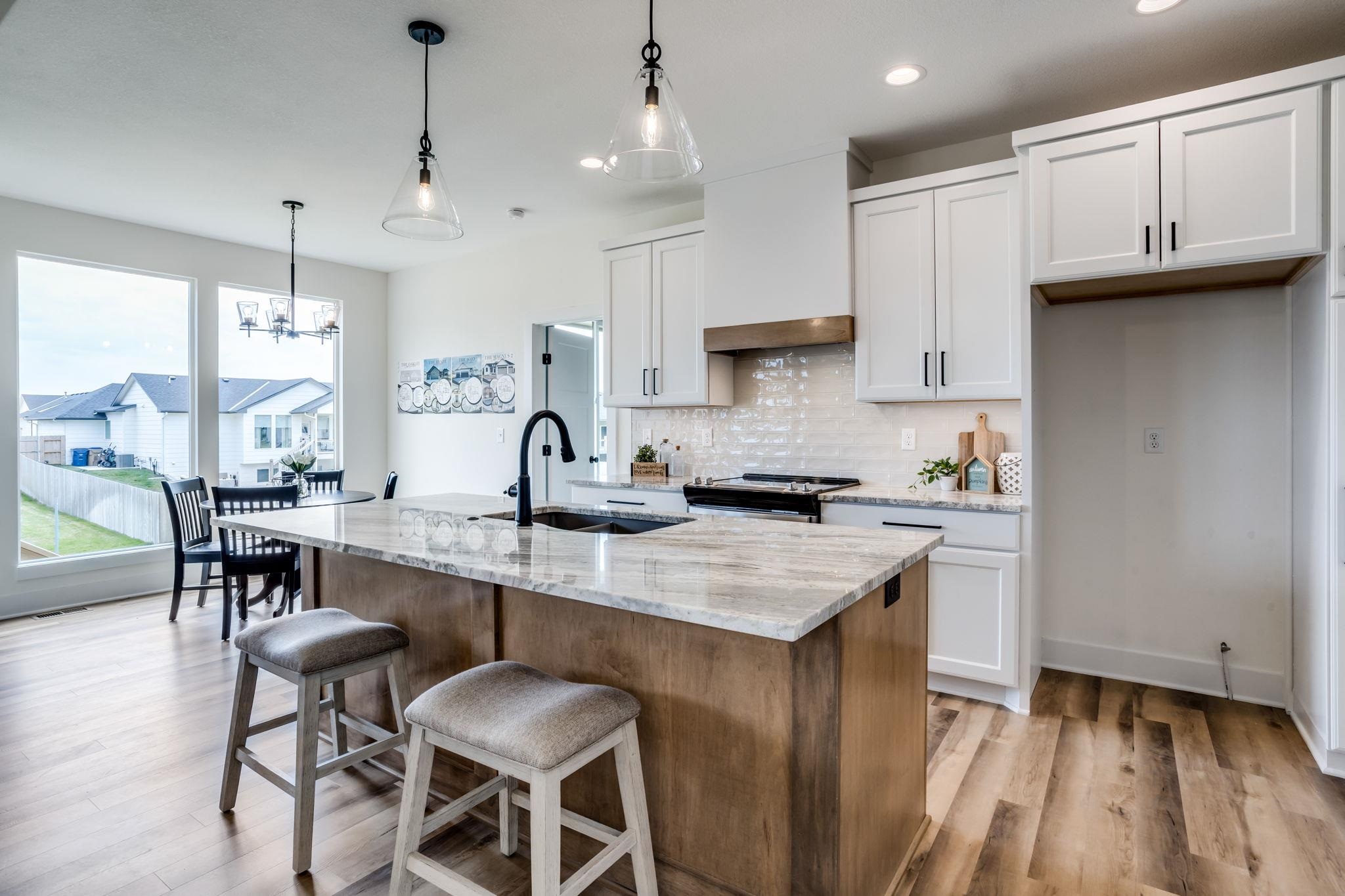 - Description: Welcome to the Magnus 2 one of the most popular M&M Construction designs. Split three bedroom two full baths on the main floor. Great Room has electric fireplace, wood beams and luxury vinyl flooring and is open to the kitchen and dining. The kitchen features a center island, walk-in pantry, quartz countertops, luxury vinyl flooring and drop zone with bench at the garage entry. Dining is located adjacent to the kitchen and gives you a nice view of your large backyard. Owner's suite and bath have walk-in closet, double vanity with quartz countertop and shower. Lower lever has finished family room, two additional bedrooms, full bath and plumbed for future wet bar. This home has a 3-car garage, covered deck, lower patio, sprinkler system, lawn, and landscaping included in the price. Home is the current model, cannot close until following model is complete in May. Information deemed reliable but not guaranteed and may be changed without prior notice.