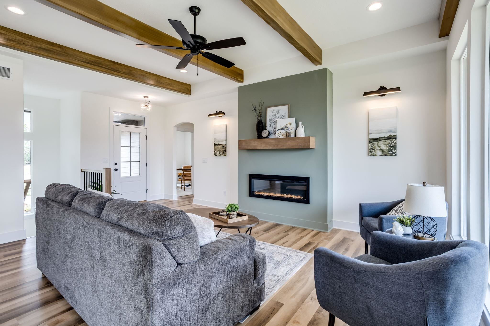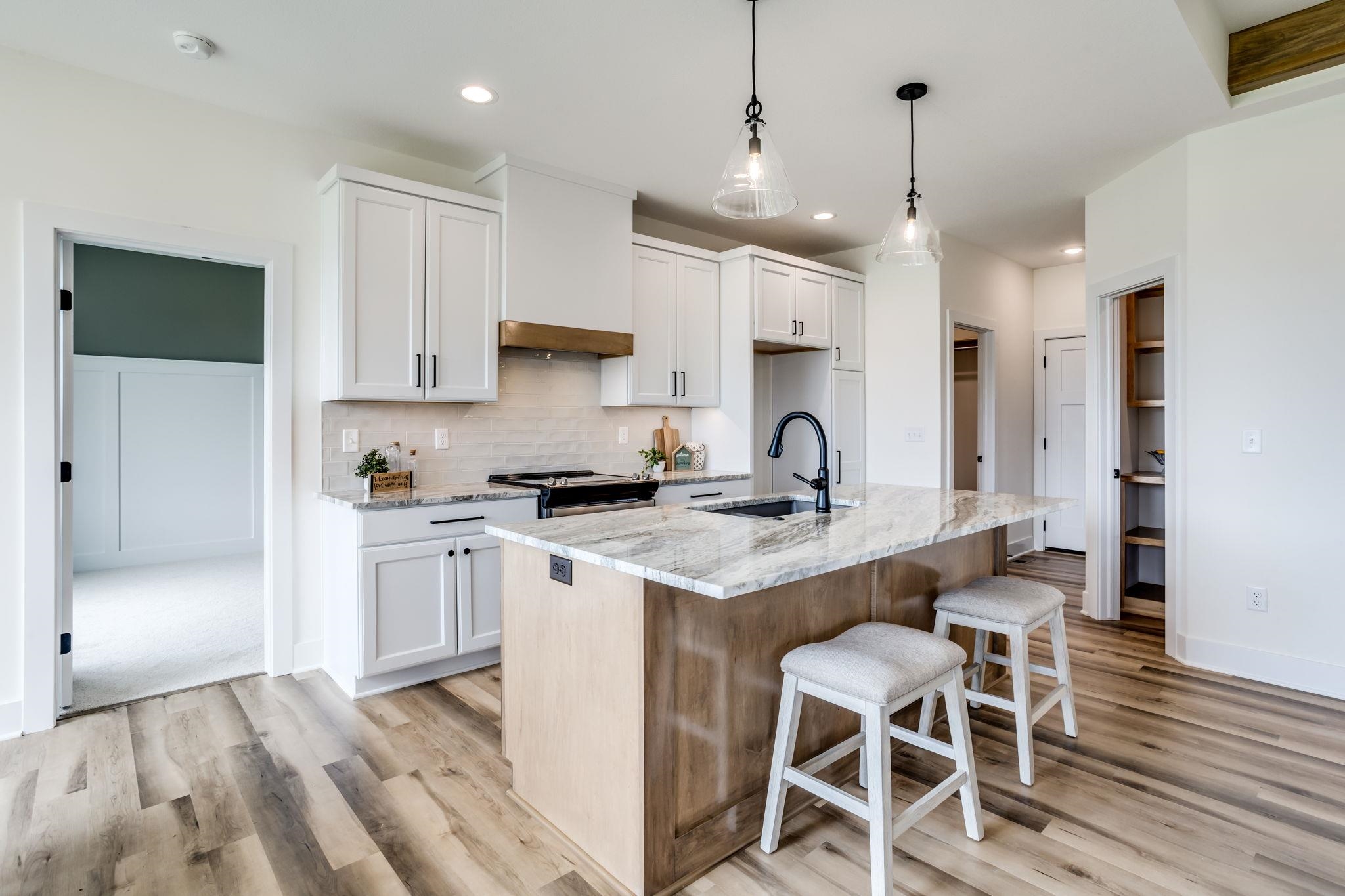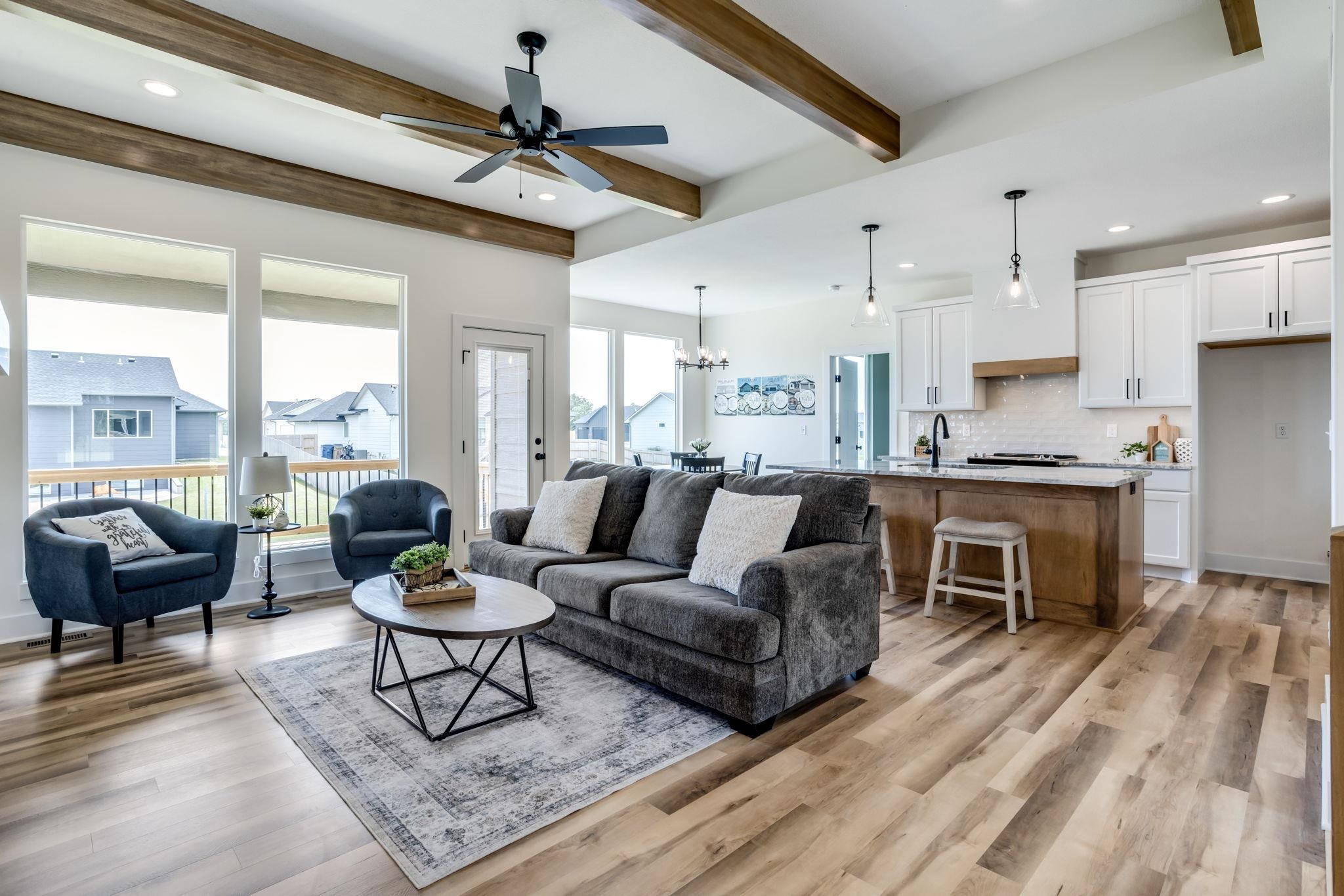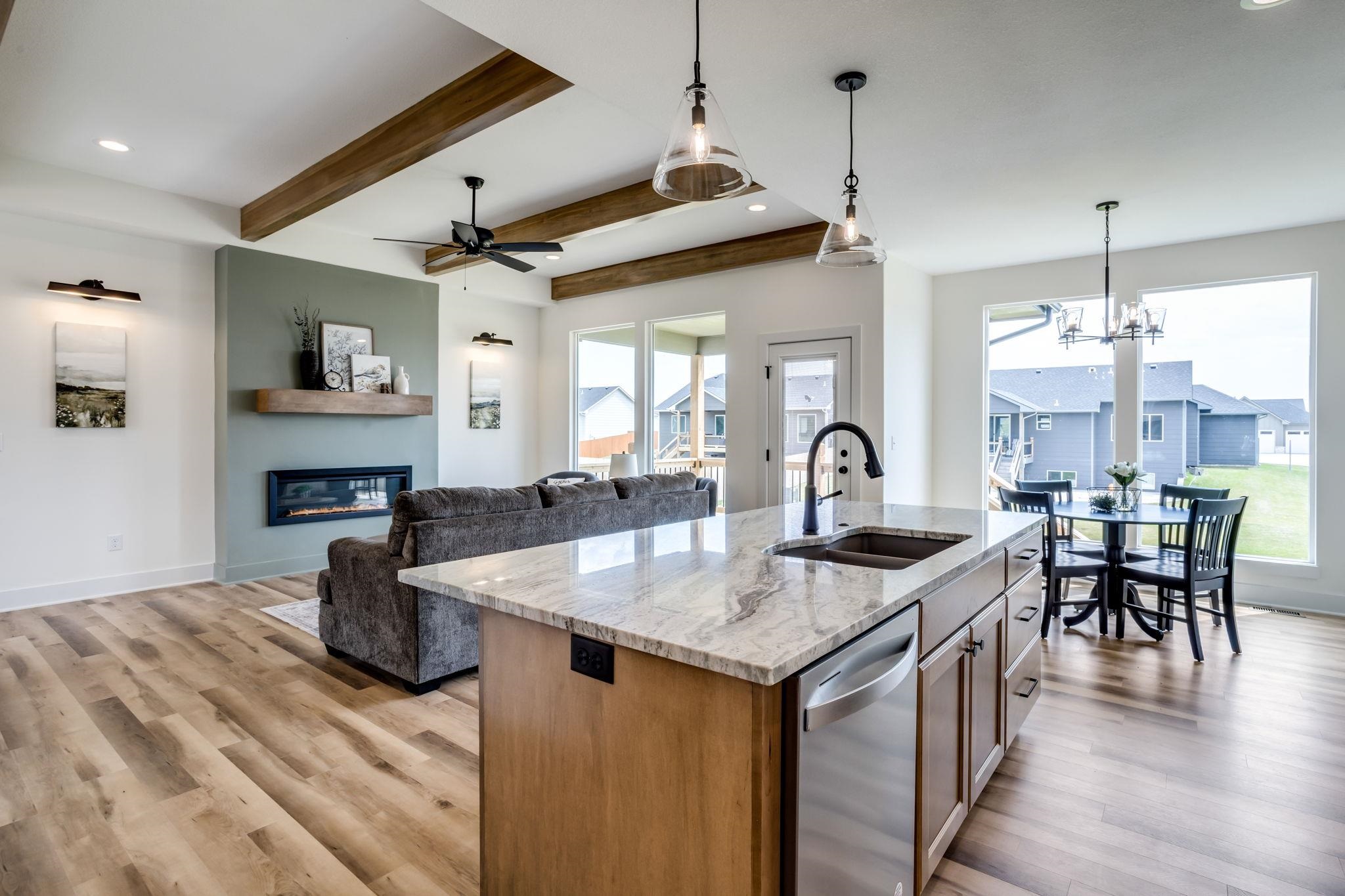 - Description: Welcome to the Magnus 2 one of the most popular M&M Construction designs. Split three bedroom two full baths on the main floor. Great Room has electric fireplace, wood beams and luxury vinyl flooring and is open to the kitchen and dining. The kitchen features a center island, walk-in pantry, quartz countertops, luxury vinyl flooring and drop zone with bench at the garage entry. Dining is located adjacent to the kitchen and gives you a nice view of your large backyard. Owner's suite and bath have walk-in closet, double vanity with quartz countertop and shower. Lower lever has finished family room, two additional bedrooms, full bath and plumbed for future wet bar. This home has a 3-car garage, covered deck, lower patio, sprinkler system, lawn, and landscaping included in the price. Home is the current model, cannot close until following model is complete in May. Information deemed reliable but not guaranteed and may be changed without prior notice.