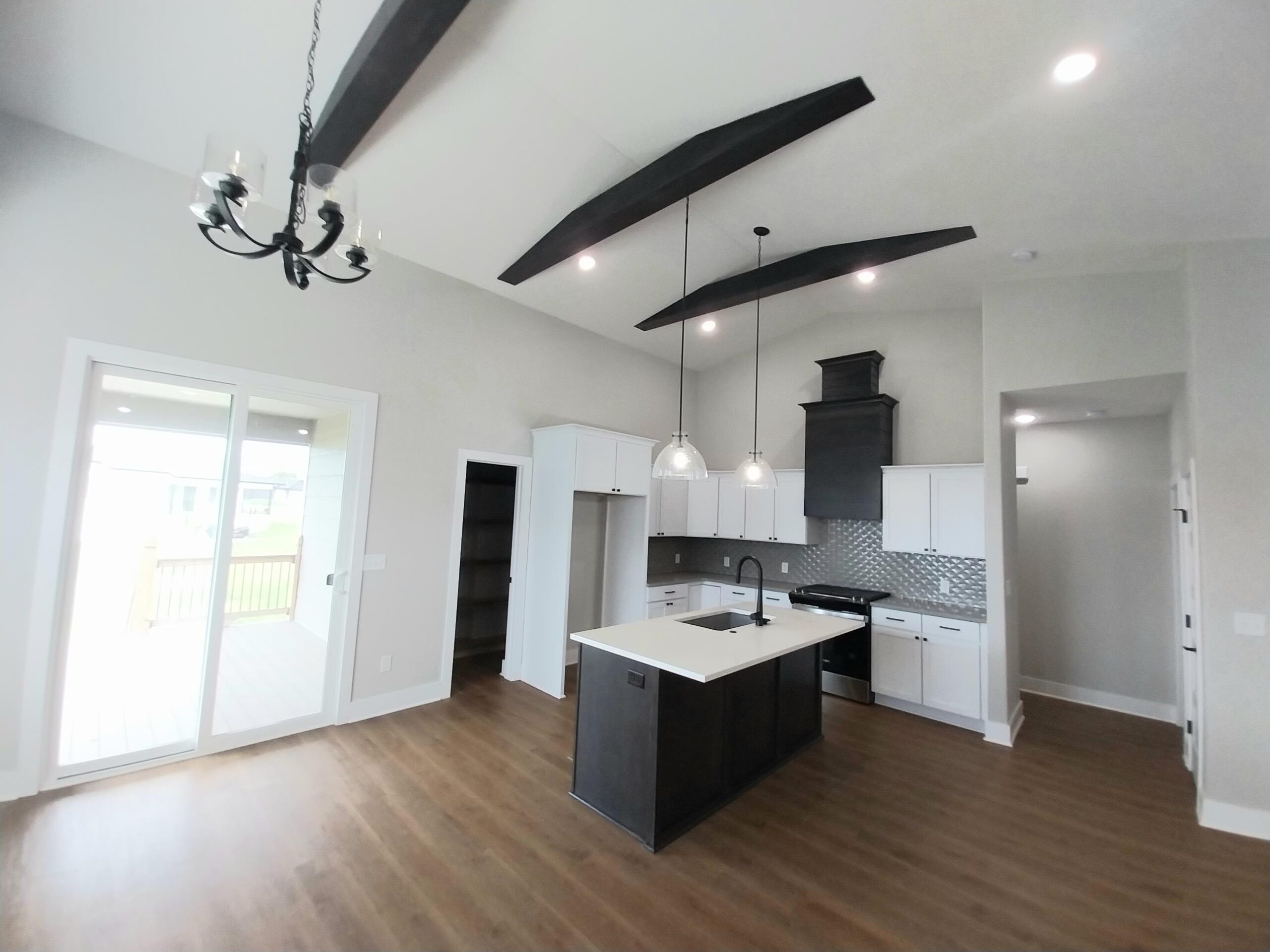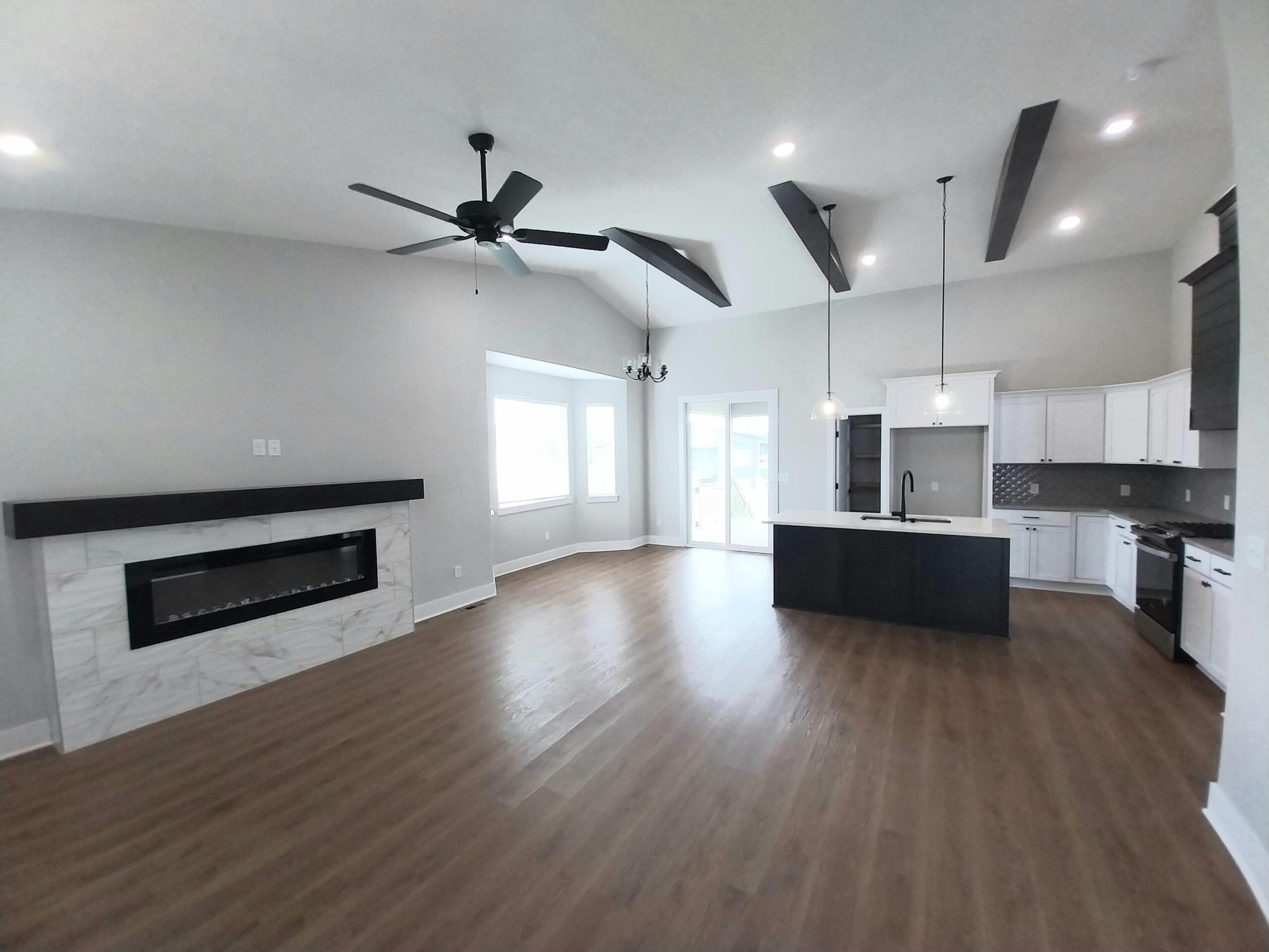 - Description: $7,000 Fall Parade of Homes Incentive! (discount already taken off MLS price.)Modern design on this home on a huge lot! Designed for the family in mind! Large Kitchen with open floorplan with slow close cabinets and walk-in pantry. Luxury vinyl flooring in living, kitchen and dining with electric LED fireplace and quartz surround. Iron fencing with walkout basement and covered deck and 2 patios! Master bedroom features his and her sinks, custom tile walk-in shower with walk-in closet. 4 car tandem garage that is 49 foot deep! High efficiency heating and A/C with tankless hot water heater. This home also has 2 more large basement bedrooms for a growing family with large family room in basement and finished wet bar and walk out door to back yard. A must see for any size family. All information deemed reliable, but not guaranteed. Call Realtor for showing