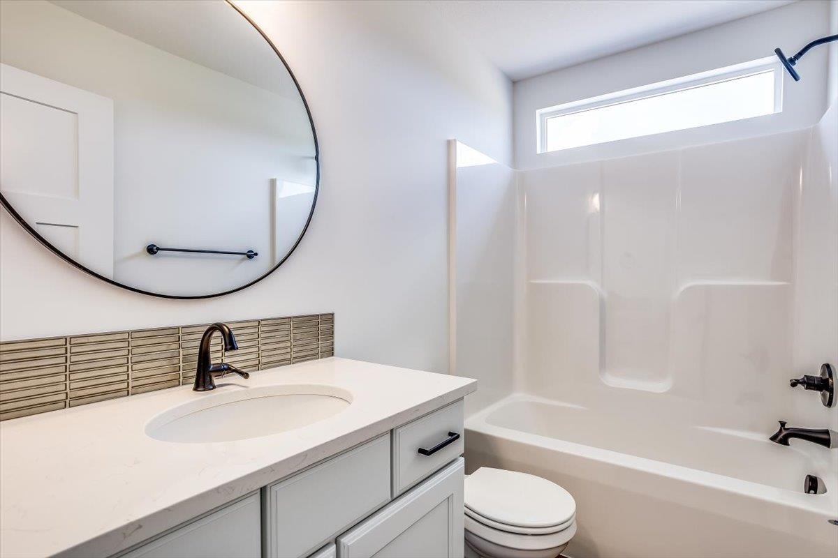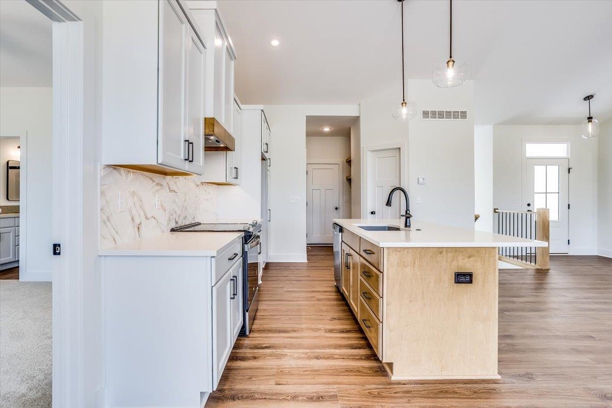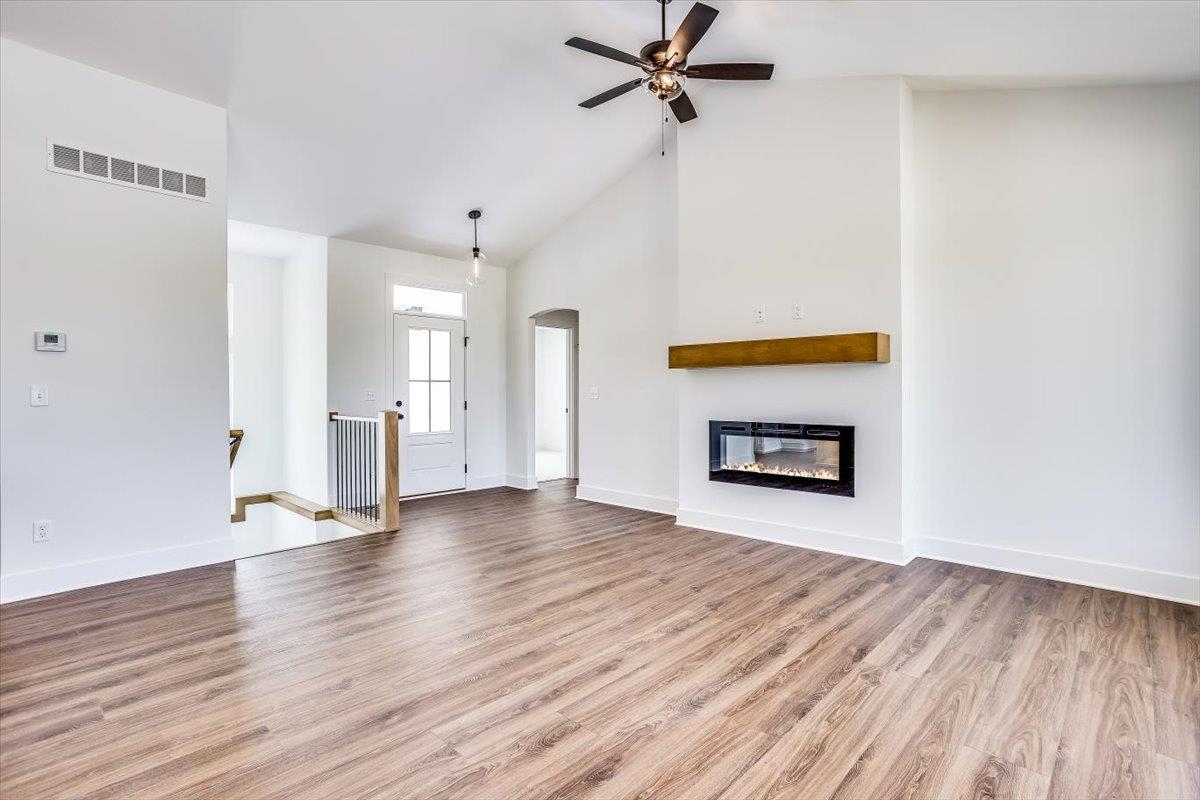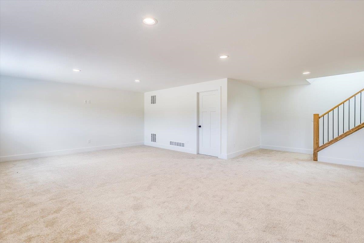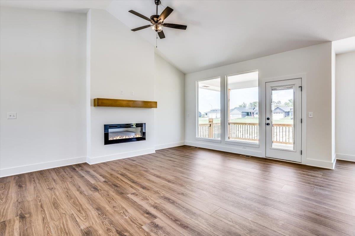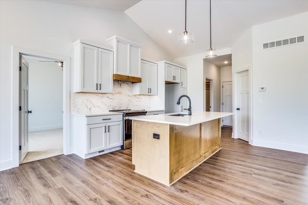 - Description: Open Floorplan, great for entertaining! 5 bedroom, 3 bath 3 car garage with open kitchen, living dining combo nestled on a small cul-de-sac lot! Kitchen Island overlooks dining and living space with plenty of space to entertain. Kitchen features a walk-in pantry with plenty of storage and space to move around while cooking. Living room features access to covered deck overlooking back yard. Both kids rooms are on the other side of home. Master bedroom overlooks back yard with custom ceiling feature. Master bath has large shower with his and her vanities with nice size walk-in closet. Basement is finished with a 30 foot family room, 2 more bedrooms and a bathroom. Custom landscaping and sprinklers are included! Home is new construction and taxes have not been levied yet, you must call county to get accurate property tax info. All information deemed reliable, but not guaranteed.