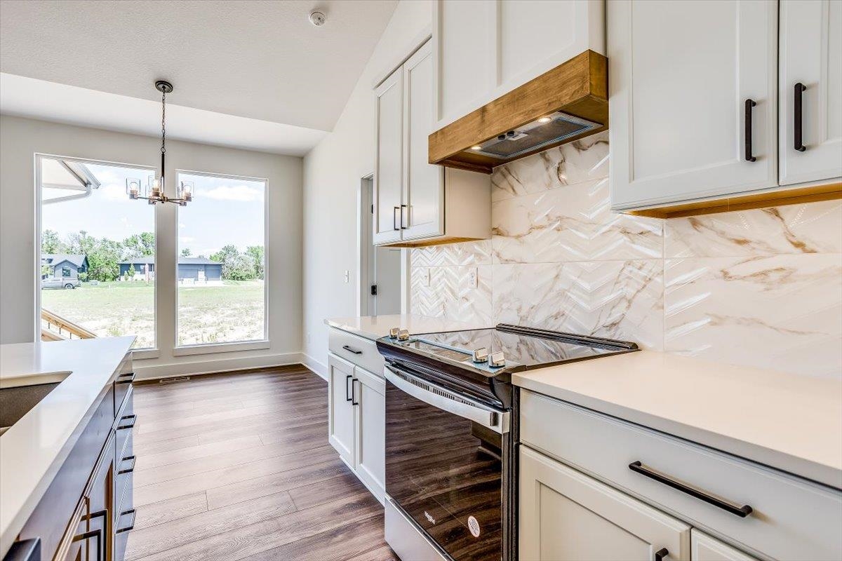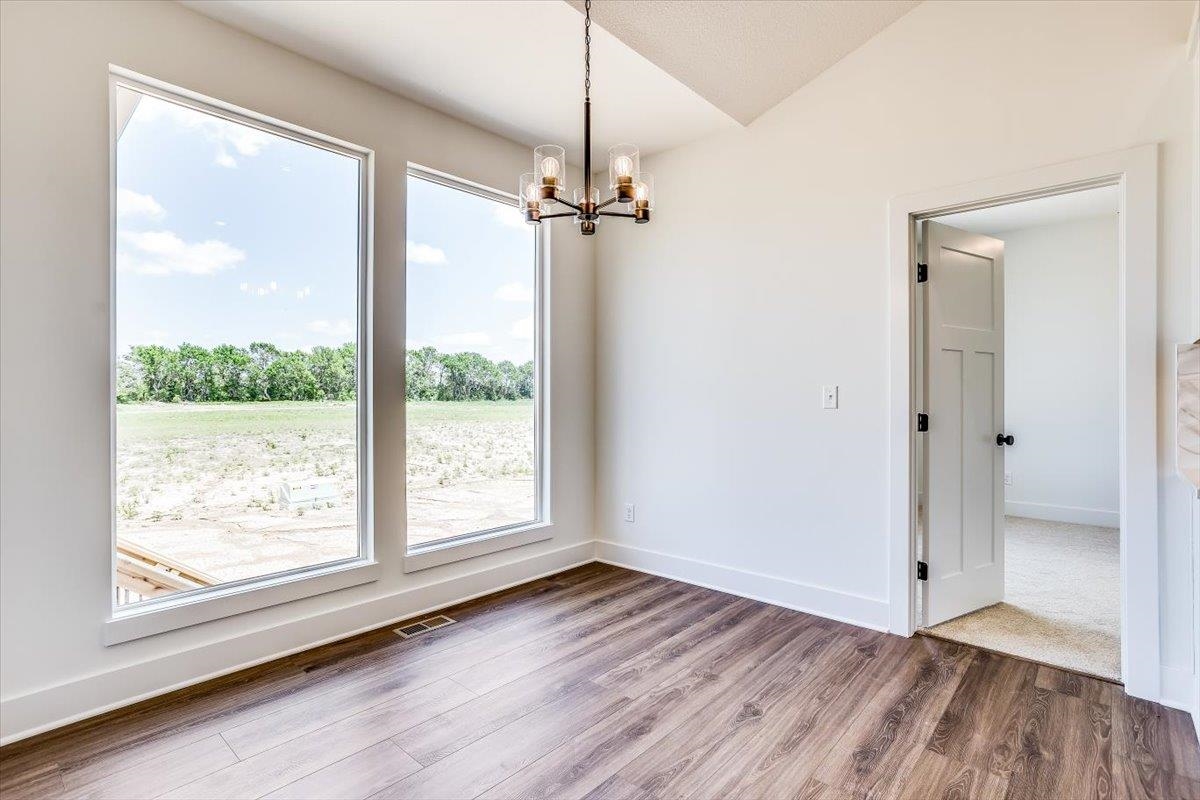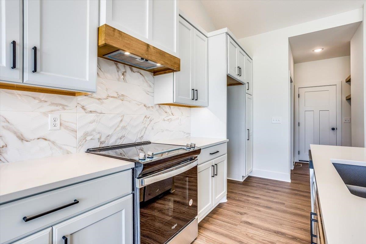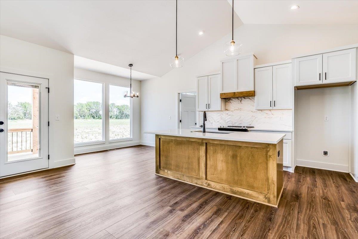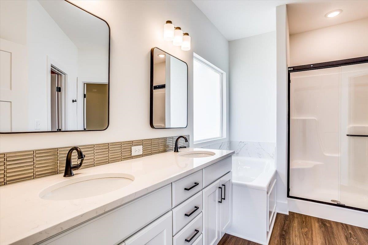 - Description: Open Floorplan, great for entertaining! 5 bedroom, 3 bath 3 car garage with open kitchen, living dining combo nestled on a small cul-de-sac lot! Kitchen Island overlooks dining and living space with plenty of space to entertain. Kitchen features a walk-in pantry with plenty of storage and space to move around while cooking. Living room features access to covered deck overlooking back yard. Both kids rooms are on the other side of home. Master bedroom overlooks back yard with custom ceiling feature. Master bath has large shower with his and her vanities with nice size walk-in closet. Basement is finished with a 30 foot family room, 2 more bedrooms and a bathroom. Custom landscaping and sprinklers are included! Home is new construction and taxes have not been levied yet, you must call county to get accurate property tax info. All information deemed reliable, but not guaranteed.
