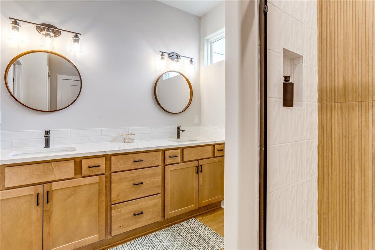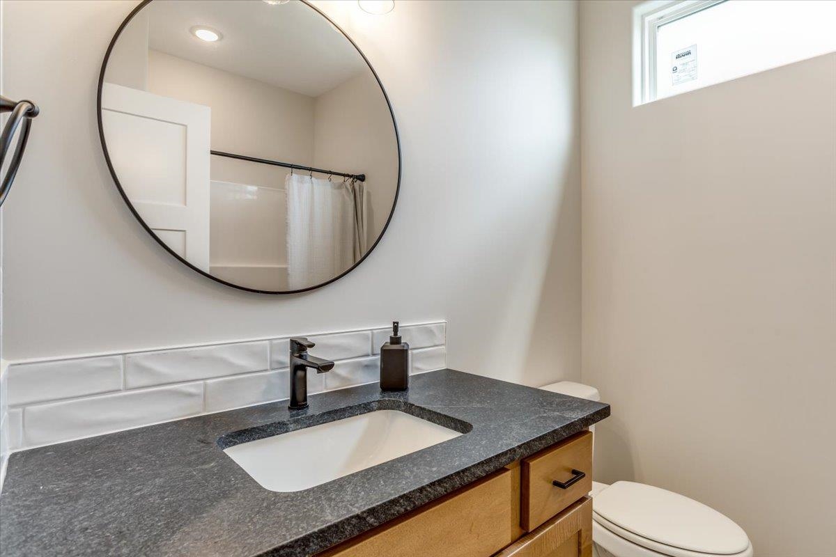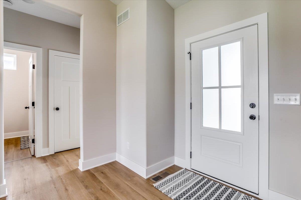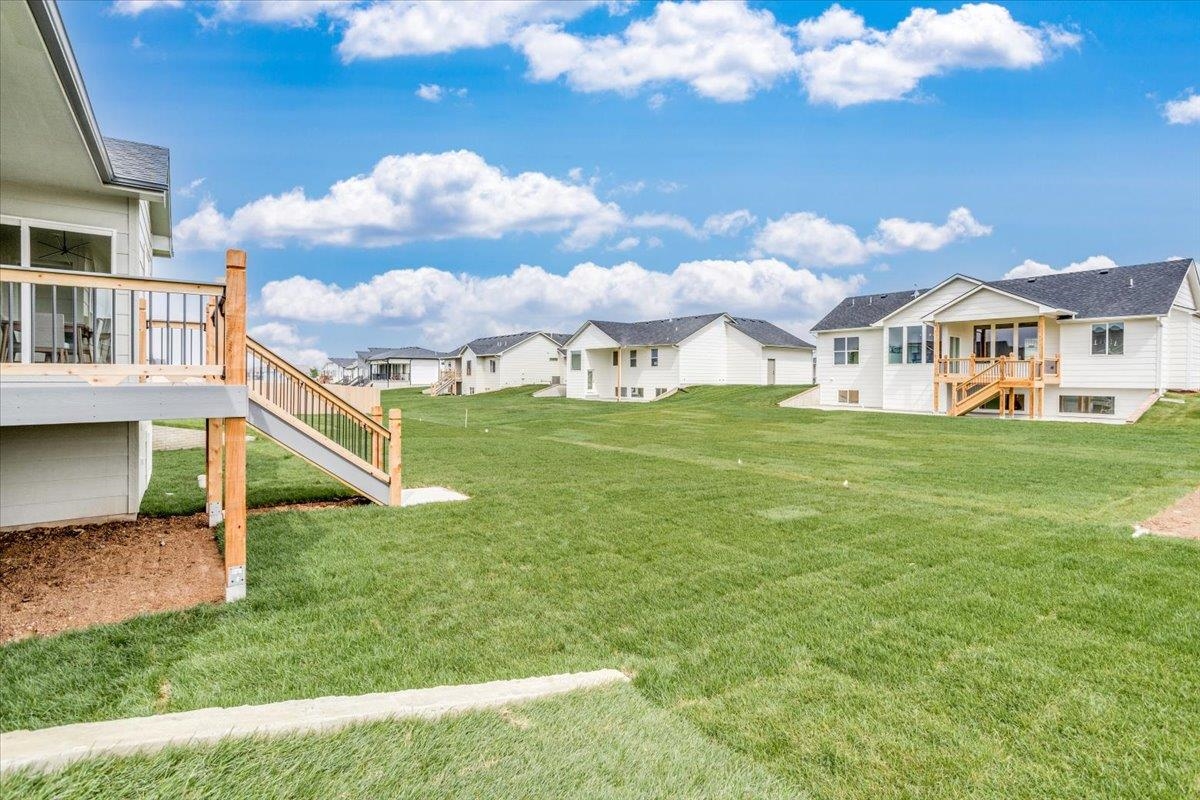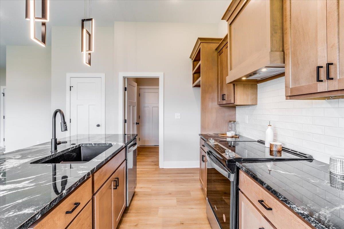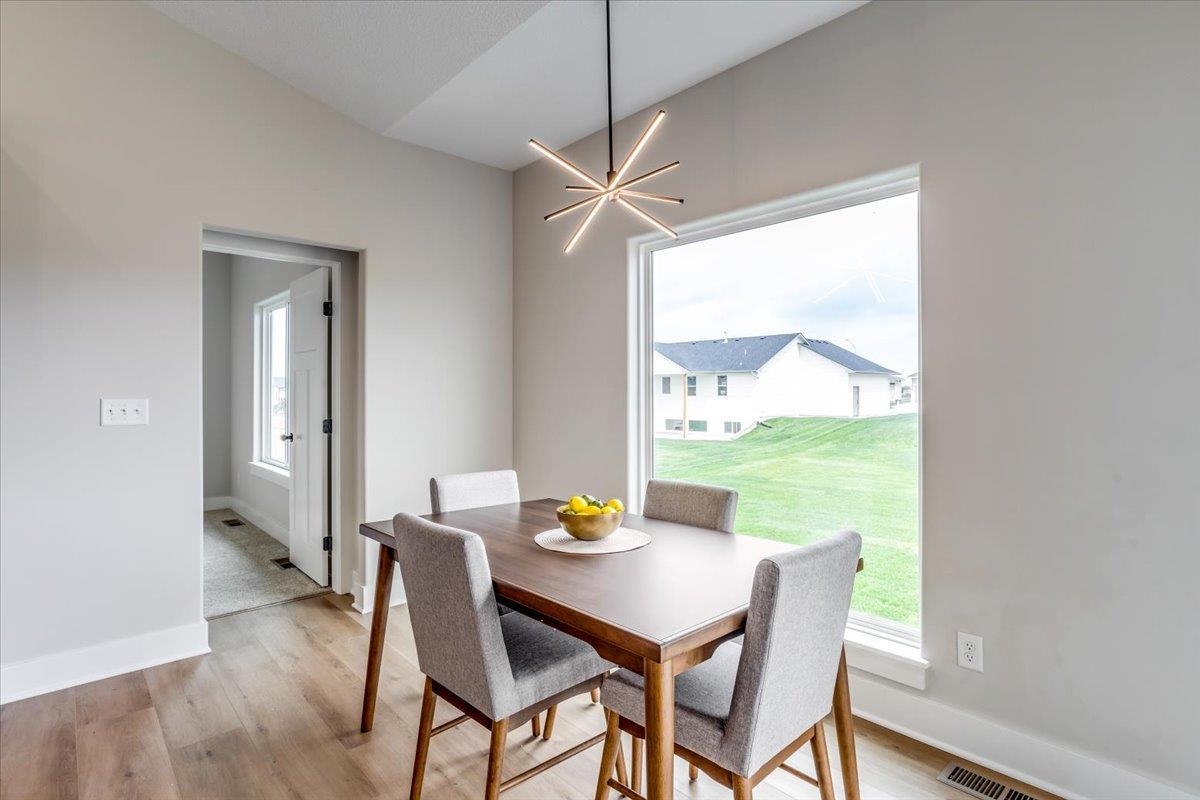 - Description: Open Floorplan, great for entertaining! 3 bedroom, 2 bath 3 car garage with open kitchen, living dining combo nestled on a small cul-de-sac lot! Kitchen Island overlooks dining and Vaulted living space with plenty of space to entertain. Kitchen features a pantry with plenty of storage and space to move around while cooking. Living room features access to covered deck overlooking back yard. This is a split bedroom plan. Master bedroom overlooks back yard with custom ceiling feature. Master bath has large 5 ft shower with his and her vanities with nice size walk-in closet. Basement finish includes two additional bedrooms, family room, full bathroom and wet bar. Sod, sprinklers and landscaping is included! Home is new construction and taxes have been estimated. All information deemed reliable, but not guaranteed and may be changed without prior notice.