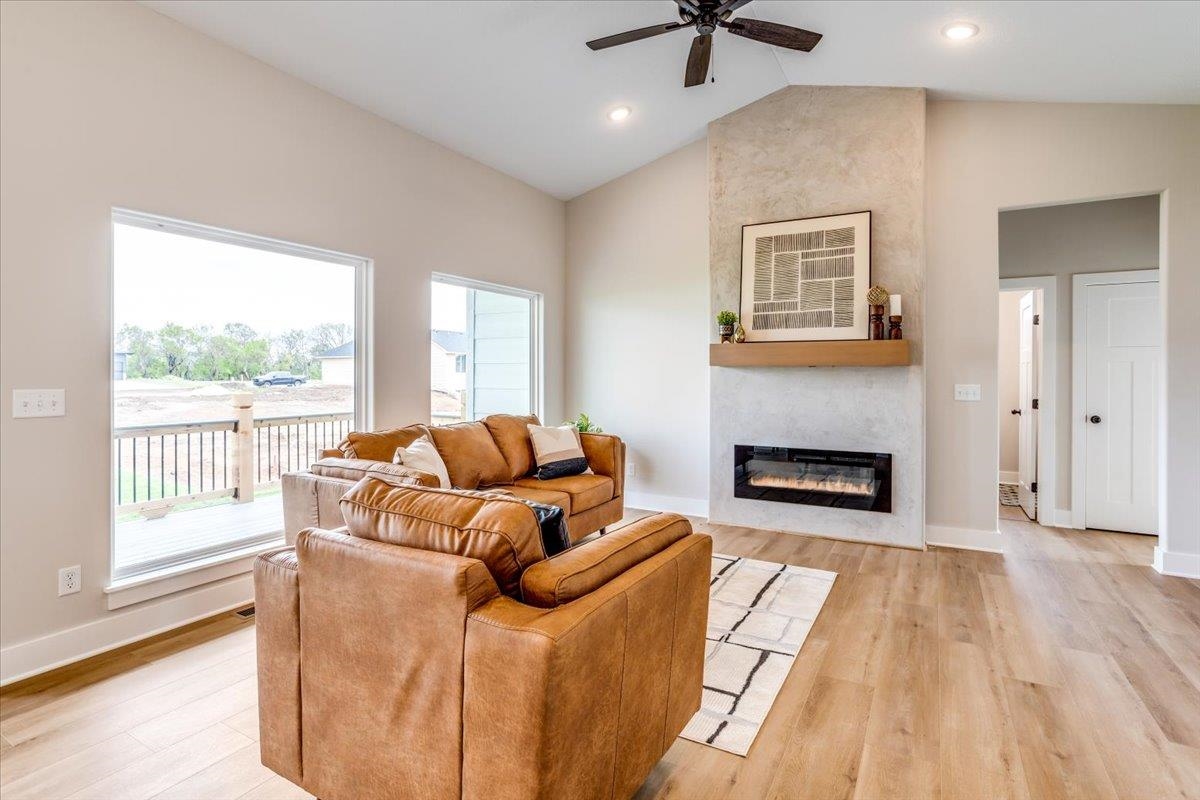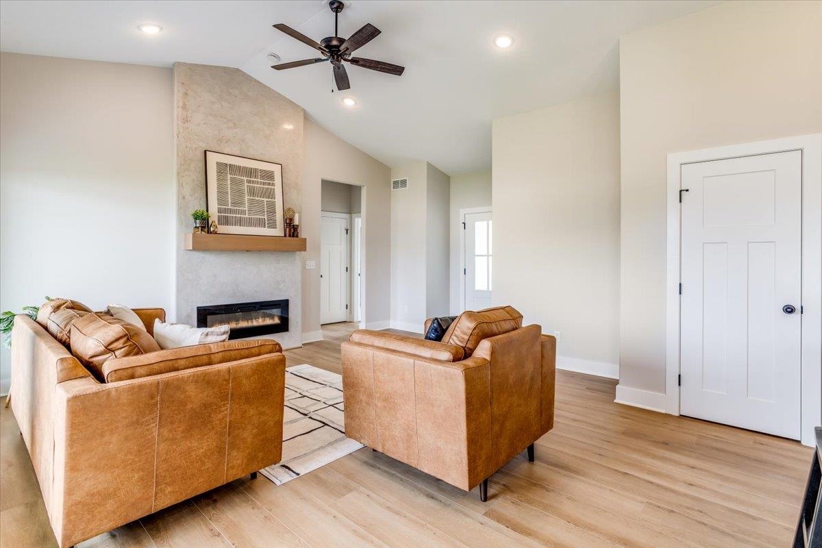 - Features: Ceiling Fan(s)DecorativeDecorative FireplaceElectricLaminateLiving RoomOneVaulted CeilingVaulted Ceiling(s)Walk-In Closet(s)