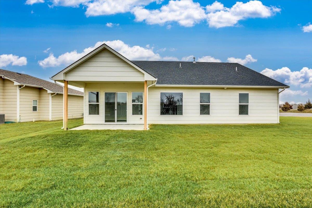 - Description: Brand new patio home plan with 2 bedrooms, 2 baths, sunroom, and oversized 2 car garage! Includes storm shelter in garage. In Edgewater Patios, the homeowners have control over their own well and sprinkler systems, so you determine when and how much you water. Information deemed reliable but not guaranteed and may change without notice. Room sizes estimated. Taxes estimated and shown on vacant lot. Specials may not be entirely spread yet on this lot. HOA dues go under annual review and may change. There is a $250 mailbox fee collected at closing. One member of Wells Construction LLC is licensed realtor in state of Kansas.