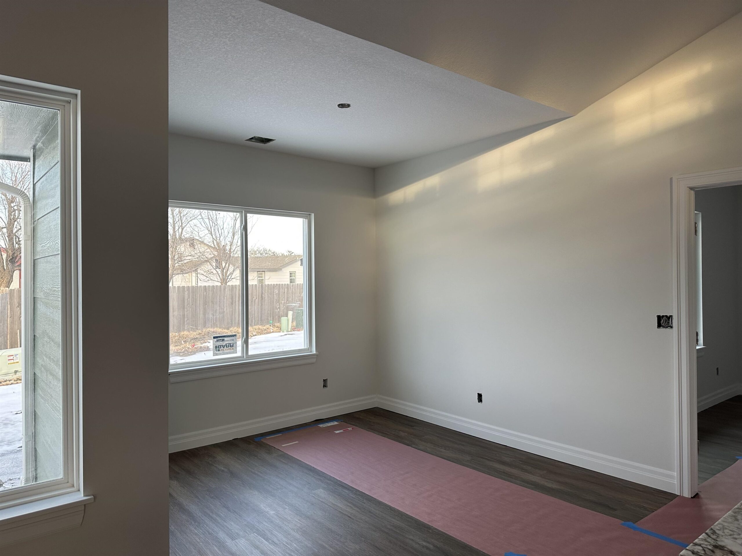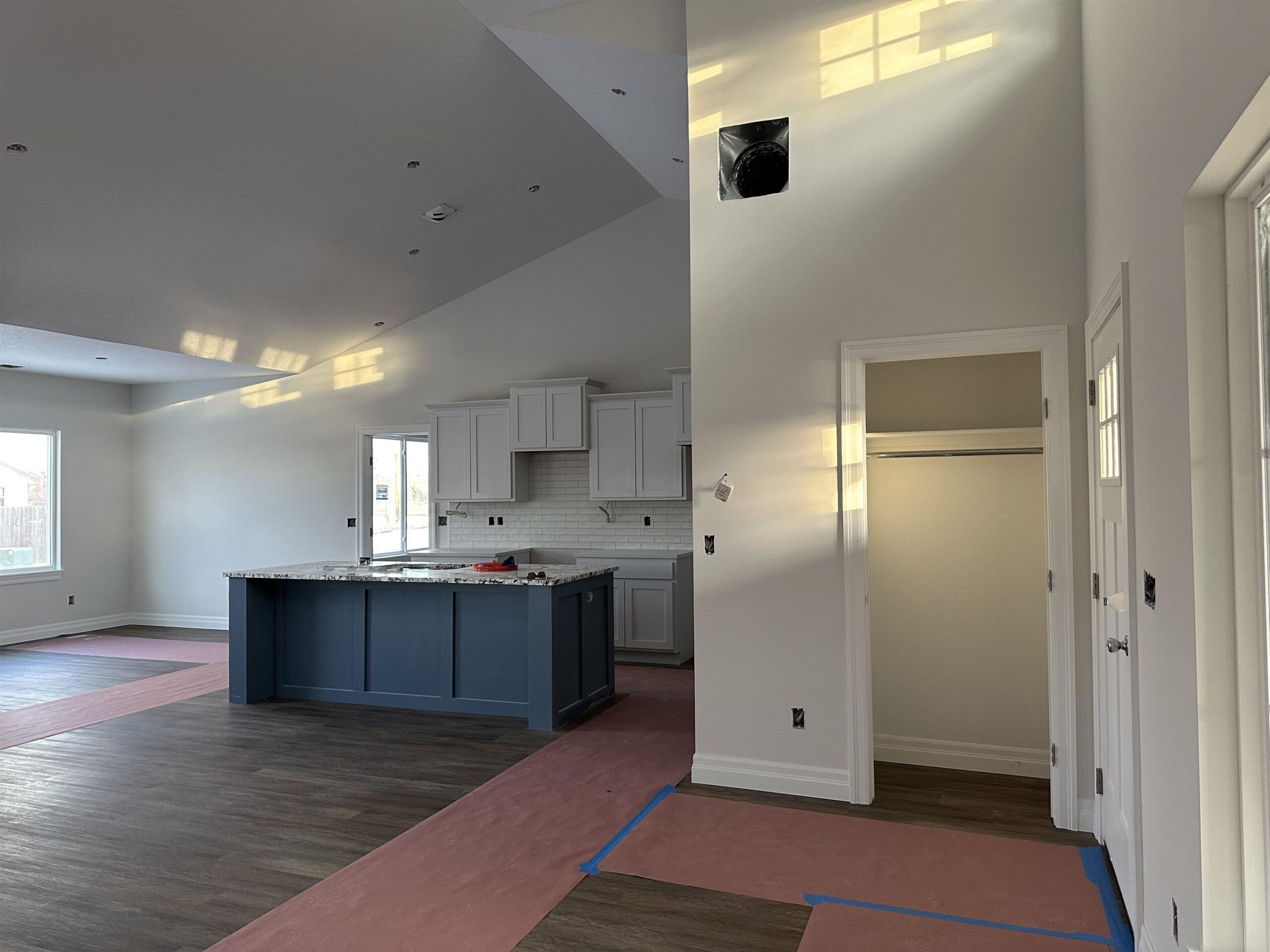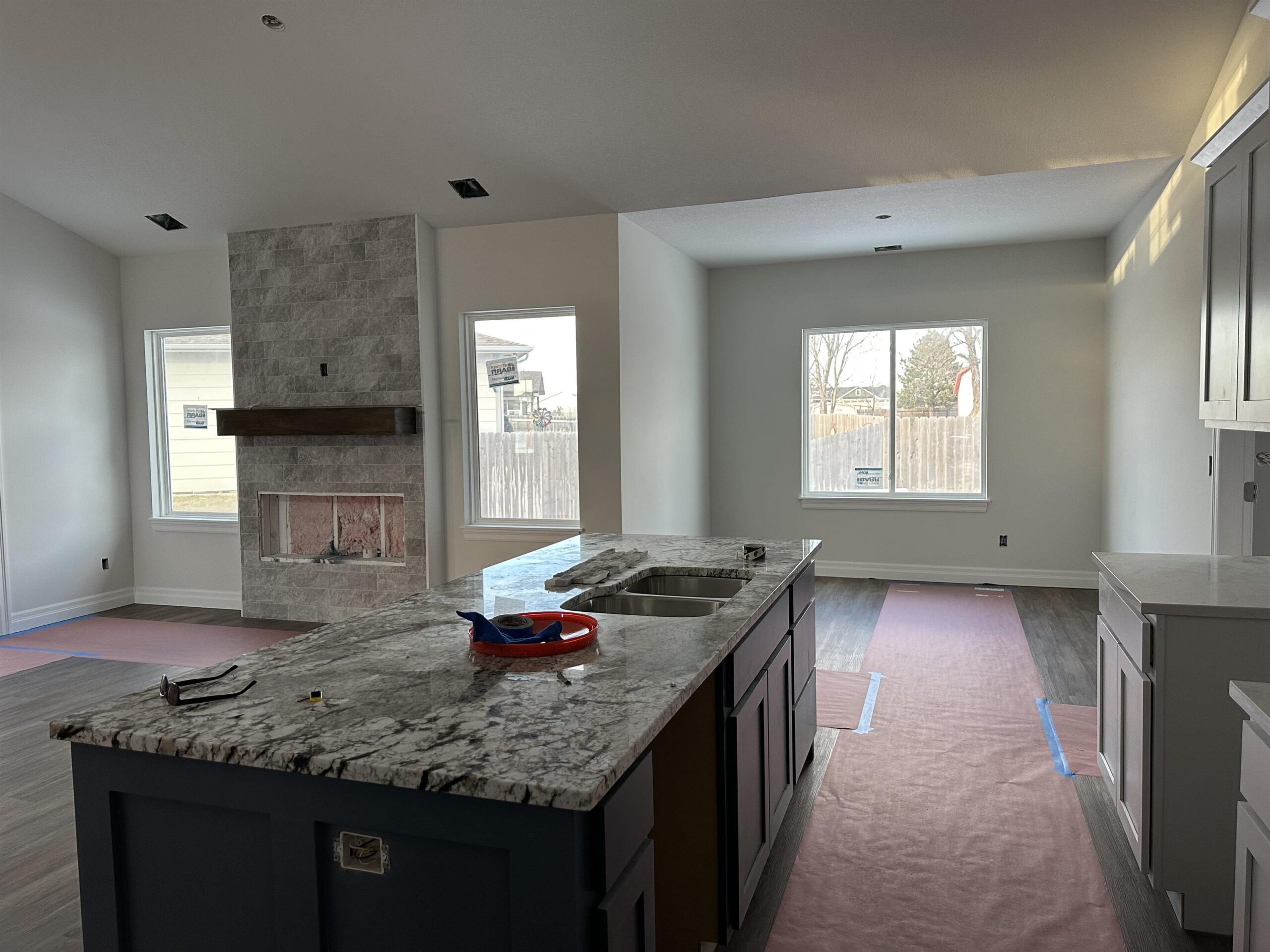 - Description: Brand new "Piccolo" plan with 3 bedrooms, 2 baths, and 3 car garage! Lovely kitchen in the very open plan with a nice island with seating overlooking the living room with electric fireplace. You'll love the pretty stone on surrounding the fireplace! Primary suite is spacious with an extra large closet. Off to the side you’ll enjoy the covered and screened in back patio. Spacious 3 car garage includes storm shelter. Curbless shower in primary bath. No carpet, all luxury vinyl or tile in this home for easy cleaning! Fence is included! Includes well, sprinkler, sod, and landscaping. In Edgewater Patios, the homeowners have control over their own well and sprinkler systems, so you determine when and how much you water. Information deemed reliable but not guaranteed and may change without notice. Room sizes estimated. Taxes estimated and shown on vacant lot. Specials may not be entirely spread yet on this lot. There is a $250 mailbox fee collected at closing. One member of Wells Construction LLC is licensed realtor in state of Kansas.