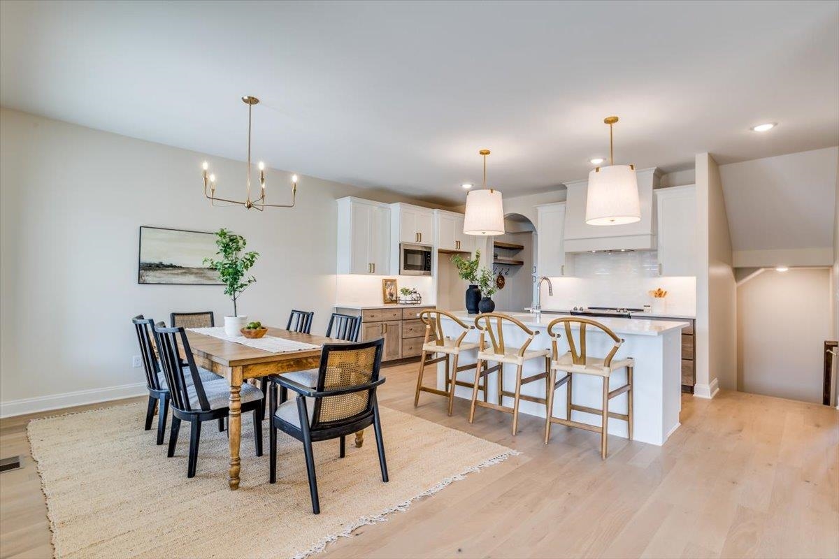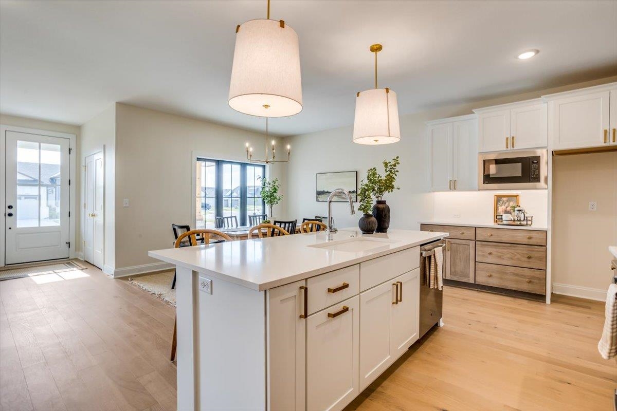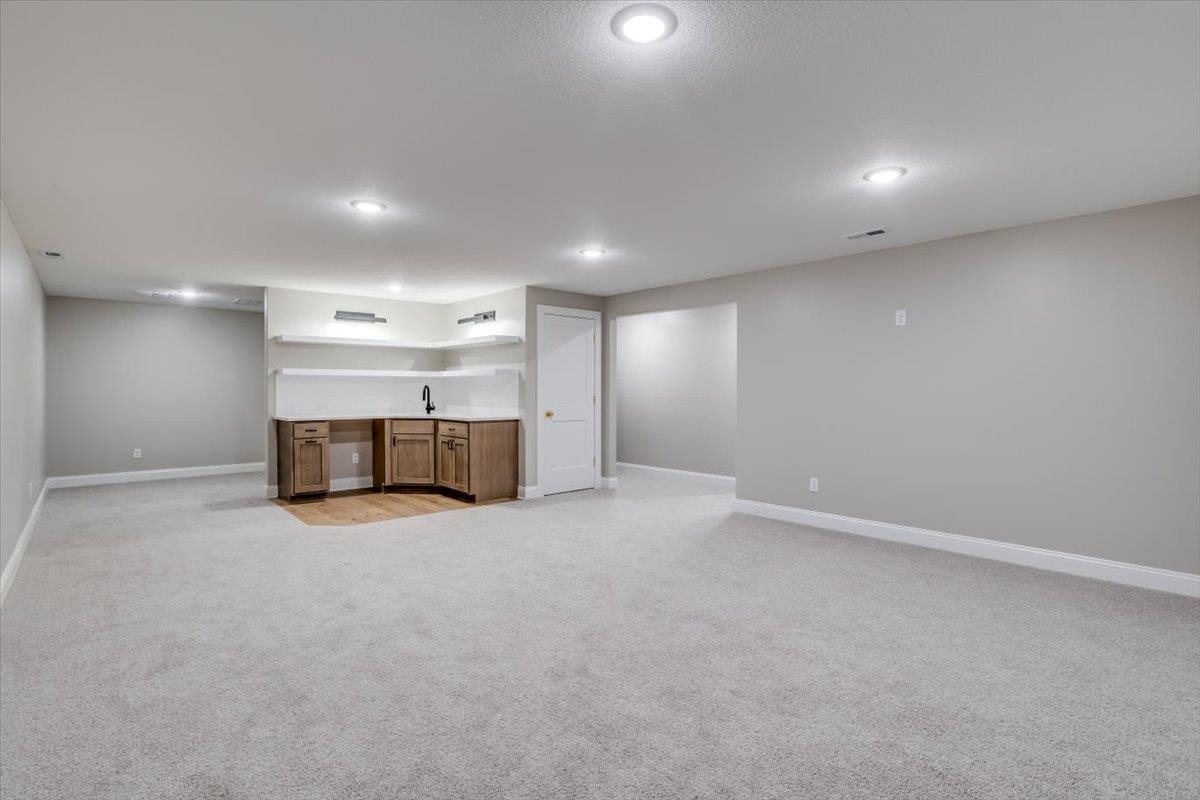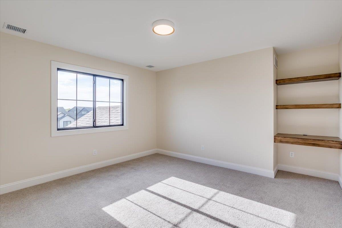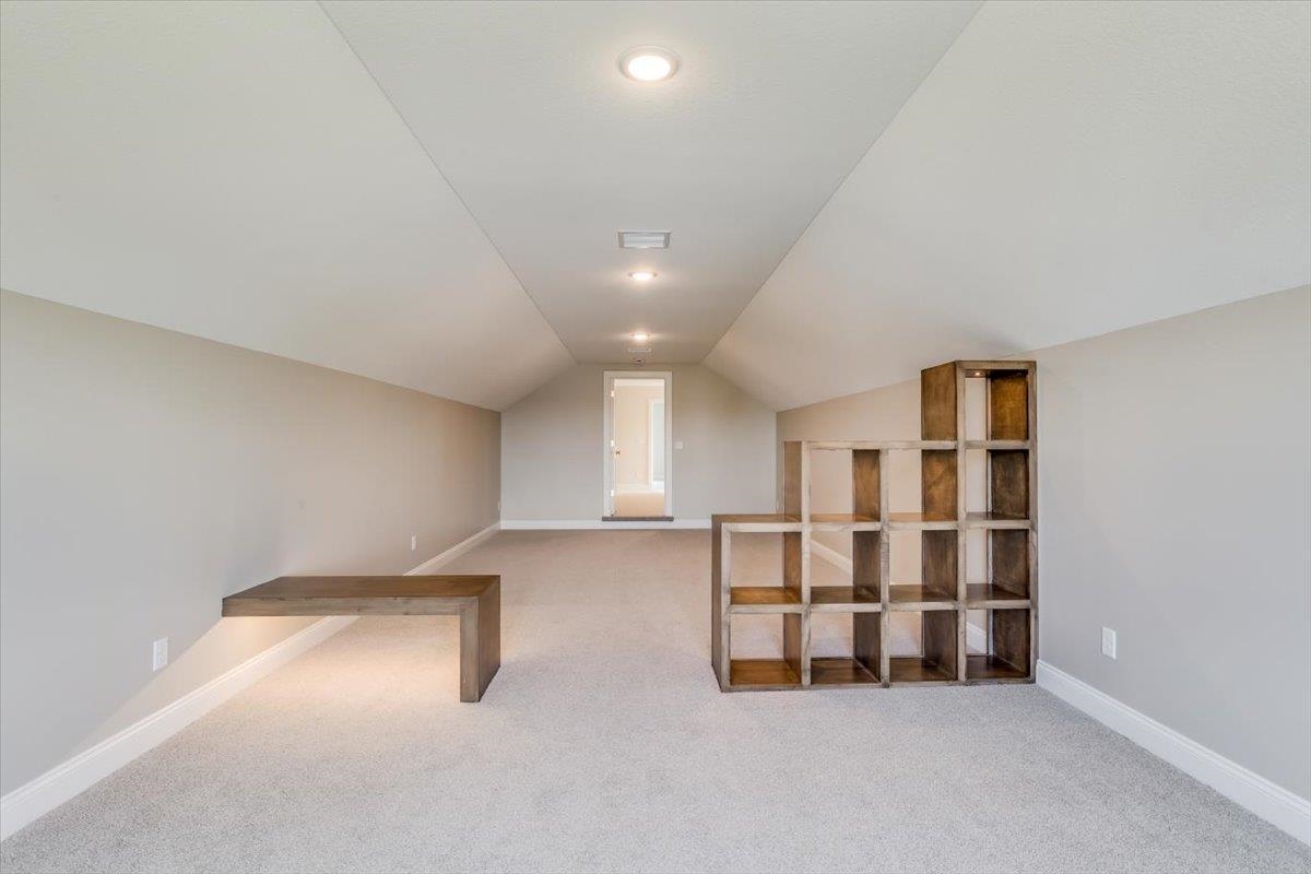 - Description: The stunning “Eden” is a 1 1/2-story home with 5 Bedrooms and 3 ½ baths all designed to offer comfort, luxury, and functionality. As you approach, the charming exterior features classic Craftsman elements and stone along with an inviting covered porch. The oversized, extra-deep garage boasts 8 and 10-foot garage doors, providing ample space for vehicles and storage. Upon entering, the main floor greets you with a spacious and open layout. The living room is the heart of the home, featuring a cozy fireplace surrounded by built-in cabinets, perfect for showcasing your favorite decor and storing essentials. Adjacent to the living room is the gourmet kitchen, complete with a stylish range hood, modern appliances, and ample counter space for culinary adventures. A convenient bench drop zone with cubbies is located near the back family entrance, offering a practical space for coats, shoes, and bags. Also on the main floor, the primary bedroom is a true retreat, featuring a barn door along with a vaulted ceiling adorned with a beam, adding character and charm. The ensuite bathroom is a luxurious haven, complete with a spacious Roman shower, offering a spa-like experience. Adjacent, you'll find a pocket office, an ideal space for remote work or managing household tasks. The main floor laundry has a laundry chute which adds a touch of convenience you’ll love! Upstairs you’ll find 2 more bedrooms and bath, along with a versatile loft area and also a bonus room perfect for a secondary living space or play area however you choose. The finished basement is an entertainer's dream, featuring a wet bar for hosting gatherings and a spacious open area that can be customized to suit your needs, whether it's a home theater, game room, or family lounge. In addition, 2 more bedrooms and bath are in the basement as well. Outdoor living is enhanced by a beautiful concrete patio, providing a low-maintenance space for relaxation and entertaining. This Craftsman-style home combines classic architectural details with modern amenities, upgraded insulation and HVAC system, all creating a perfect blend of elegance and practicality for today's lifestyle. Information deemed reliable but not guaranteed and may change without notice. There is a $250 mailbox fee collected at closing