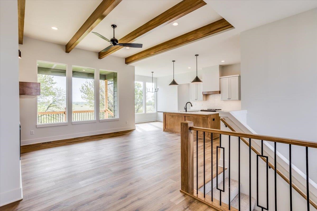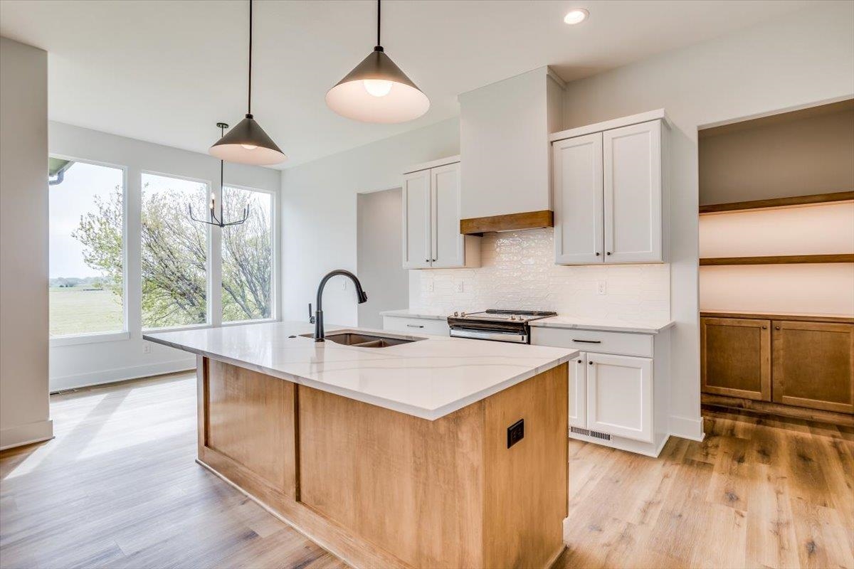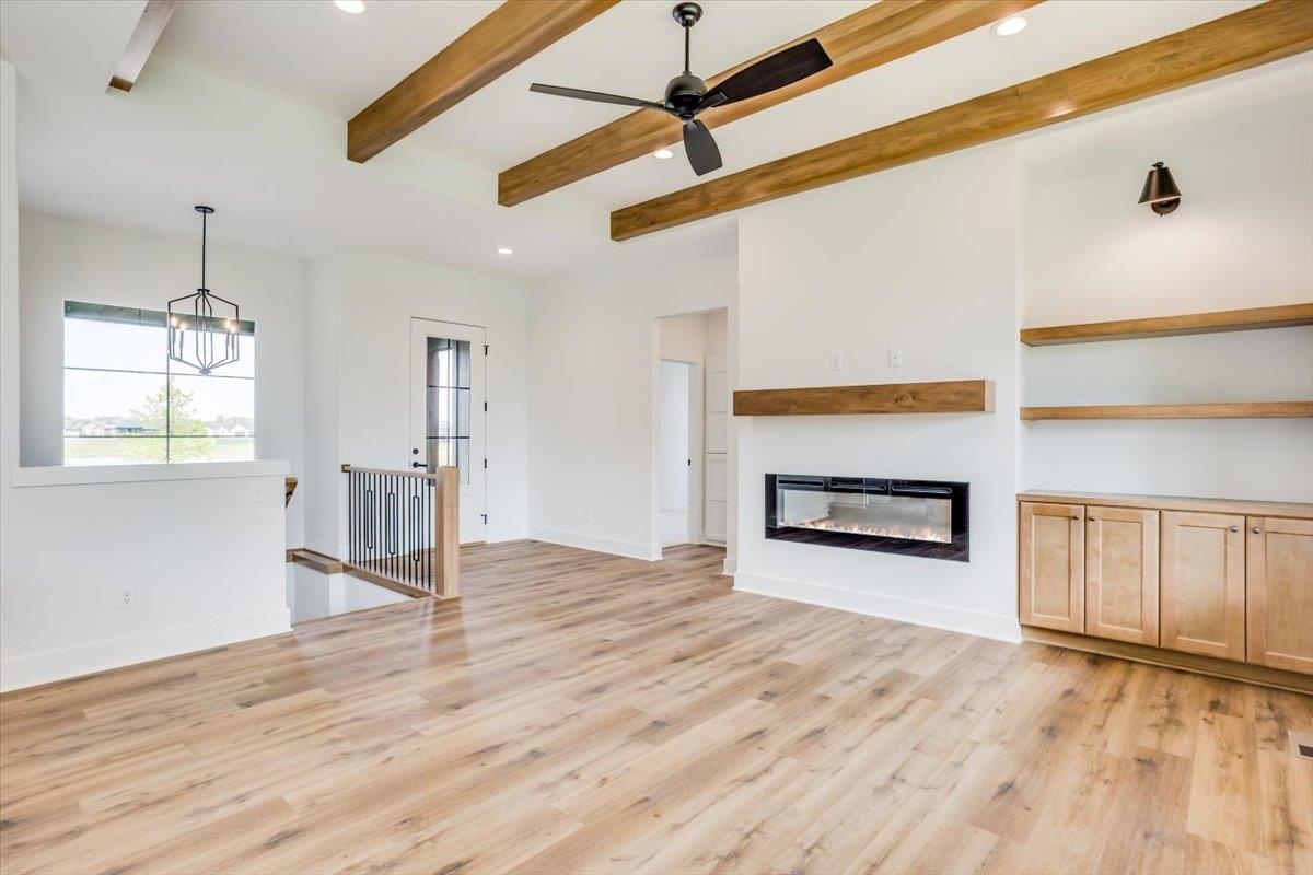 - Description: Introducing the Oakley, a brand-new floor plan that embodies modern elegance and functional design with practicality in every detail! Home backs to a tree row and the front looks out to the lake! This stunning home features quartz countertops throughout, including in the pantry, ensuring a sleek and durable surface for all your culinary needs. The living room boasts an impressive 11-foot ceiling with beams, adding a touch of sophistication and spaciousness. An electric fireplace with a mantel and floating hearth creates a cozy focal point, enhanced by an accent-painted wall. Large 7-foot tall windows in both the living and dining rooms flood the space with natural light, creating a bright and inviting atmosphere. In the kitchen, a custom vented range hood adds both style and practicality, while a convenient drop zone at the garage entry keeps the home organized. The primary suite is a luxurious retreat with 10-foot ceilings, offering an airy and open feel. The primary bathroom features a walk-in tile shower with dual showerheads, providing a spa-like experience. Practical features include 8-foot tall garage doors with included openers, and a 30-foot wide driveway approach for ample parking space. The home also boasts upgraded HVAC for enhanced comfort and efficiency. A sidewalk from the driveway to the side garage door adds convenience for easy access. Outdoor living is well-appointed with a concrete patio along the rear of the home and a 10x14 covered cedar deck, perfect for relaxing or entertaining. The property will have a well, sprinkler system, sod, and landscaped too. BASEMENT IS NOW BEING FINISHED of an additional 2 bedrooms, bath, and family/rec room. taxes shown on vacant lot only. Information deemed reliable but not guaranteed and may change without notice. Room sizes estimated. Specials may not be entirely spread yet on this lot There is a $250 mailbox fee collected at closing.
