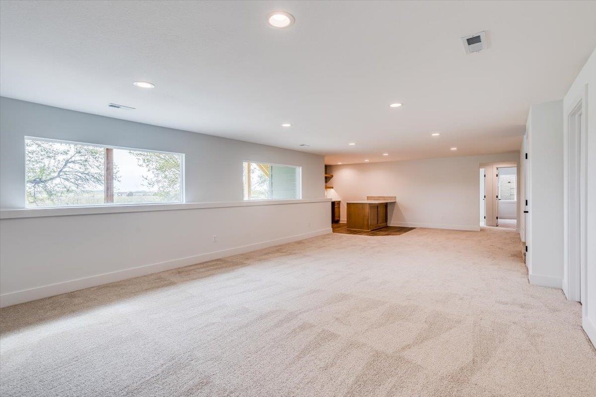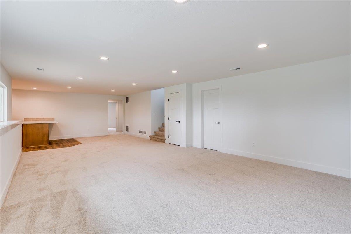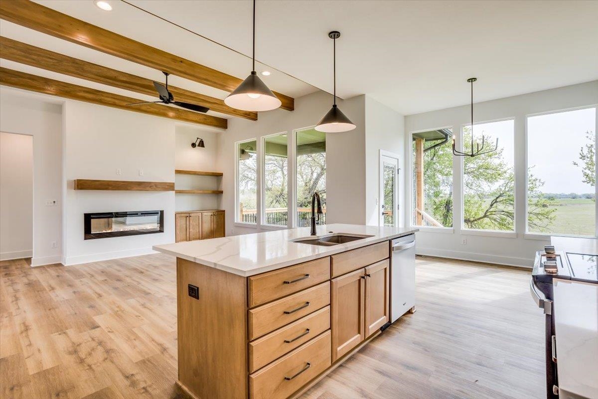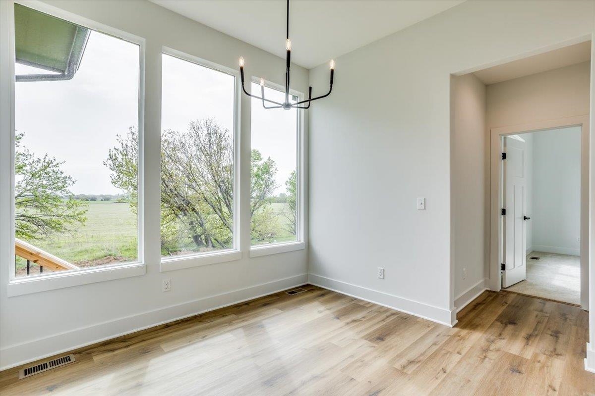 - Description: Introducing the Oakley, a brand-new floor plan that embodies modern elegance and functional design with practicality in every detail! Home backs to a tree row and the front looks out to the lake! This stunning home features quartz countertops throughout, including in the pantry, ensuring a sleek and durable surface for all your culinary needs. The living room boasts an impressive 11-foot ceiling with beams, adding a touch of sophistication and spaciousness. An electric fireplace with a mantel and floating hearth creates a cozy focal point, enhanced by an accent-painted wall. Large 7-foot tall windows in both the living and dining rooms flood the space with natural light, creating a bright and inviting atmosphere. In the kitchen, a custom vented range hood adds both style and practicality, while a convenient drop zone at the garage entry keeps the home organized. The primary suite is a luxurious retreat with 10-foot ceilings, offering an airy and open feel. The primary bathroom features a walk-in tile shower with dual showerheads, providing a spa-like experience. Practical features include 8-foot tall garage doors with included openers, and a 30-foot wide driveway approach for ample parking space. The home also boasts upgraded HVAC for enhanced comfort and efficiency. A sidewalk from the driveway to the side garage door adds convenience for easy access. Outdoor living is well-appointed with a concrete patio along the rear of the home and a 10x14 covered cedar deck, perfect for relaxing or entertaining. The property will have a well, sprinkler system, sod, and landscaped too. BASEMENT IS NOW BEING FINISHED of an additional 2 bedrooms, bath, and family/rec room. taxes shown on vacant lot only. Information deemed reliable but not guaranteed and may change without notice. Room sizes estimated. Specials may not be entirely spread yet on this lot There is a $250 mailbox fee collected at closing.