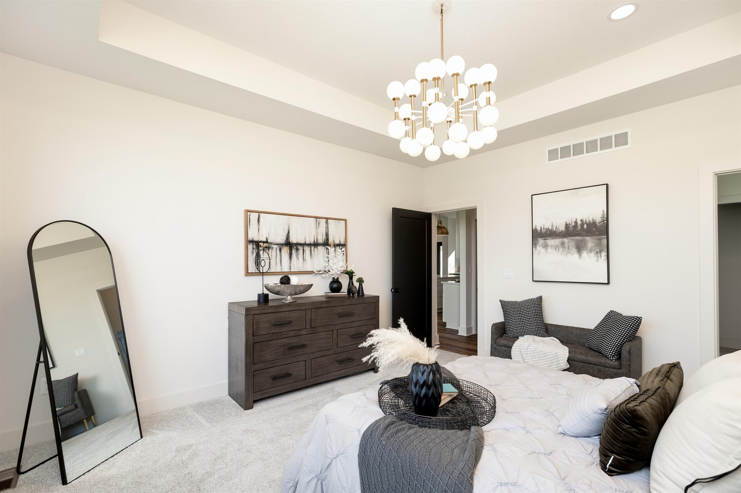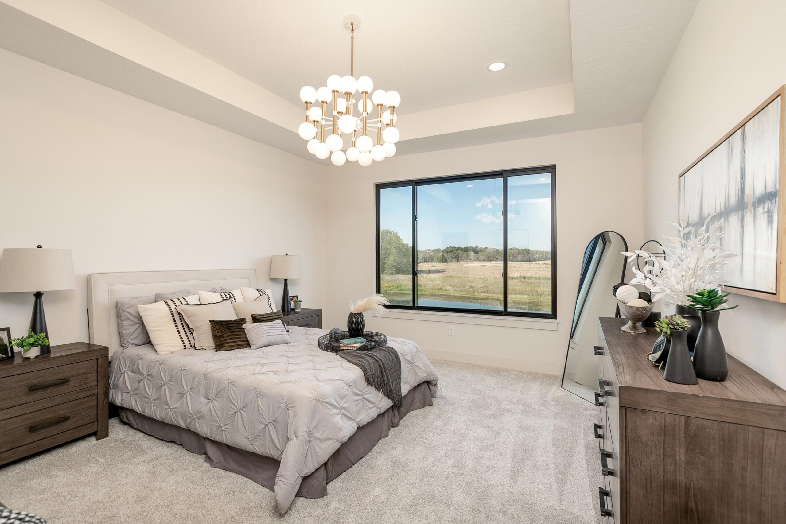 - Description: This is the showstopper “Kevin” plan with stairs to lower level located on the side corner of home with full glass walls! This is a 6 bedroom 3 bath home. You’l love the floor to ceiling windows in the vaulted living room. Kitchen is open and has the much coveted window over the kitchen sink looking to front of home. The pantry with double entries runs behind the length of the kitchen, and has 2 glass pocket doors that let in light but yet hide the space. The laundry room also houses a bench drop zone and connects to the spacious master closet. Stunning soaker tub with beautiful glass light fixture is a spa retreat in the primary bedroom suite, along with the walk in seamless glass shower. Bedrooms 2 and 3 are on the opposite side of the house with a hall bath in between. Basement is completely finished with a family room with entertainment wal and 2nd fireplace, wet bar, bath, and 3 more bedrooms! Large covered deck on back to enjoy those lake views! Information deemed reliable but not guaranteed and may change without notice. Specials may not be entirely spread yet on this lot. There is a $250 mailbox key at closing. Room sizes estimated. Information deemed reliable but not guaranteed and may change without notice. Specials may not be entirely spread on this lot. There is a $250 mailbox fee collected at closing. Room sizes estimated. Seller is licensed real estate agent in Kansas.