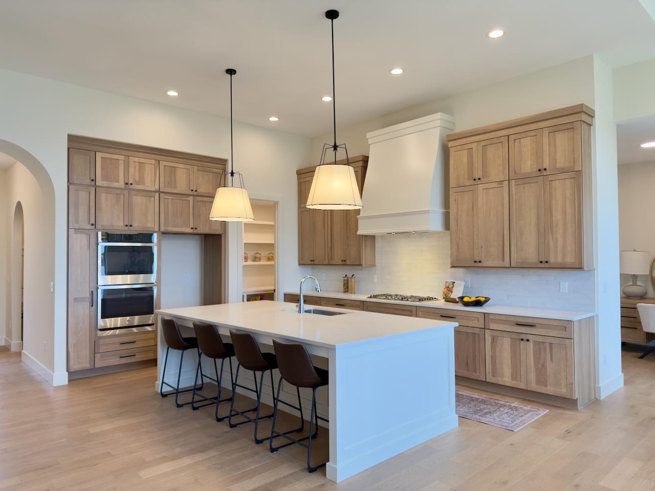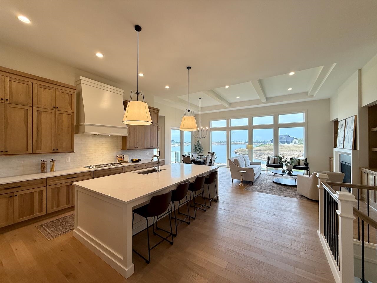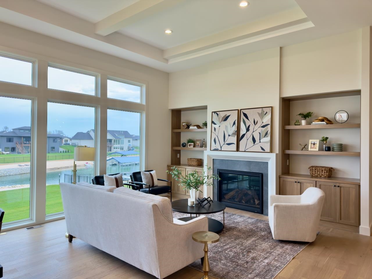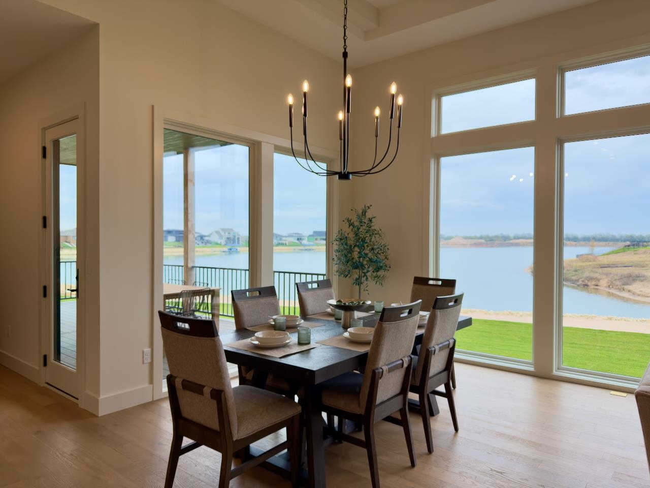 - Description: Welcome to The Linden Plan by Nies Homes—where luxury meets lake life in the exclusive Castaway community. Situated on a premium lakefront lot, this home boasts a timeless elevation with rich brick, wood accents, dormer windows, and an elegant arched entryway. Inside, you're greeted by soaring ceilings, a grand living room with floor-to-ceiling windows showcasing breathtaking water views, and a stunning fireplace flanked by custom built-ins. The gourmet kitchen features a 10’ island, gas range, double ovens, walk-in pantry, and endless cabinetry. The luxurious Master Suite includes a spacious bedroom, dual vanities, custom tile shower with dual heads, and a private dressing room. Main floor also offers two additional bedrooms with walk-in closets accompanied by a stylish hall bath, a private office, a convenient half bath for guests, and access to the covered deck. The walk-out basement impresses with 9' ceilings, expansive living space, game room with wet bar, two more large bedrooms, and two baths—one perfectly placed for easy access from your private beach. Step outside to your covered patio and enjoy direct access to the 140-acre spring-fed boating lake. Castaway offers unmatched amenities including a lakeside clubhouse, pool, playground, basketball court, and public beach areas. Live every day like a vacation—right here at Castaway. Some information may be estimated and is not guaranteed. Please verify schools with USD 266.