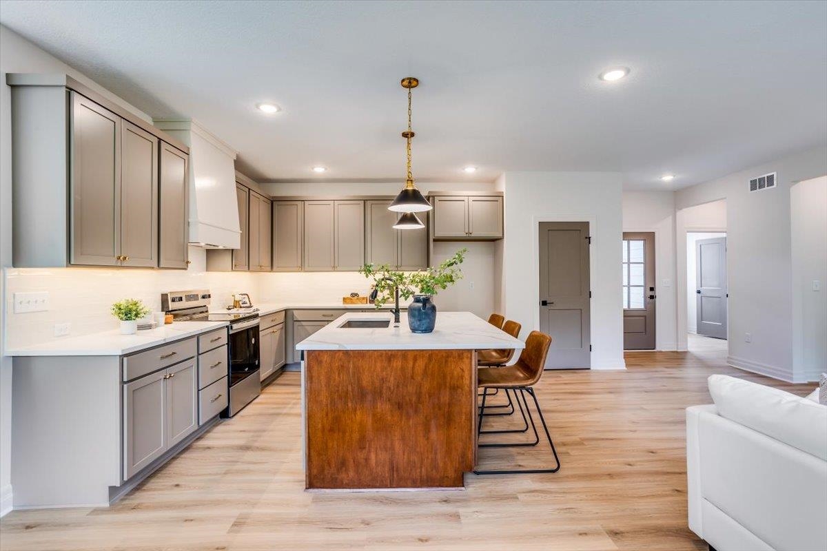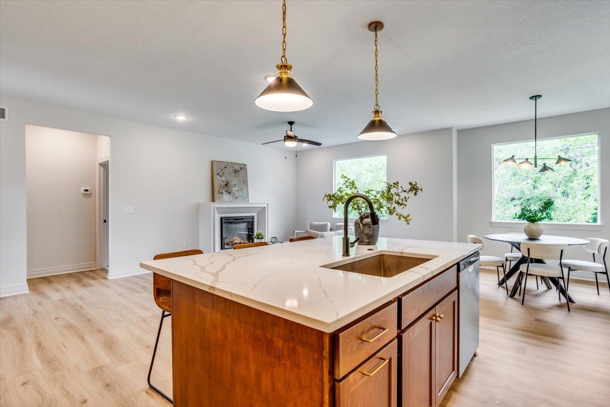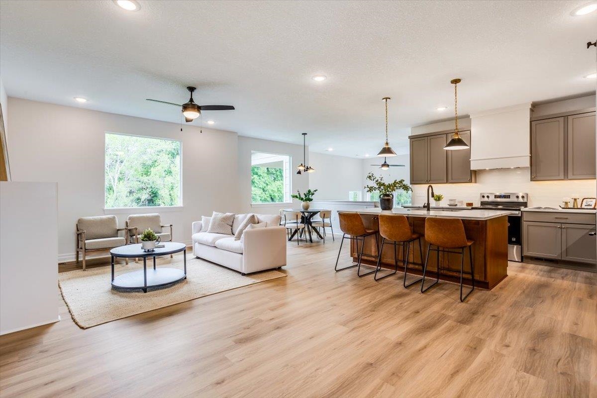- Description: Model Home Now Available for Purchase. This "Pick of Parade" award winning gorgeous flex plan home is ready of occupancy. The home will handle multi family living. The open great room design offers seperate master suite with laundry, LVP flooring in main living area, Decorative Electric F/P, dining and kitchen loaded with cabinets ample work space and walk in pantry. The flex space has a sun room, bath and 2nd bedroom, perfect for mother in law suite or adult chid living. It also walks out to a treed covered patio perfect for outdoor living. The lower level completes this beautiful home with a large viewout rec room, 2 bedrooms and bath. The home has a 3 car garage and is fully landscaped at this incredible price located on a cul de sac lot.