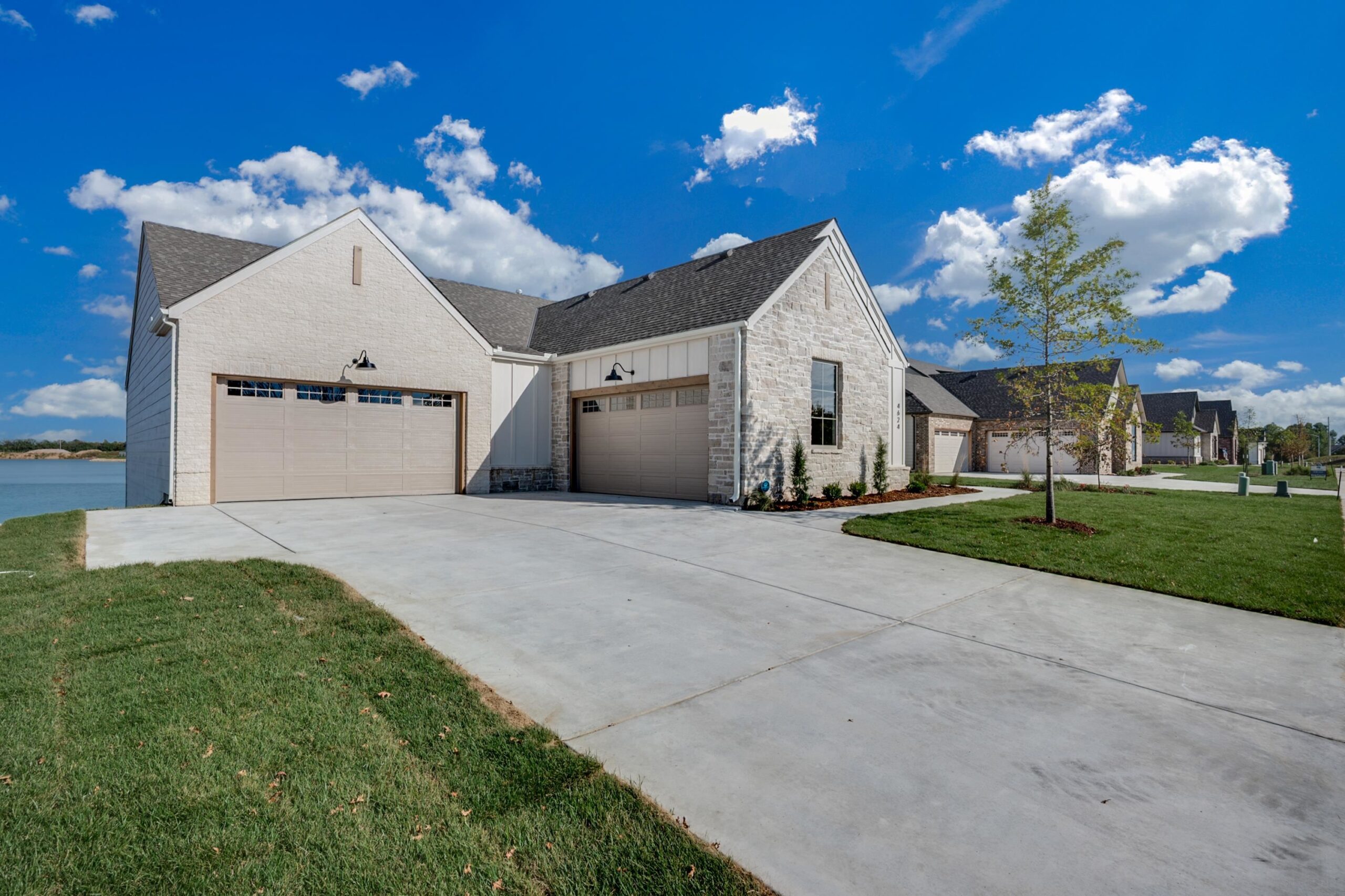 - Description: Welcome to lakeside luxury at its finest. Situated on a breathtaking lakefront lot in the highly coveted Castaway community, The Modesto Plan by Sharp Homes combines timeless elegance from the homes of yesterday, with the modern luxury features and finishes you expect in a home today. From the moment you arrive, the classic elevation accented with natural stone makes a stunning first impression. Step through the arched entryway and into a warm and inviting living room where vaulted beamed ceilings, a gas fireplace, and floor-to-ceiling windows frame show-stopping views of the sparkling lake. Thoughtfully designed arched niches with custom cabinets and floating shelves add a touch of elegance and character. The seamless indoor-outdoor living design includes a large covered deck and an expansive lanai with a second gas fireplace and overhead garage door—perfect for unforgettable gatherings and legendary garage parties. In the kitchen, no detail has been overlooked. Enjoy a spacious island, gas range, granite countertops, custom wine bar, butler’s pantry with bonus workspace, and a dedicated Costco closet for optimal storage. The primary suite is a private sanctuary featuring vaulted, beamed ceilings, dual vanities, a freestanding soaker tub nestled in a graceful arched niche, a fully tiled shower, and a massive walk-in closet complete with a granite-topped dresser and direct access to the laundry room. A discrete pocket office with built-in desk is tucked away just off the main living space—ideal for working from home. Additional main floor bedrooms each include walk-in closets; one offers a private ensuite, while the other enjoys access to a full hall bath. The fully finished lower-level walks out at grade to your private beach area and boasts a sprawling family room with panoramic lake views, an elegant wet bar, and direct access to a full bath from the back of the home—perfect for a day spent on the beach or out on the boat. Two additional bedrooms downstairs each offer cavernous walk-in closets and private bath access. The basement also includes two large storage areas, with one ideal for a future home gym. All of this, located in Castaway, Wichita’s premier lakeside community featuring a 135-acre spring-fed surf lake, lakefront clubhouse and pool with neighborhood beach area, playground, basketball court, and some of the most incredible views in the city! Start calling Castaway home in the incredible Modesto Plan by Sharp Homes. Some information may be estimated and is not guaranteed. Pricing is subject to change without notice. Please verify schools with USD 266.