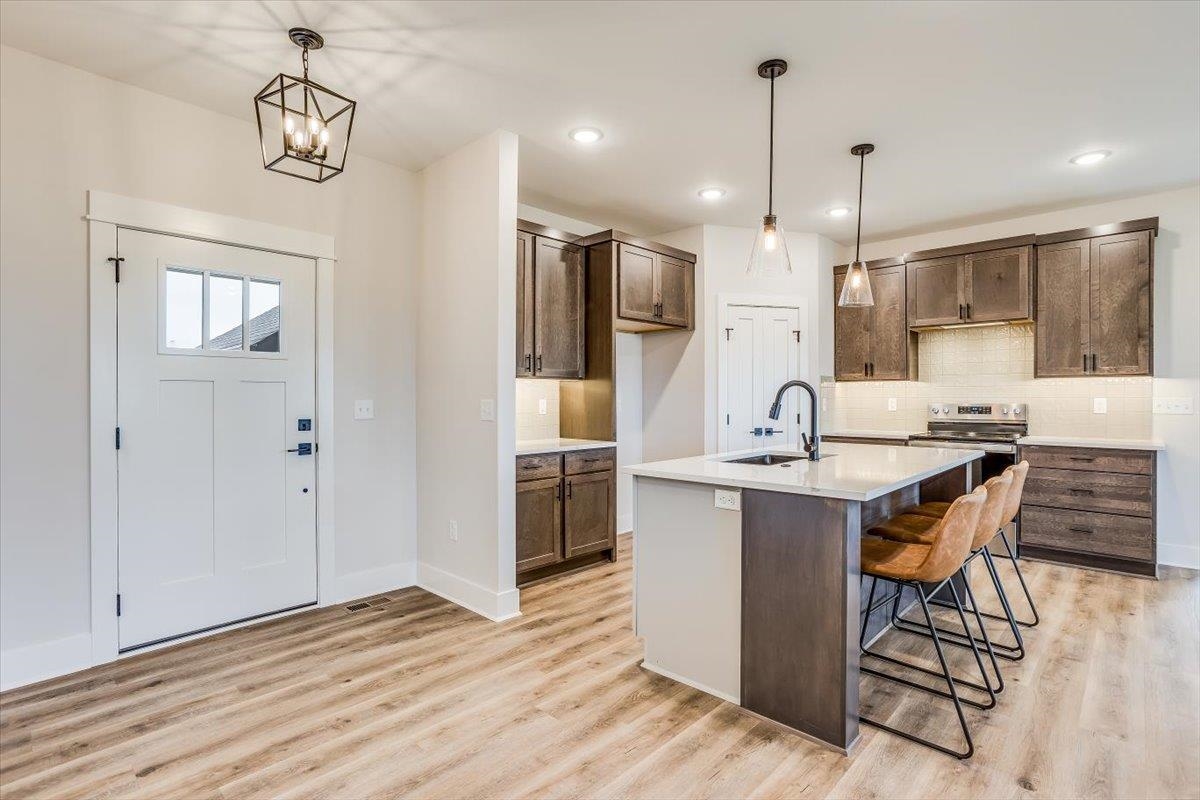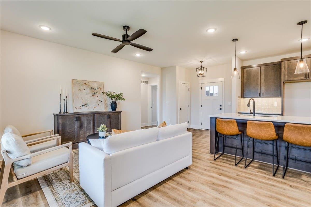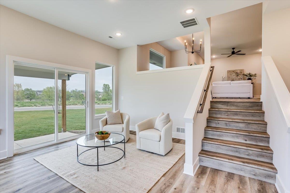 - Description: MODEL HOME NOW AVAILABLE! This Aubree Flex Plan by JK Blue Living offers a total of 4 bedrooms, 3 baths. The main floor includes great room/dining/kitchen with LVP flooring that overlooks the flex area that is both a sun room as well as a hearth room with a decorative electric fireplace with LVP flooring as well as access to covered patio for outdoor living. Because it is a flex room there are no steps from the garage for easy access. The 2nd bedroom and bath are on this level as well. The exclusive large master suite offers double vanites, tiled shower, walk in closet and connected laundry for cenvenience! The lower level has finished viewout rec room, bath and the 2 additional bedrooms. The home is fully landscaped and has sprinkler system as well as located on a large cul de sac lot!