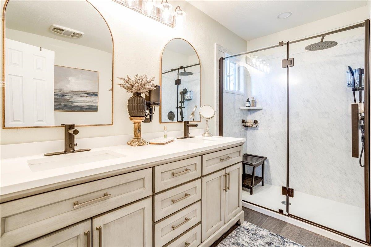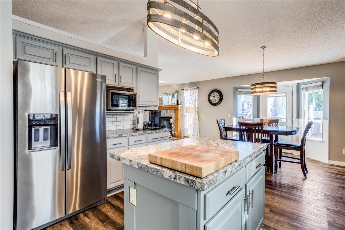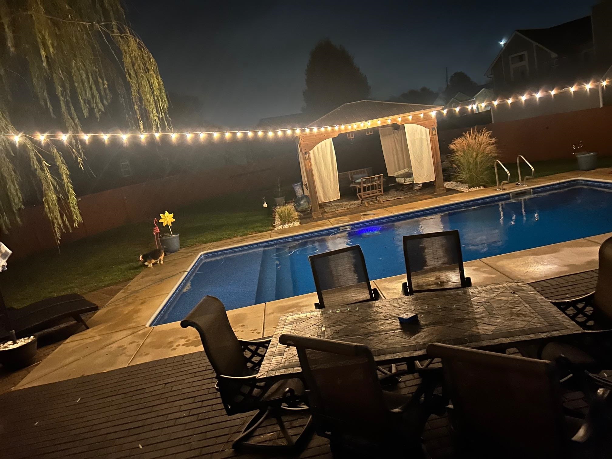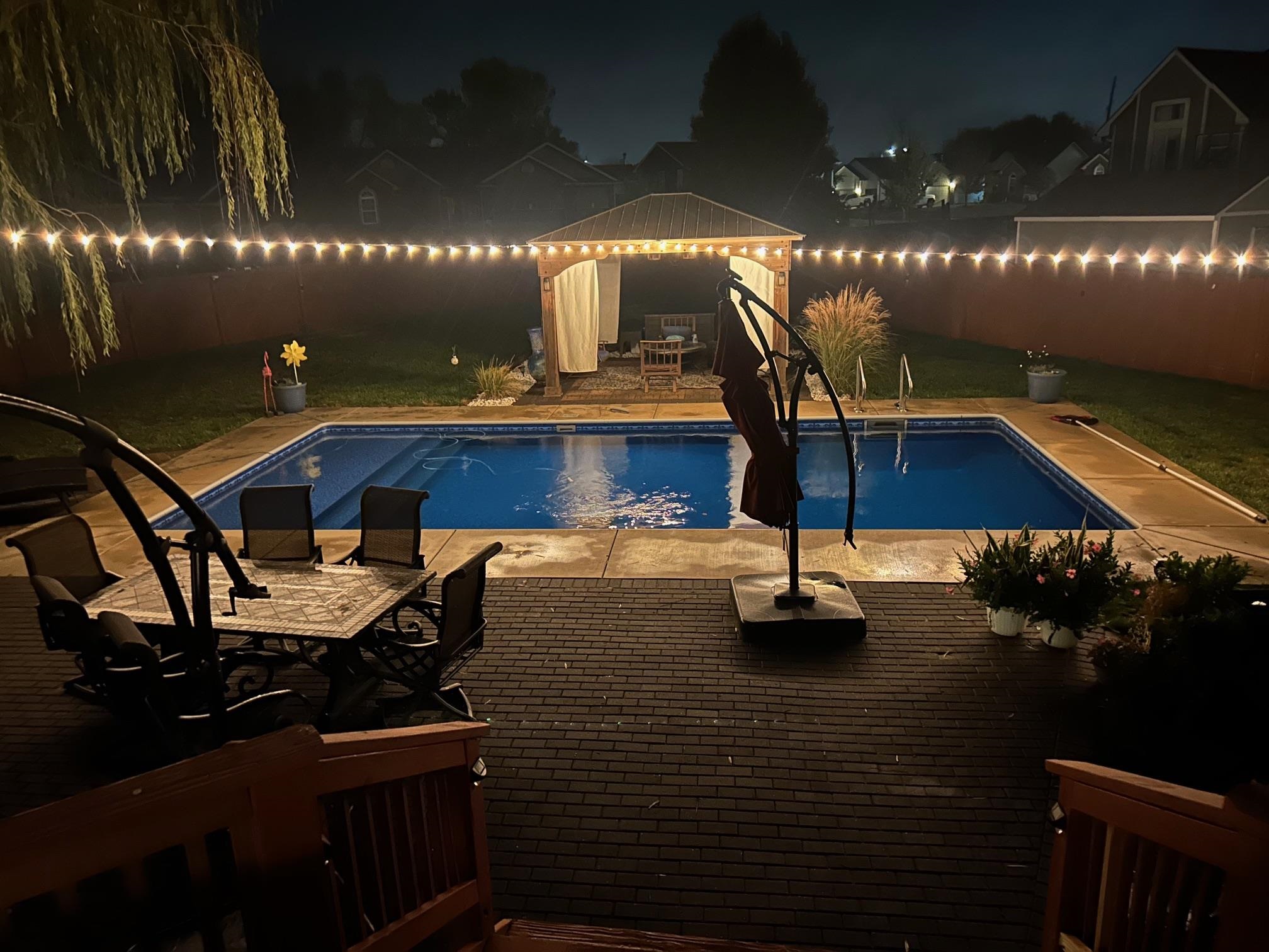 - Description: A perfect home fo anyone that enjoys entertaining and family. This split 3 bedroom (on the main floor), 3 bath, ranch style home with a 3 car garage is an open design with U-shaped kitchen, ample cabinets, smart range, with decorative tile backsplash, large island, open to dining, great room with gas fireplace, open rec room/game room, and the additional 2 bedrooms giving a total of 5 bedrooms. The home has been updated with new features throughout the home. The back yard is like a dream featuring a large deck, inground 16 x 32 2 year old pool with a 5' sun bathing feature, large tv attached, large coveed gazeebo, storage shed as well as a privacy fence located on a large corner cul de sac lot. The seller is willing to leave the pool table and shuffleboard table with the home.
