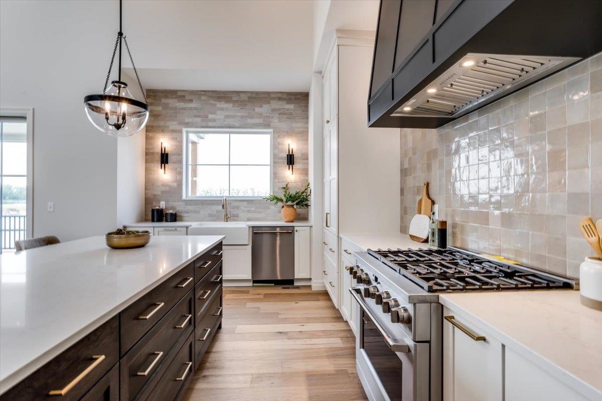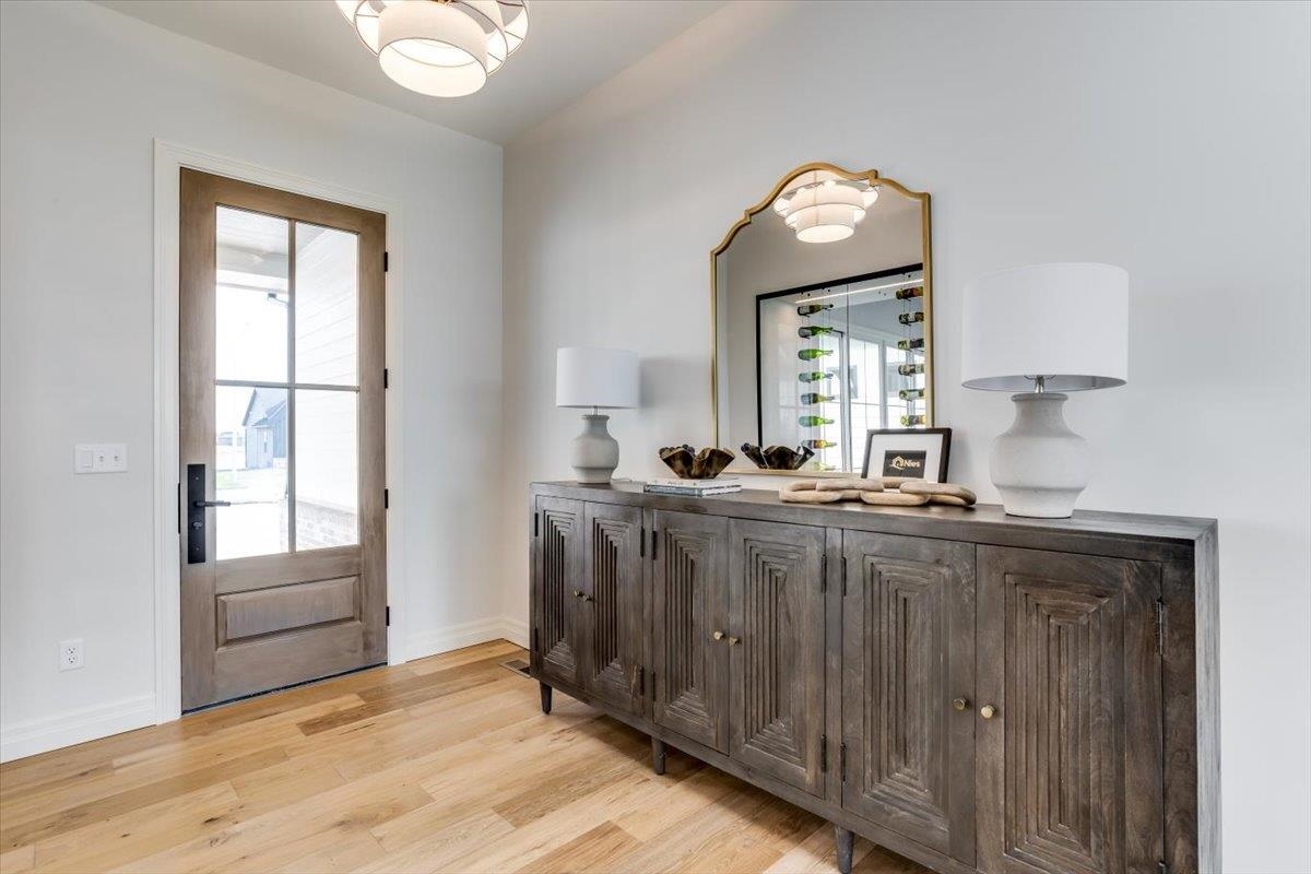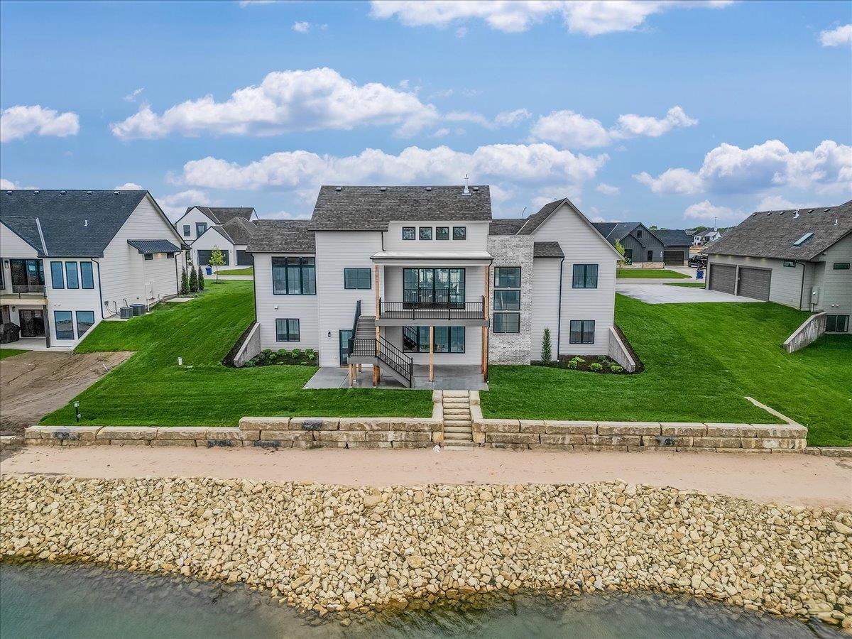 - Description: Introducing the All-New Willow Plan by Nies Homes – Where Sophisticated Design Meets Lakeside Living. Step into a lifestyle of luxury with the Willow Plan by Nies Homes, perfectly nestled in a quiet cul-de-sac on a prime lakefront lot in Castaway—Wichita’s premier spring-fed surf lake community. This architectural masterpiece is designed for those who appreciate stunning views, thoughtful details, and effortless indoor-outdoor living. From the moment you arrive, the Willow Plan captivates. A charming front courtyard—accessible from the dining room—welcomes you with a private seating area, setting the tone for the elegant experience inside. The grand entryway opens to soaring 16’ ceilings and breathtaking two-story windows that frame panoramic lake views. A striking glass wine rack artfully separates the dining room, creating a bold and refined focal point. The main living area is both inviting and impressive, with a gas fireplace, towering ceilings, and walk-out access to the expansive covered deck—the perfect setting for entertaining or simply soaking in the tranquil lakefront scenery. The chef-inspired kitchen is beautifully appointed with a large island, premium Café appliances, and a spacious walk-in pantry. Retreat to the luxurious Master Suite featuring a spa-like bath with a tile shower, soaking tub, and a generouswalk-in closet with direct access to the laundry room for added convenience. Two additional main floor bedrooms share a stylish Jack & Jill bath, offering comfort and privacy for family or guests. The walkout lower level expands your living space with a spacious family room, wet bar, and two more bedrooms—each with walk-in closets—and a full bath with direct access to the backyard for easy beach-day cleanups. A large storage area offers flexibility for a future home theater or game room. Outside, enjoy your own lakeside oasis with a ground-level patio with custom limestone steps down to the private beach area overlooking Castaway’s pristine spring-fed waters. The Willow Plan is more than a home—it’s a destination. Some information may be estimated and is not guaranteed. Pricing is subject to change without notice. Please verify schools with USD 266.