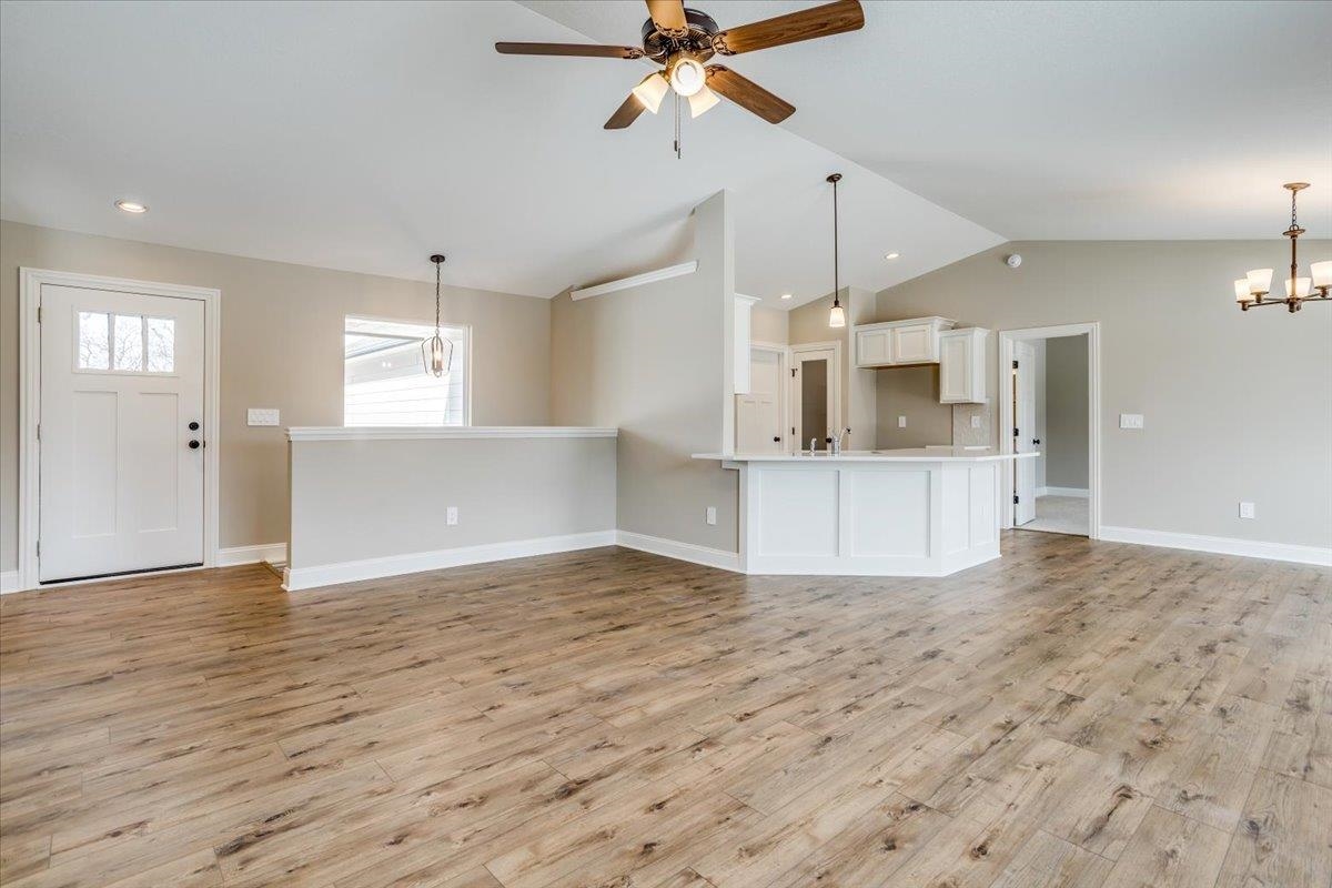 - Description: Klausmeyer Construction presents the Delainey floor plan featuring a total of 4 bedrooms, 3 baths and 3 car garge with area for workshop or larger trucks, trailers or boats, The main floor includes LVP flooring great room, dining, kitchen, entry, 3 bedrooms, 2 baths, main floor laundry. The lower level includes rec room, bath and 4th bedroom. The home is located on a lot with an east back yard to enjoy the deck for evening use. This a split bedroom design and a great tucked in Kitchen with wrap around bar.