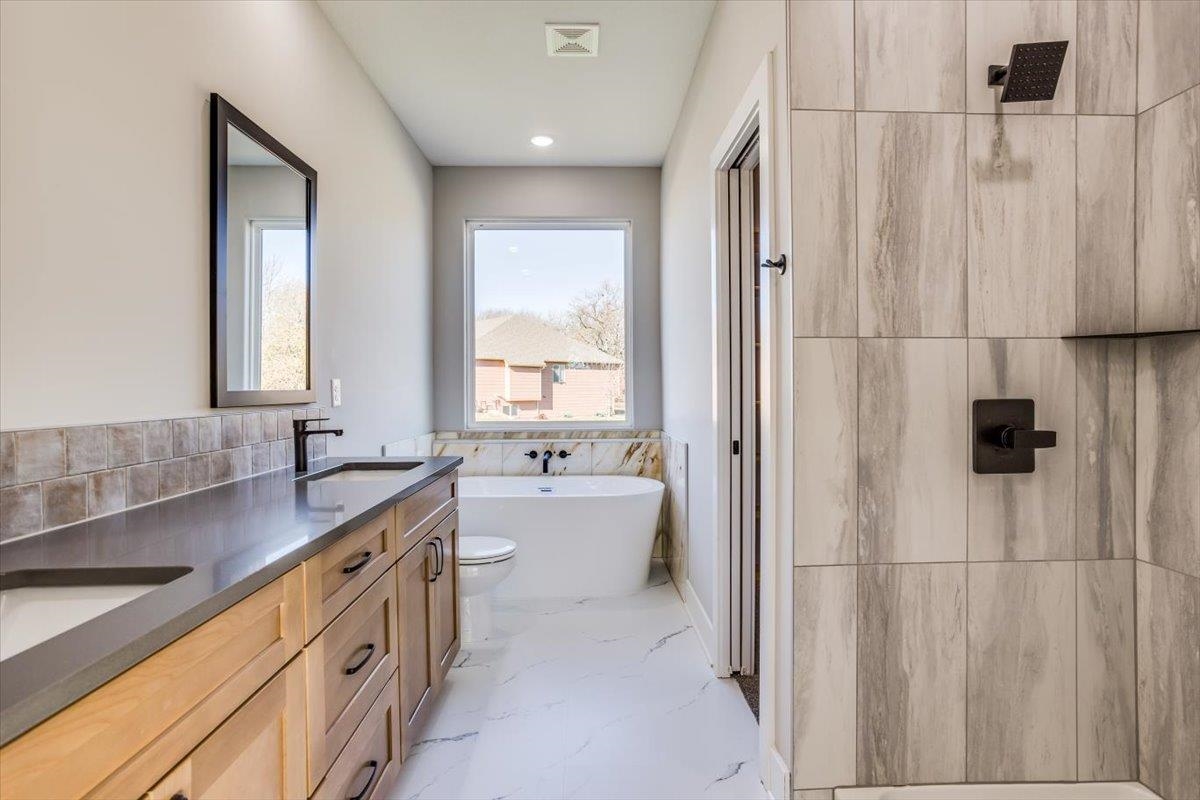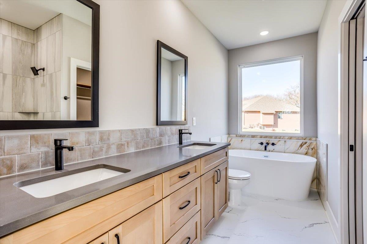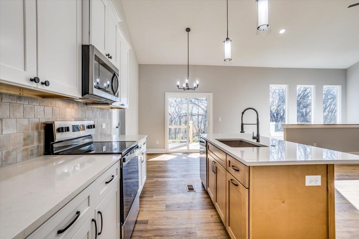 - Description: This 5 bedroom 3 bath home offers great room with electric fireplace, lvp kitchen, dining and great room, walk in pantry covered composite deck with east backyard on a tree lined lot. The master suite has free standing bath tub, sep shower, double vanity and walk in closet. The lower level completes the home with an additional 3 bedroom, office that could be used as a 6th bedroom, bath, rec room with wet bar. There is a 3 car garage