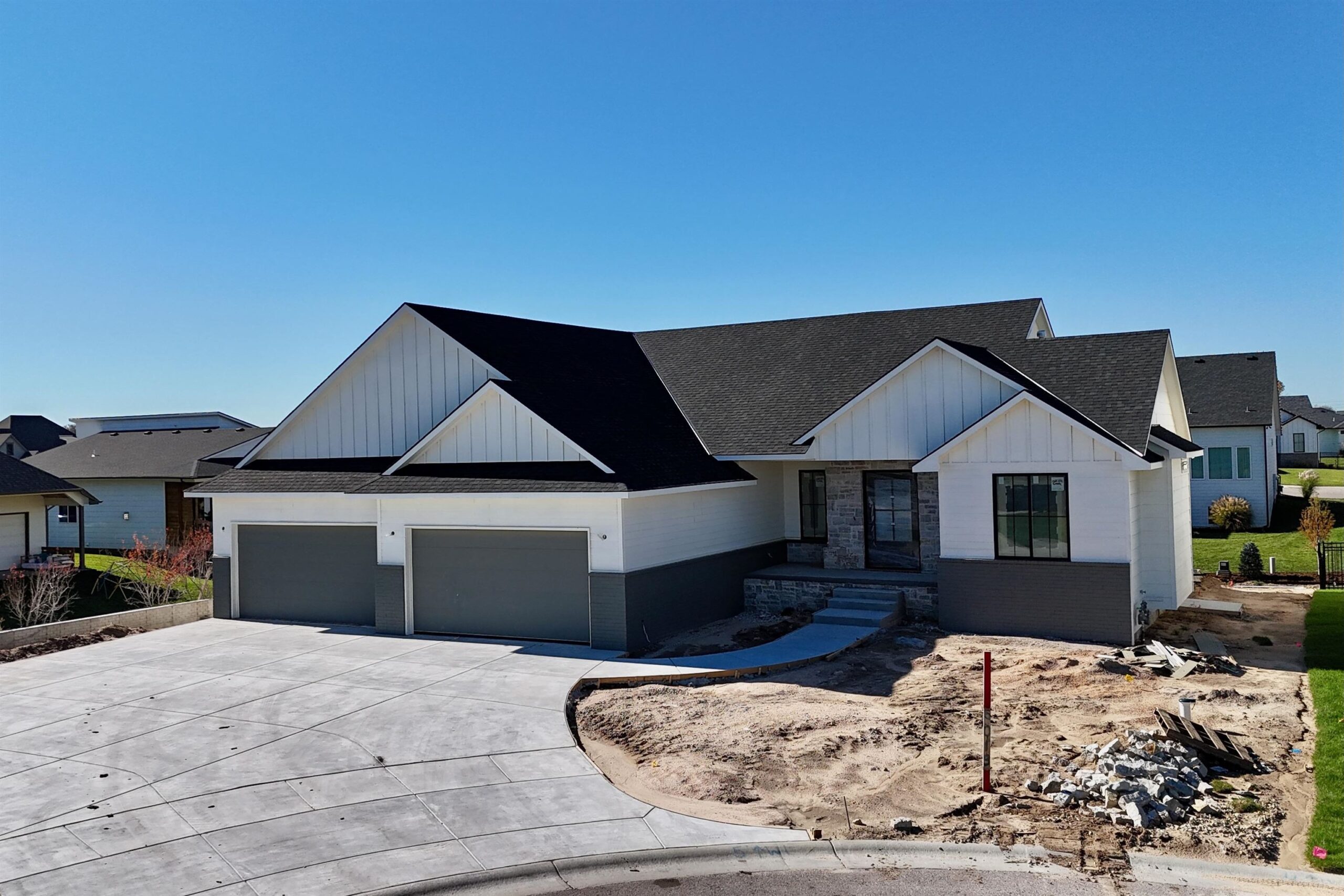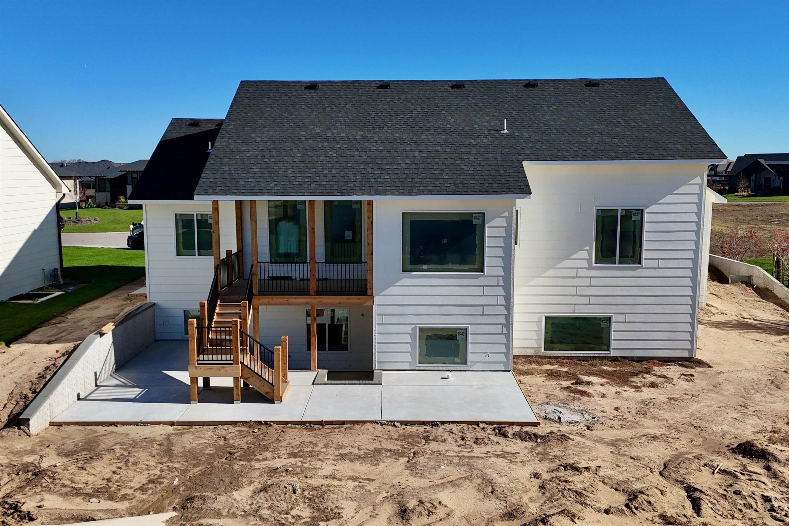 - Description: Discover your dream home with this stunning new build by Buckert Contracting, INC., located on one of the last available lots in the coveted Sandcrest community. This expansive residence features five spacious bedrooms and three and a half bathrooms, making it perfect for families of any size. Step inside to be greeted by soaring 12-foot flat ceilings in the primary living area, complemented by large picture windows that flood the space with natural light. The master bedroom offers a serene retreat with its private bath, generous walk-in closet, and convenient access to the laundry room. Enjoy the ease of a half bath on the main floor, perfect for guests. The fully finished walk-out lower level is an entertainer's dream, complete with a wet bar and a massive pantry that accommodates a full-size fridge, plus two additional bedrooms for family or guests. Relax and unwind on the covered deck, or take a short stroll to one of the neighborhood pools and private beach areas. Nestled in a peaceful cul-de-sac, this home is the perfect blend of luxury, comfort, and convenience. Don't miss your chance to make this exquisite property your own! This home is currently under construction and pricing is subject to change without notice. Some information may be estimated and is not guaranteed. Please verify schools with USD 266.
