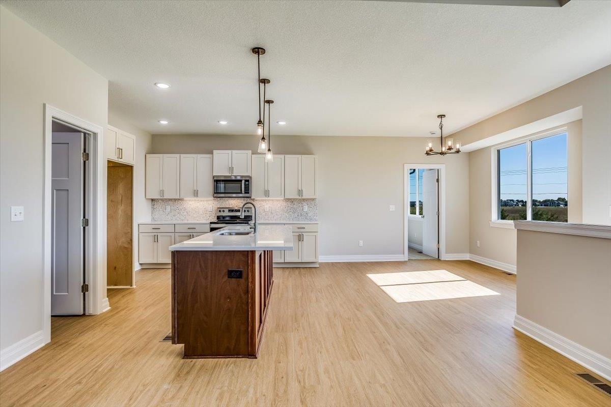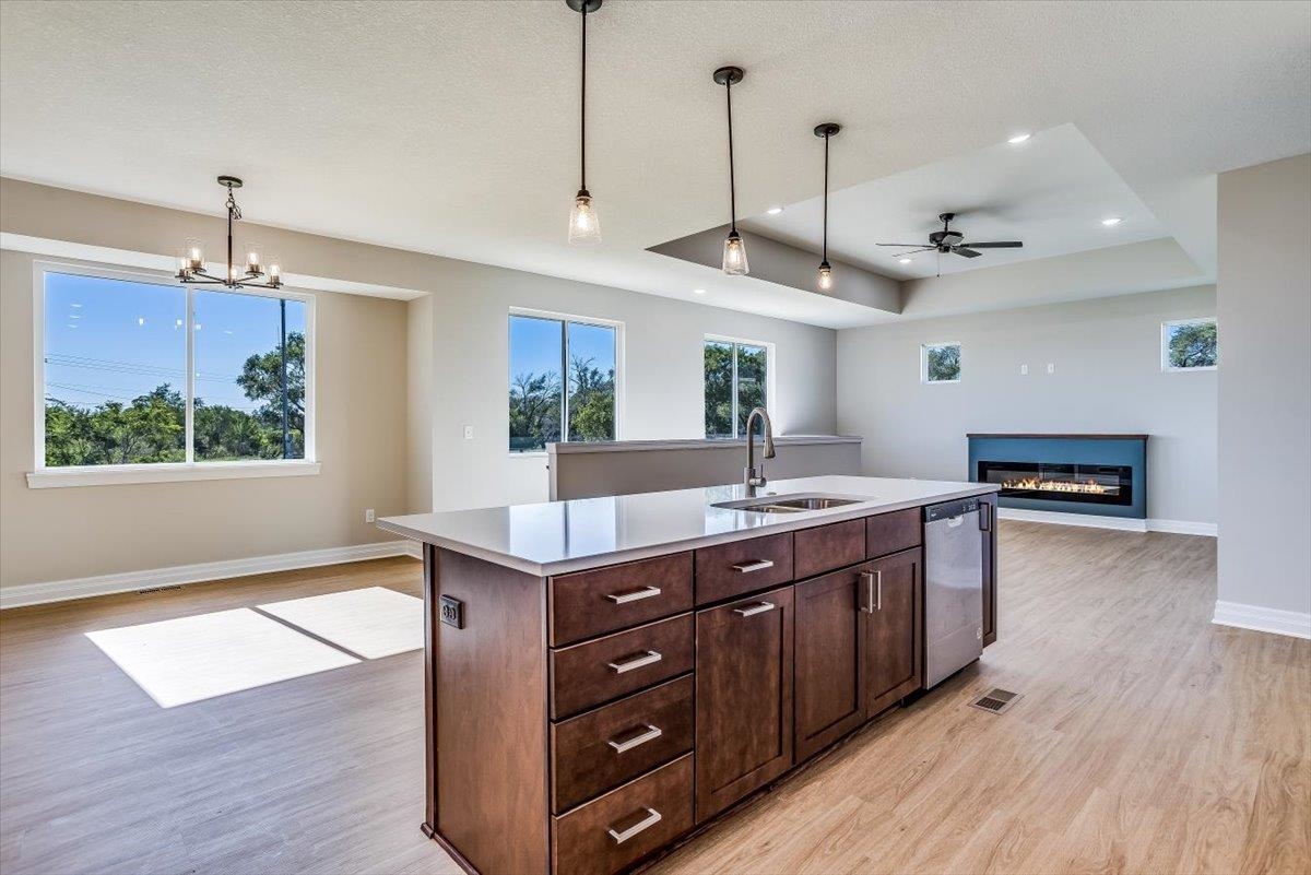- Description: The Builder is currently offering a temporary price reduction on this home for the next 60 days! (Listed price reflects promotional price reduction). RJ Castle Custom Homes brings luxury and unparalleled value together with this brand new plan! The main floor features an open, livable layout, and large windows across the back of the home offering an abundance of natural light. The main floor features include a spacious living room with trey ceilings and electric fireplace, a well appointed kitchen with quartz countertops and walk-in pantry, a lavish owner’s suit with private bath equipped with a full tile shower and a walk-in closet, separate laundry room with direct access the the master closet, and an additional main floor bedroom accompanied by a hall bath. The fully finished lower level includes a generously sized family, walk-up wet bar with quartz counter tops, 2 additional bedrooms, a full bath, and plenty of room for storage! Come see this incredible quick-possession home and start building new memories in beautiful Watermarke. Some information may be estimated, and is not guaranteed, please verify schools with USD262.
