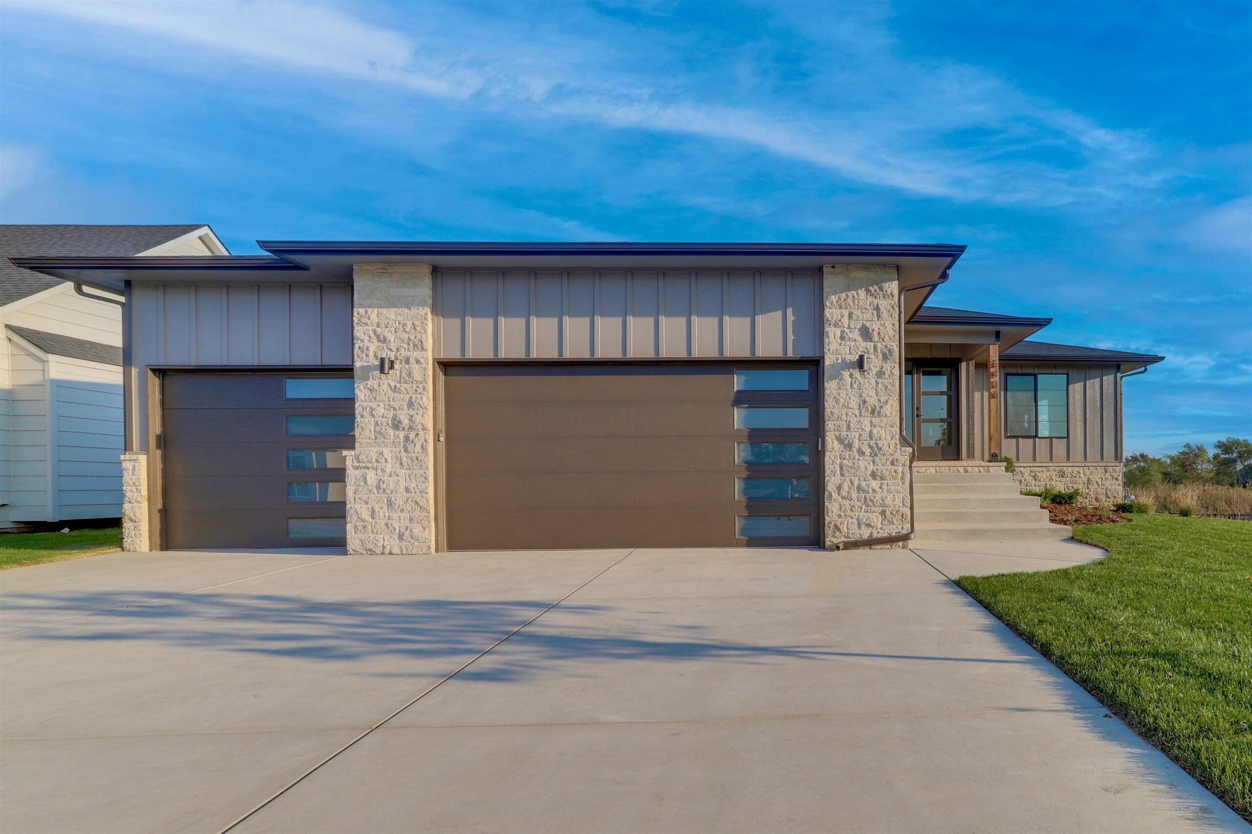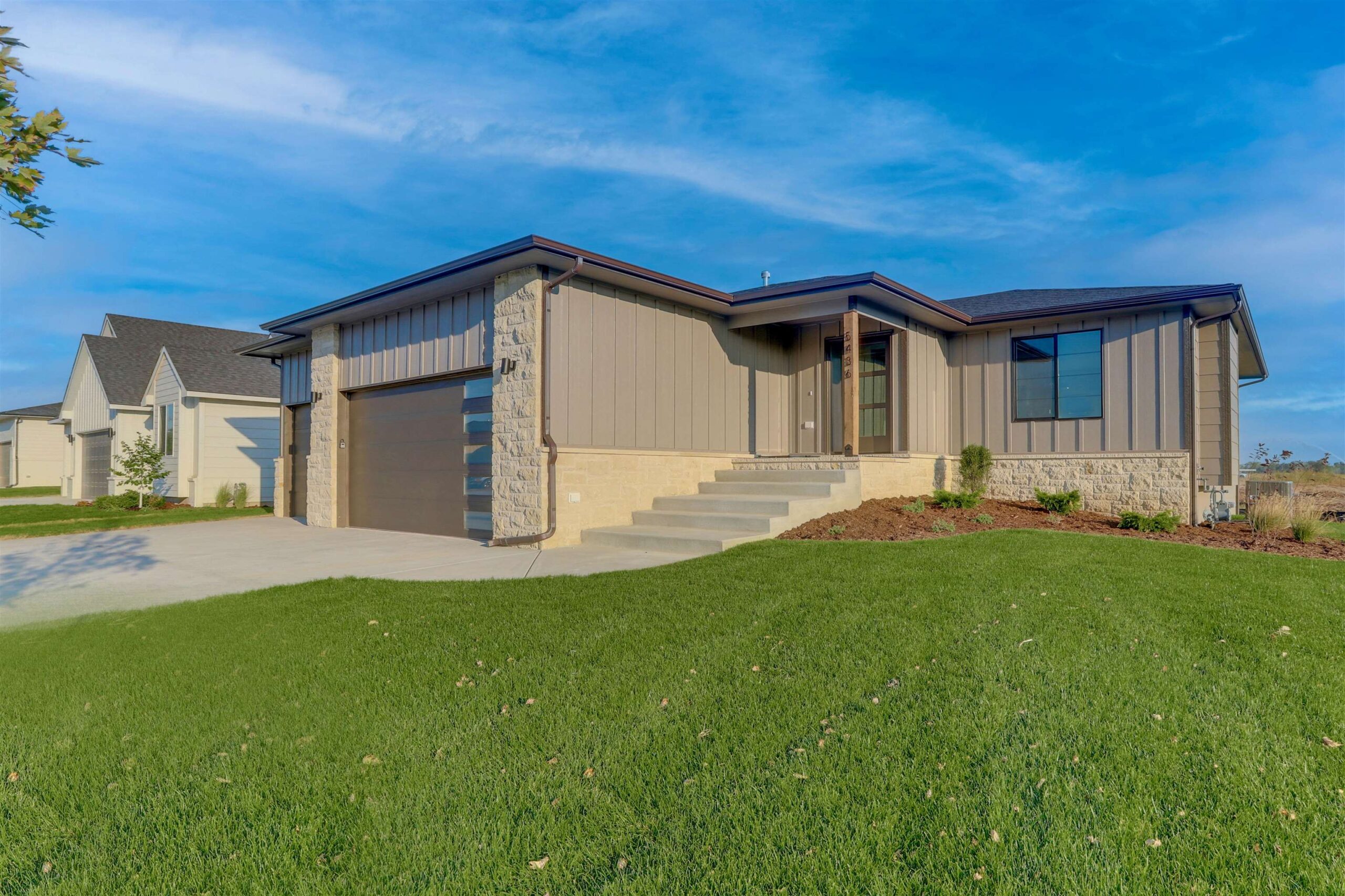 - Description: This distinctive new design TW Custom Homes combines the character and charm you would see in the classic homes of yesterday with the modern luxury features and finishes you expect to see today. This captivating new plan, with its unique features and striking finishes, is an absolute must see! Upon entering the home, the foyer with entry closet leads you into the spacious living room with electric fireplace. The well-appointed kitchen includes quartz countertops and a walk-in pantry as well as a separate dining space. The lavish owner’s suite includes a spacious bedroom, a private bath with quartz countertops and a tile shower, and two separate walk-in closets!The main floor features also include two additional bedrooms, a full hall bath, and laundry room conveniently located by the garage entrance. The stairs down to the lower-level feature spectacular 2 story windows and a walk-out door from the landing takes you out to the back patio. The fully finished lower level includes an expansive family room with walk-up wet bar, as well as two additional bedrooms, a full hall bath, and plenty of room for storage! Come see this incredible model home and everything Watermarke has to offer, today!Some information may be estimated, and is not guaranteed, please verify schools with USD262.