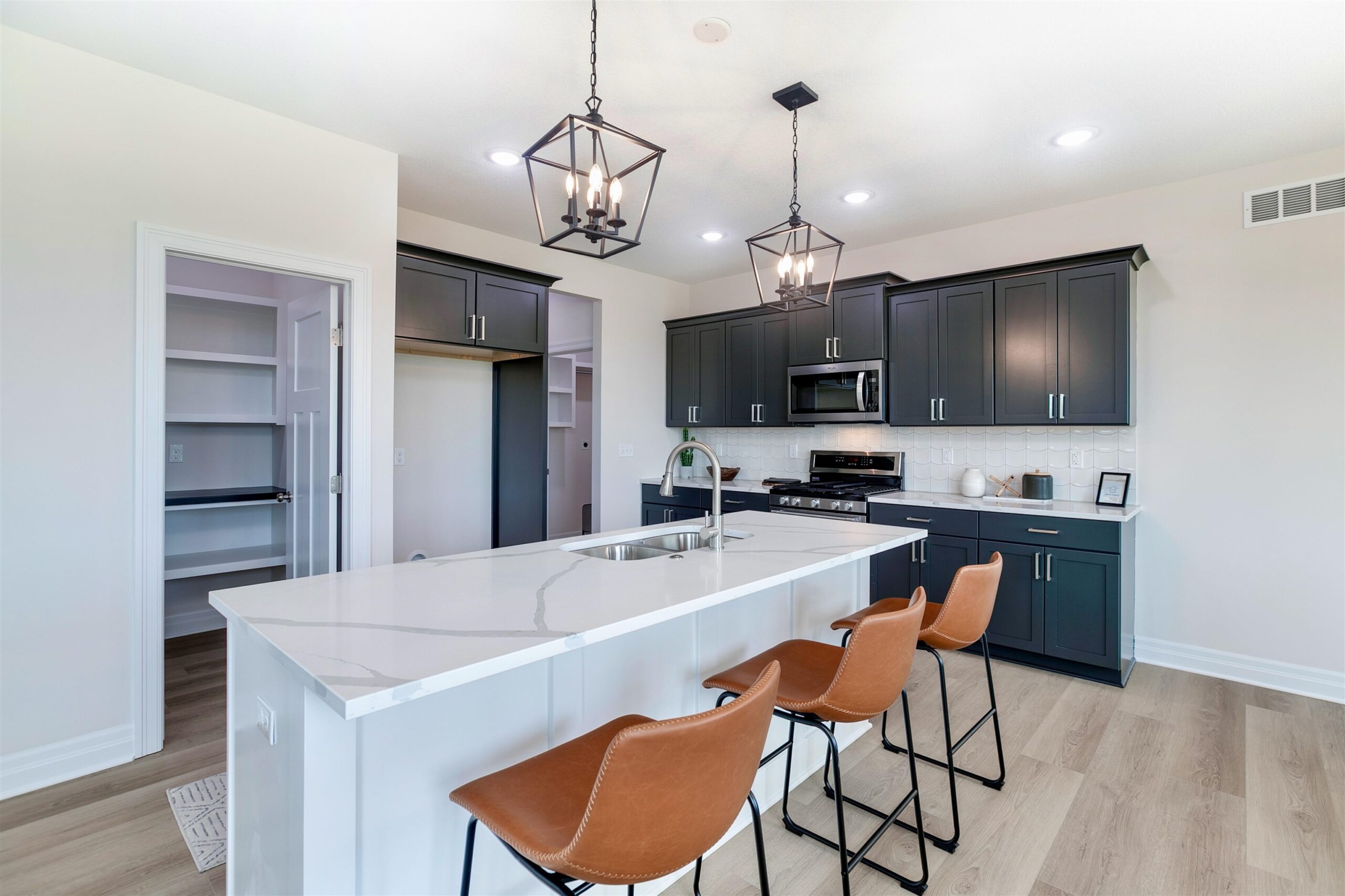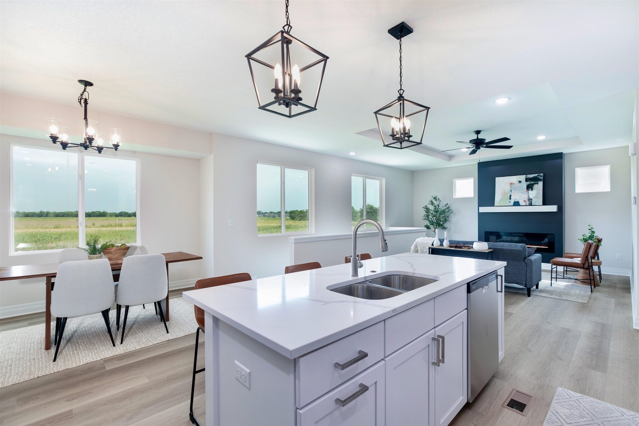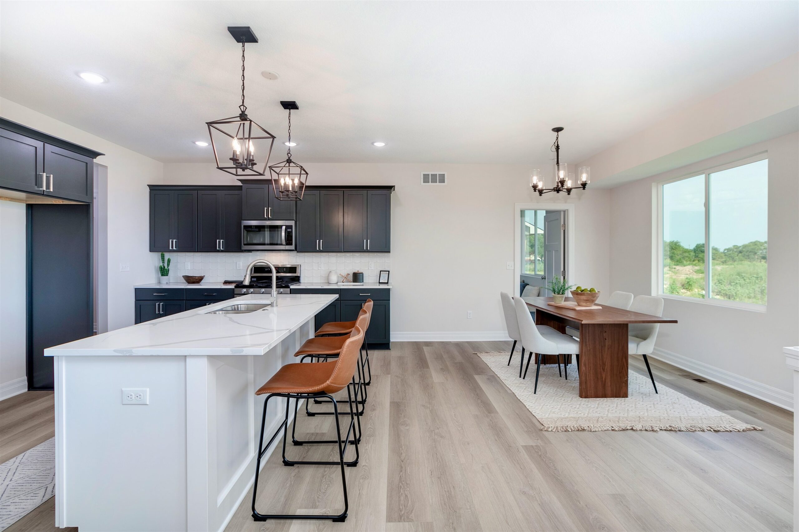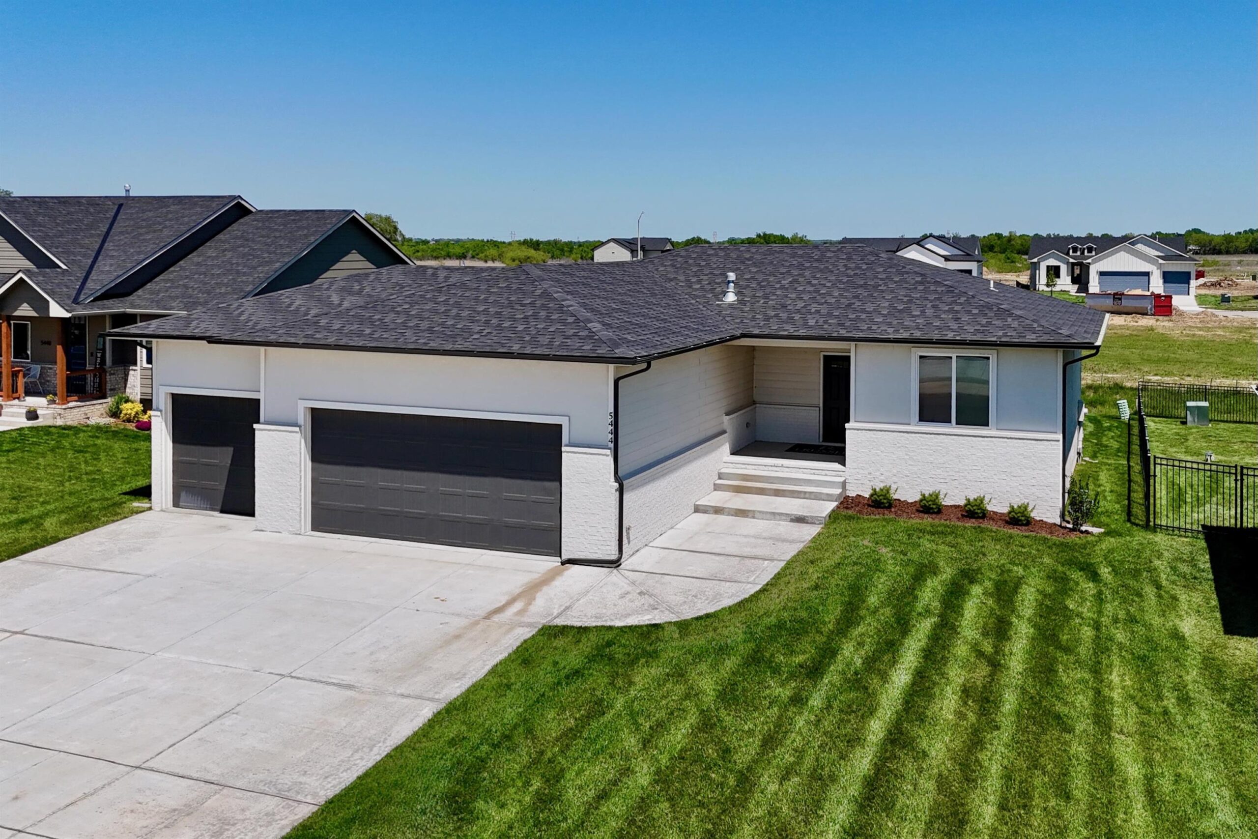 - Description: RJ Castle Custom Homes brings luxury and unparalleled value together with this brand new plan! The main floor features an open, livable layout, and large windows across the back of the home offering an abundance of natural light. The main floor features include a spacious living room with trey ceilings and electric fireplace, a well appointed kitchen with quartz countertops and walk-in pantry, a lavish owner’s suit with private bath equipped with a full tile shower and a walk-in closet, separate laundry room with direct access the the master closet, and an additional main floor bedroom accompanied by a hall bath. The fully finished lower level includes a generously sized family, walk-up wet bar with quartz counter tops, 2 additional bedrooms, a full bath, and plenty of room for storage! Come see this incredible, newly available, model home and start building new memories in beautiful Watermarke, today. Some information may be estimated, and is not guaranteed, please verify schools with USD262.