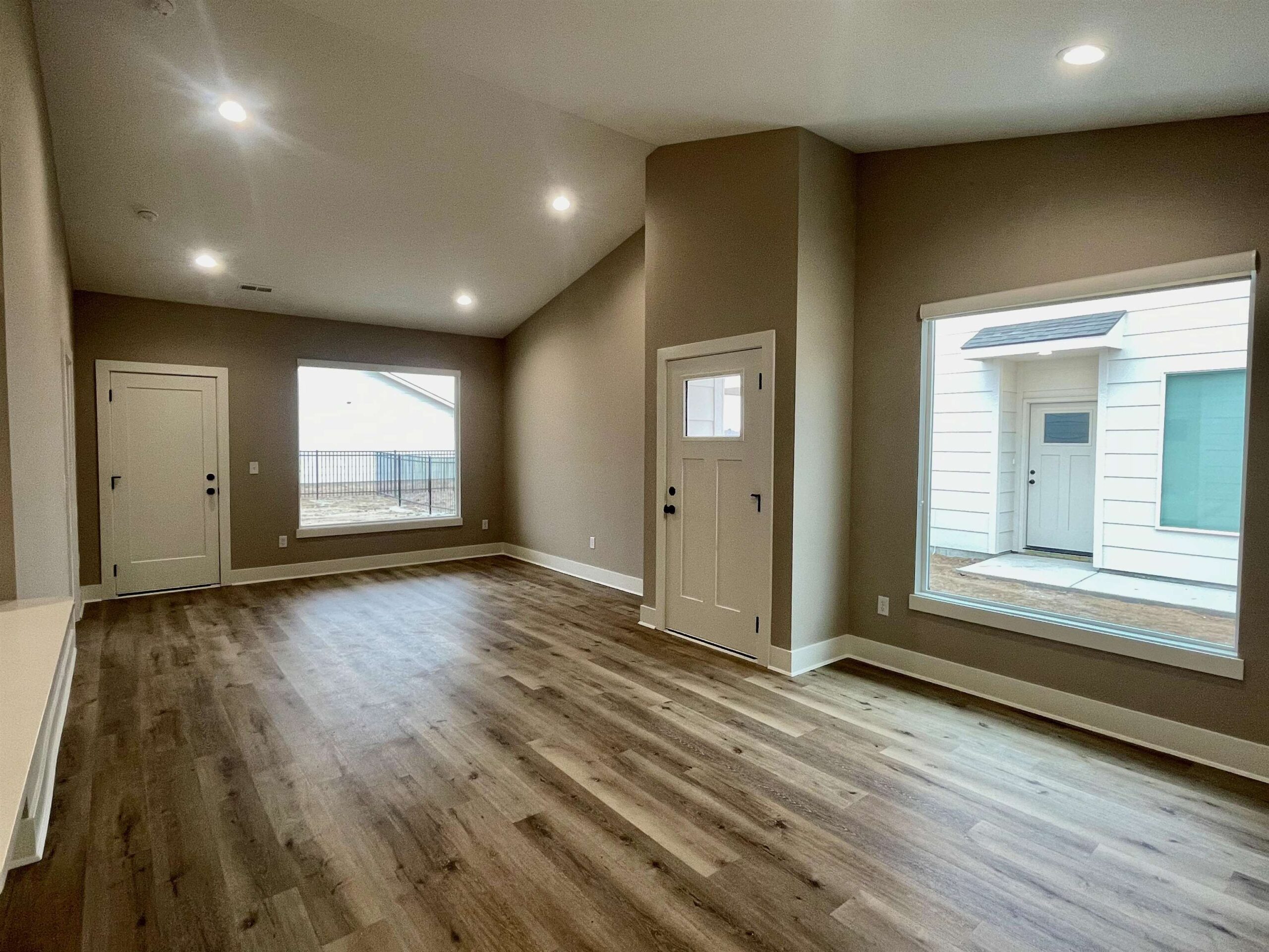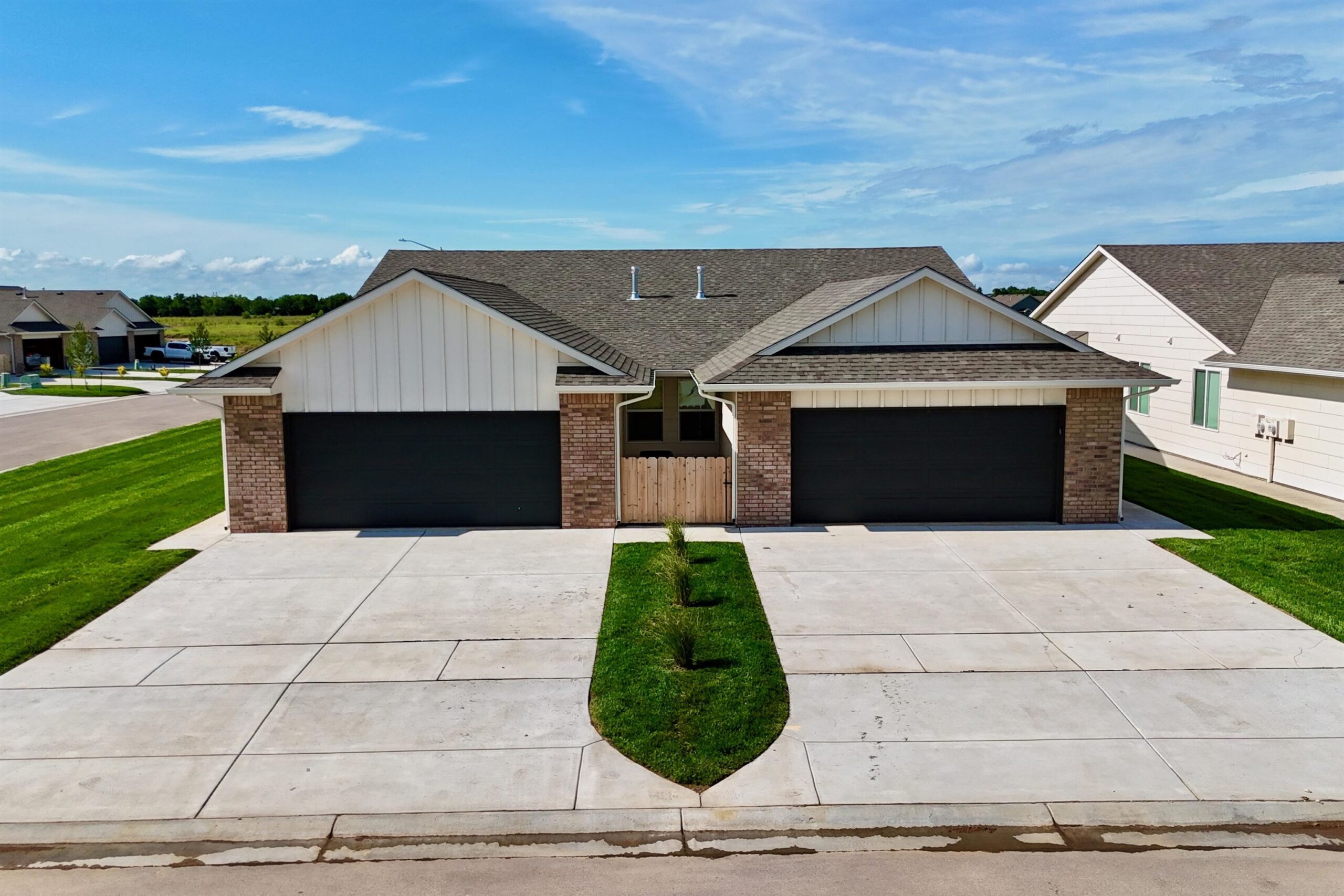 - Description: This newly built, executive twin home located in the Valley Center School District is conveniently located near shopping, dining, entertainment opportunities and is move in ready and available now! Featuring 2 zero-entry units each equipped with 4 bedrooms, 2 bathrooms, 2 car garage with opener, vaulted ceilings, and a walk-in closet. Each side features luxury vinyl flooring throughout, quarts countertops in the kitchen and baths, and access to a covered patio. Both yards are landscaped to include sod, sprinkler systems, and wrought iron fencing. All lawn maintenance and mowing is managed by the HOA. Community features include neighborhood ponds and playground. Some information may be estimated and is not guaranteed. Please verify schools with USD 262.