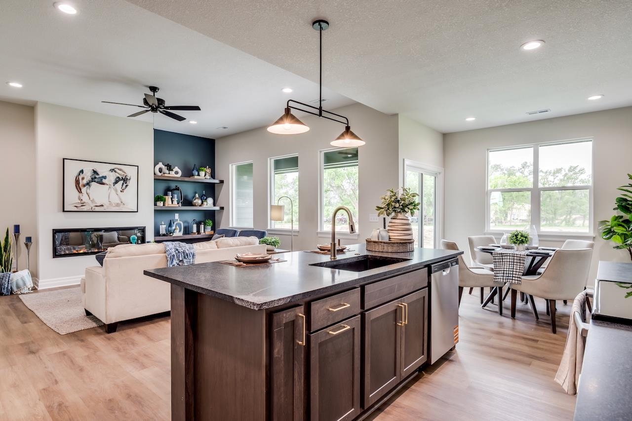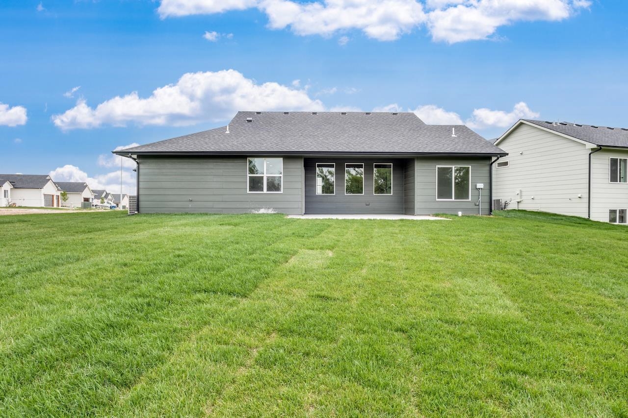 - Description: Introducing the Brax Plan by T.W. Custom Homes – Effortless Living with Timeless Style. Experience the perfect blend of thoughtful design and modern comfort in the all-new zero-step Brax Plan. With its stunning front elevation and classic architectural details, this home makes a striking first impression. Step inside to a welcoming foyer that opens to a spacious living room featuring beamed ceilings, expansive picture windows, and a sleek electric fireplace flanked by built-in shelving—an ideal space for relaxing or entertaining. The chef’s kitchen is both functional and stylish, complete with a large island, granite countertops, ample cabinetry, and a walk-in pantry. The open dining area flows seamlessly to the covered back patio, extending your living space outdoors. Retreat to the luxurious Master Suite with a spa-like private bath, showcasing a dual quartz vanity, low-curb tile shower, and a generous walk-in closet. Convenience meets design in the smart layout featuring a drop zone just inside the garage entry, leading directly to a well-appointed laundry room with a built-in folding table, hanging rod, and cabinets. A concrete storm shelter, discreetly tucked behind the mechanical room, adds peace of mind without sacrificing space or style. Two additional large bedrooms and a full hall bath complete this intelligently designed home—all on a zero-step layout that brings ease and accessibility to everyday living. Live comfortably and stylishly with today’s most sought-after features and finishes in the beautifully crafted Brax Plan. Some information may be estimated and is not guranteed. Please verify schools with USD 262.