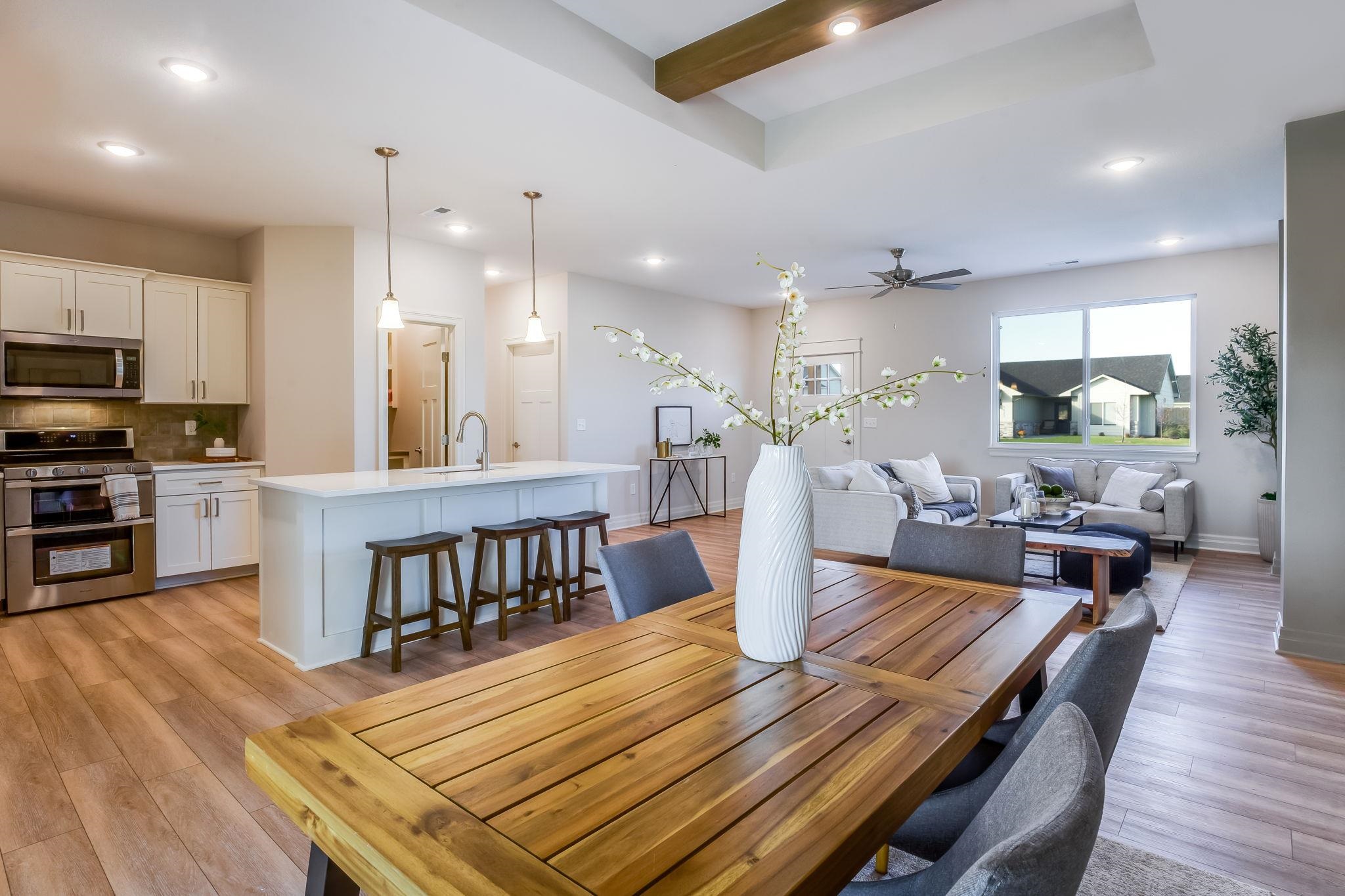 - Description: Just Listed – The Willow Plan by RJ Castle Custom Homes. Welcome to effortless living in this stunning zero-entry home on a desirable corner lot in Watermarke! Blending timeless traditional architecture with modern comforts, this home greets you with charming cedar front porch posts and inviting curb appeal. Step inside to a spacious living room with an elegant electric fireplace, perfect for relaxing or entertaining. The gourmet kitchen will impress with quartz countertops, a gas range, walk-in pantry, and abundant cabinetry. The adjoining dining area features a beamed tray ceiling and walk-out doors leading to the expansive 15’ x 17’ covered patio—ideal for indoor-outdoor living. The luxurious master suite offers a large bedroom with beamed tray ceiling, a spa-like bath with dual vanities and tile shower, plus an oversized walk-in closet with built-in storage. Two additional bedrooms each boast their own walk-in closets and are accompanied by a full hall bath with quartz countertops. Everyday functionality shines with a large, separate laundry room conveniently located near all bedrooms. The massive tandem 2-car garage offers versatile space with a second walk-out door—perfect for a workshop, home gym, gardening station, or extra storage. Available now in Watermarke! Some information may be estimated and is not guaranteed. Please verify schools with USD 262.